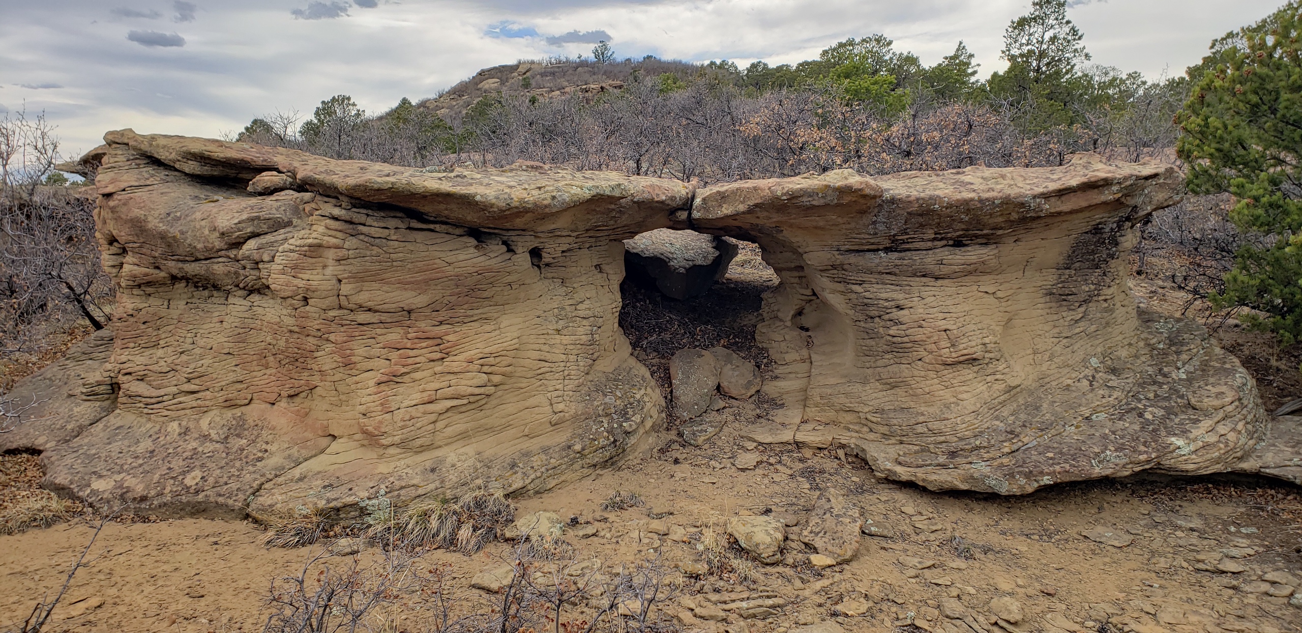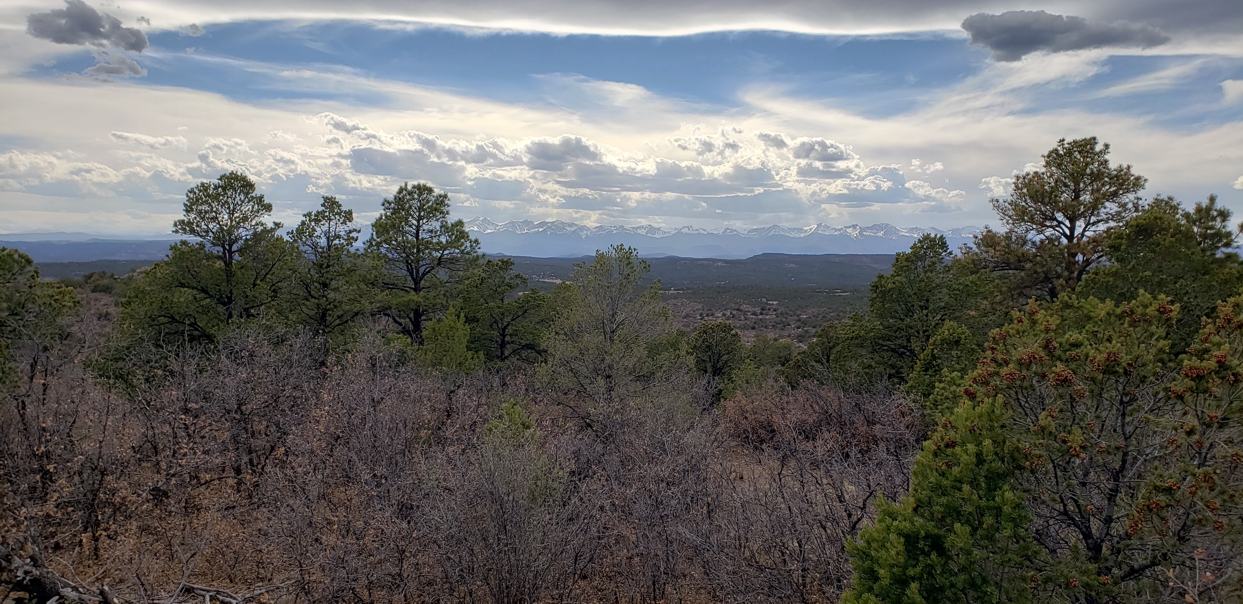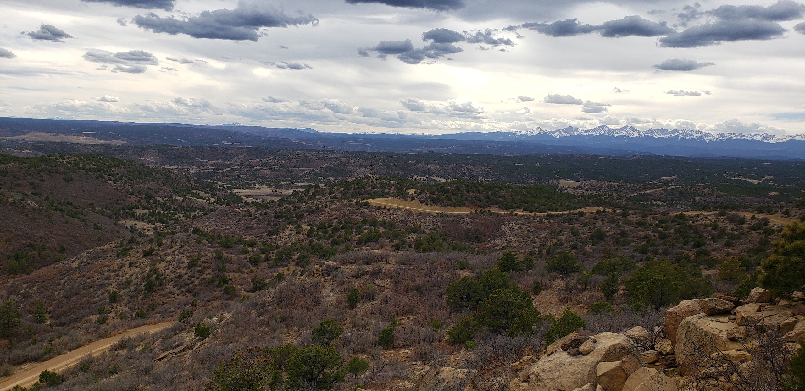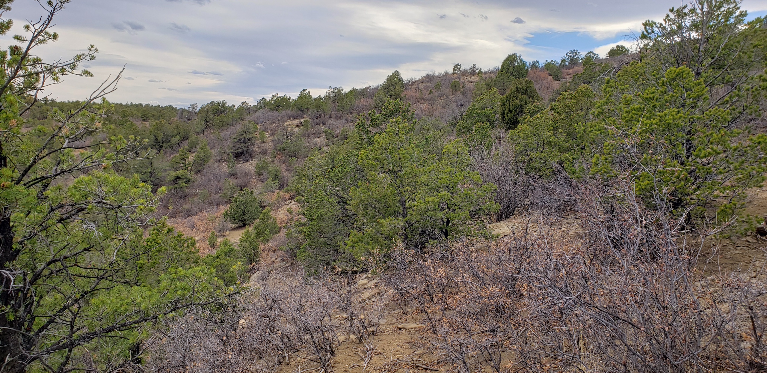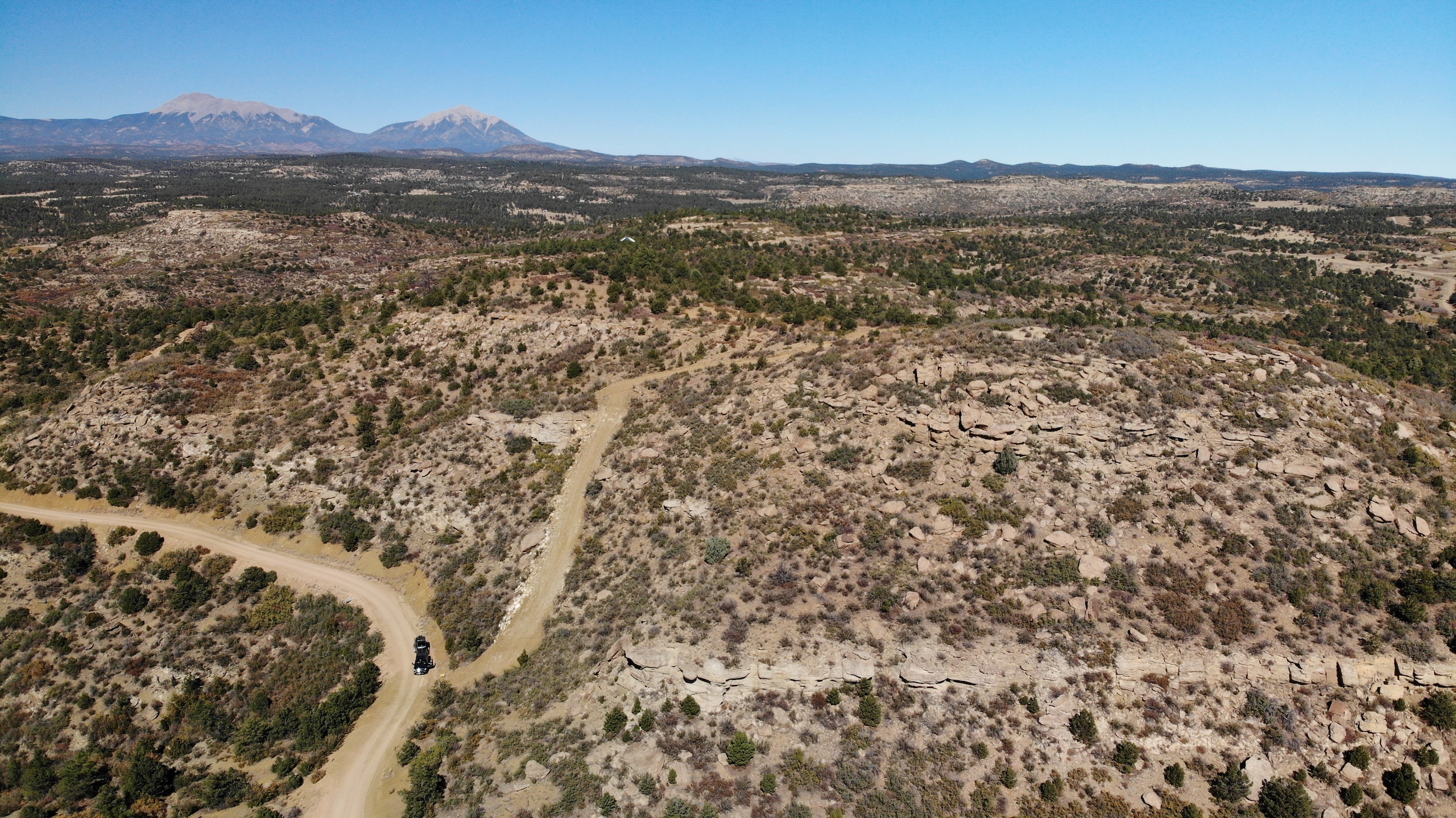 - Mountainous terrain with large rock outcroppings, pinon, juniper, and oak brush
