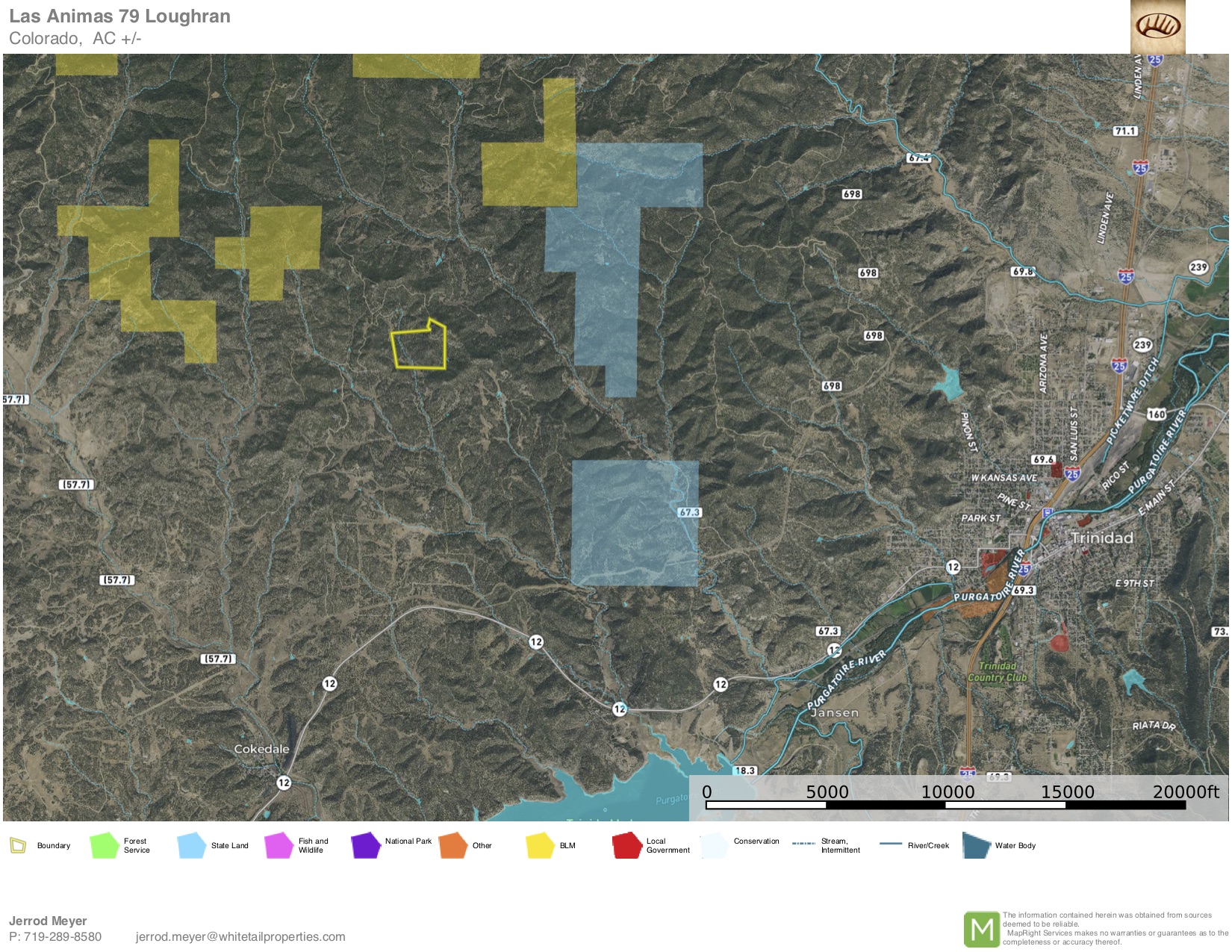 Excellent secluded lot in Picketwire Ranch with expansive views! Direct road access to a fantastic elevated building site with views of Fisher’s Peak, Lake Trinidad, the Sangre De Cristos, and more. Heavily wooded with sloping terrain, you’ll no doubt find deer, elk, turkey, and plenty of other wildlife traversing the property throughout the year. With no covenants, restrictions, or HOA you can utilize the property to your liking. Build your getaway cabin, forever home, or RV Site for weekend enjoyment. No through traffic, as the road ends just past the property edge! Average well depths in the area at this elevation are as low as 320 feet. Solar power is a great option with the southern-facing layout of the property allowing tons of sunshine throughout the year. Don’t let this great property getaway! Contact your local Whitetail Properties Land Specialist for more information!