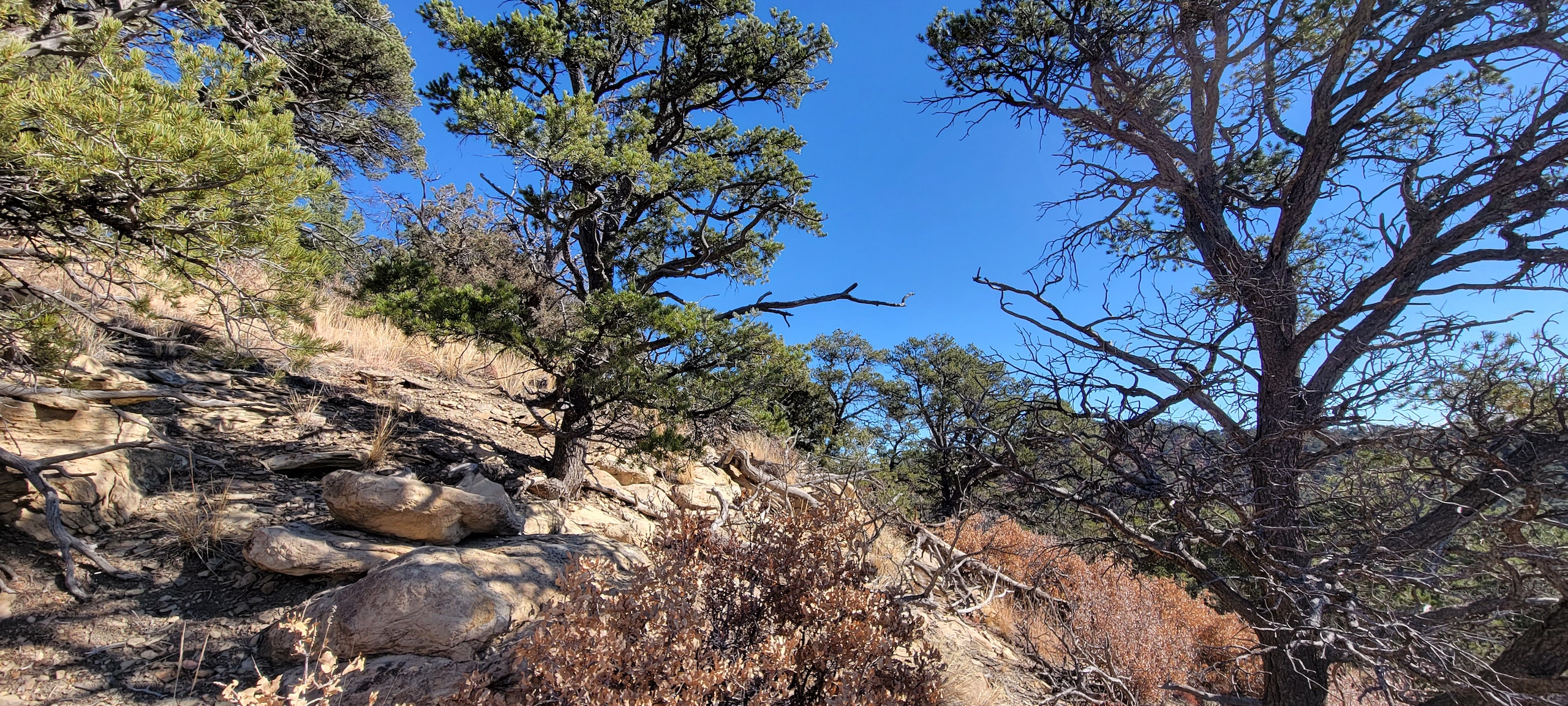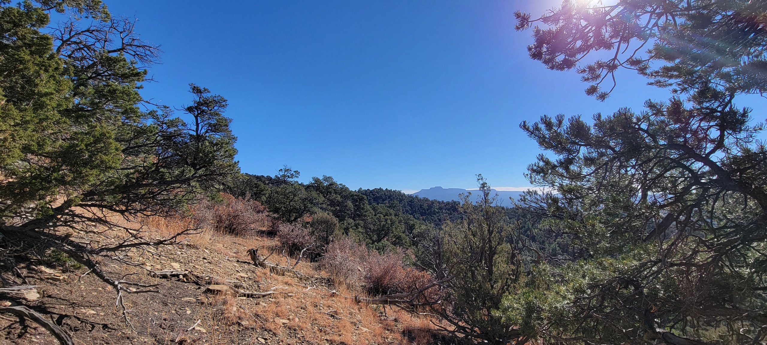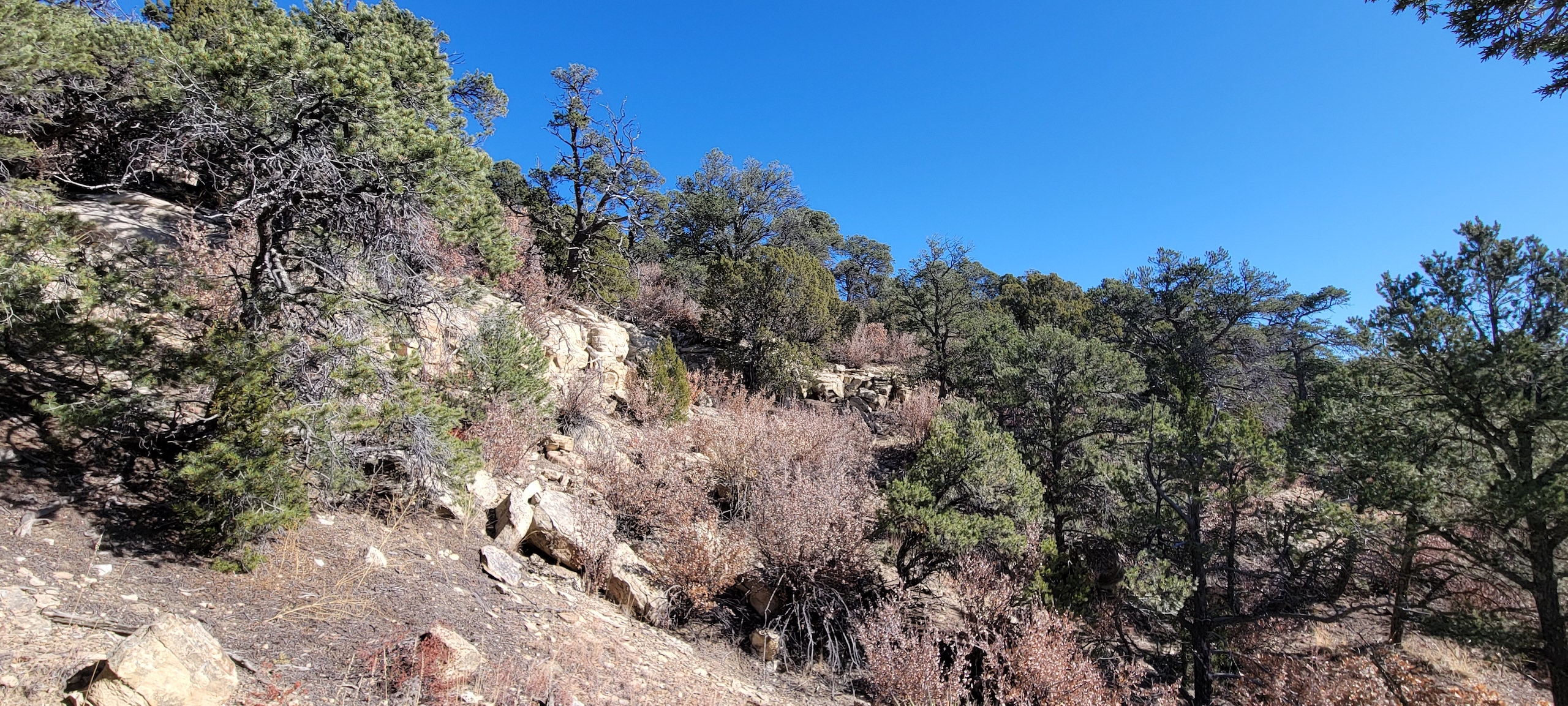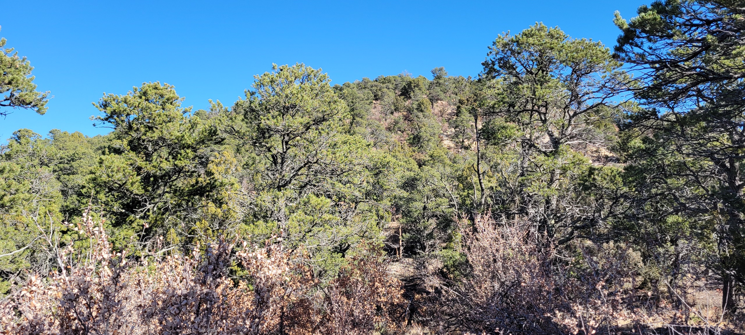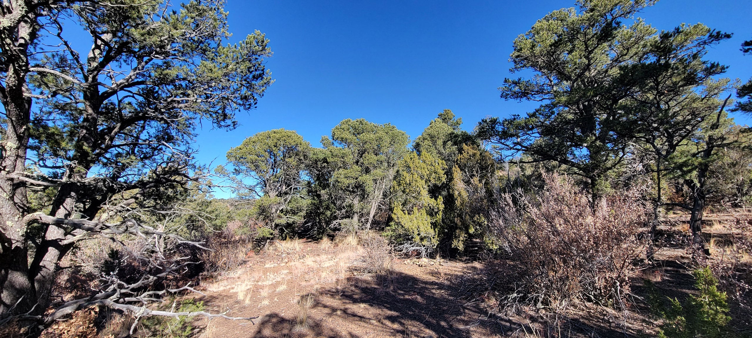- Heavily treed with pinon, juniper, and ponderosa pines