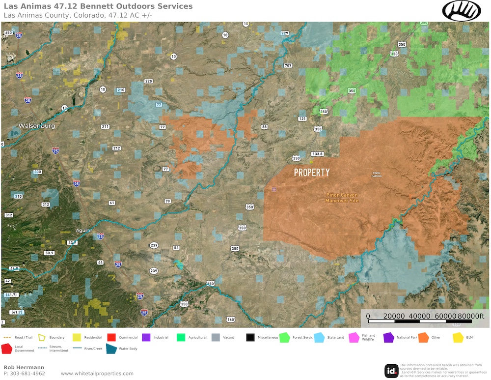 Large, remote, off-grid 47.12-acre lot in secluded Las Animas Ranch. This sprawling acreage offers fantastic options for building, camping, recreation, hunting, and more. Backing up to Piñon Canyon, this ensures additional privacy and seclusion with less potential for future development. Close to Comanche National Grasslands for great hunting and recreational access. No covenants or restrictions ensure flexibility in your use of the property. Owner financing is available.