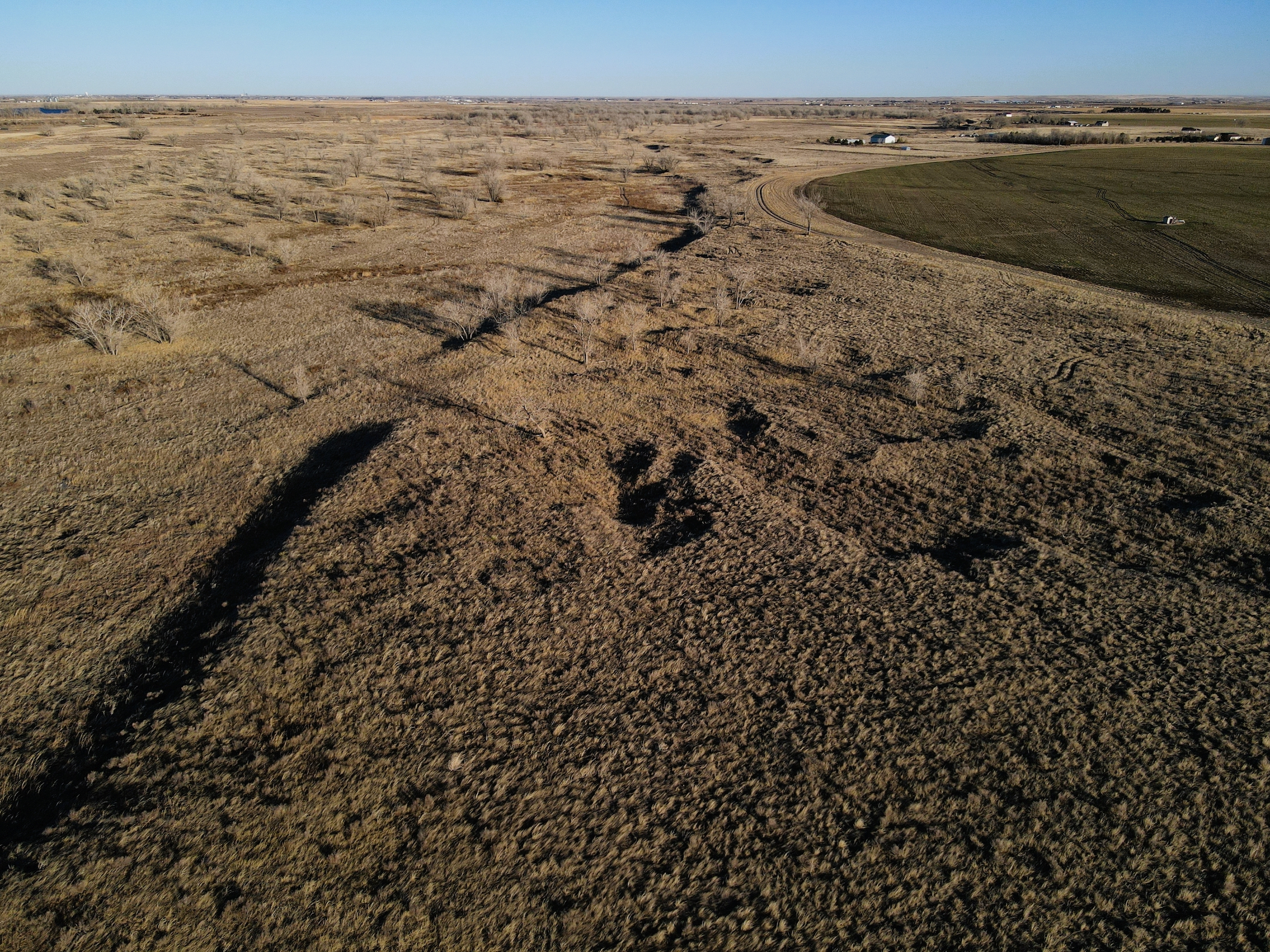 Bijou Creek is known for its excellent hunting opportunities and diverse wildlife. There is also a possible building site overlooking the creek with amazing views. County Road 8 along the East side of the property provides good access and is only a short distance from Wiggins, CO. Several mature trees are scattered throughout the landscape, providing great habitat. Bordering the property are multiple irrigated and dryland crop fields providing a good food source for wildlife. While taking listing pictures, hundreds of waterfowl were flying up around from field to field. This is a property you don’t want to miss out on. Give the local Land Specialist a call today for more information or to schedule a private showing.