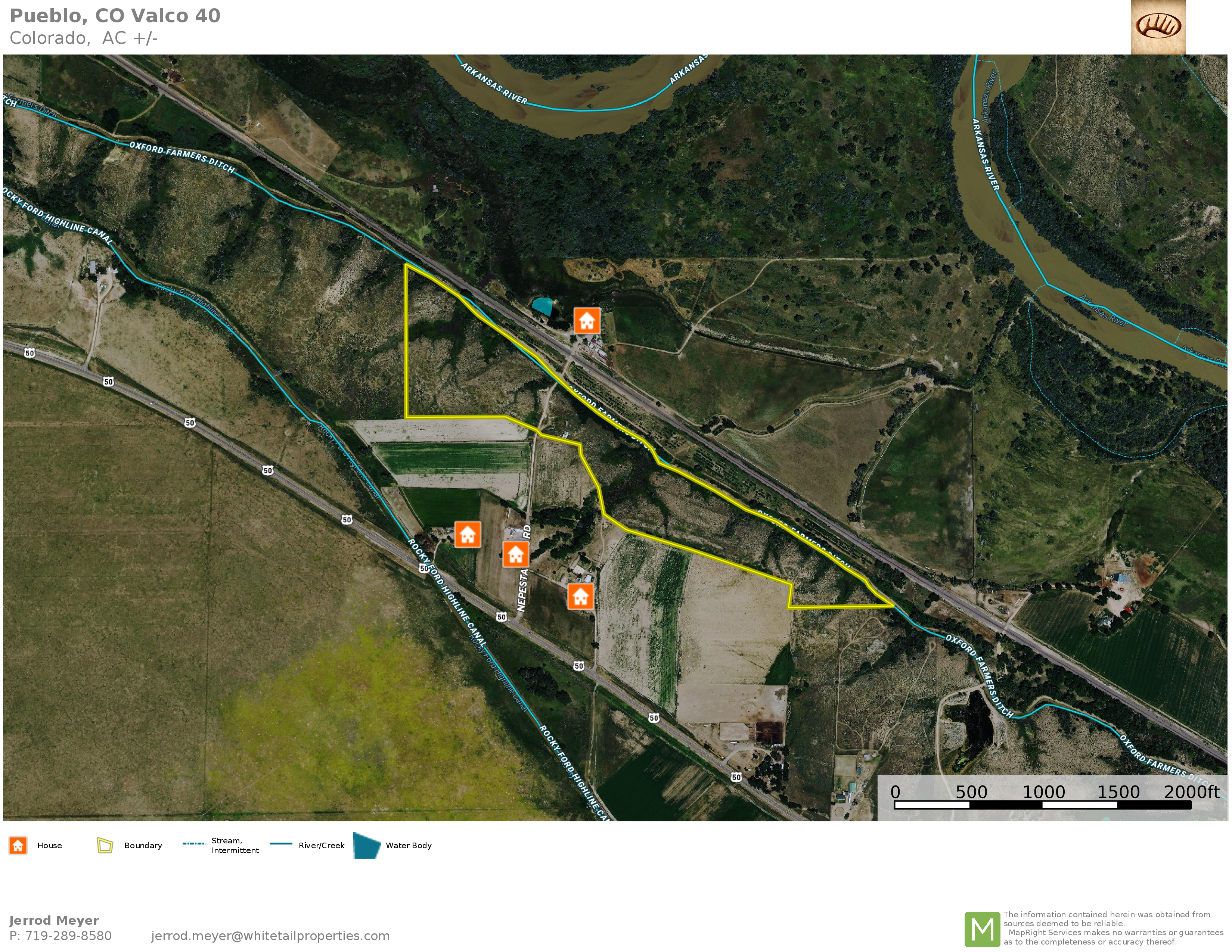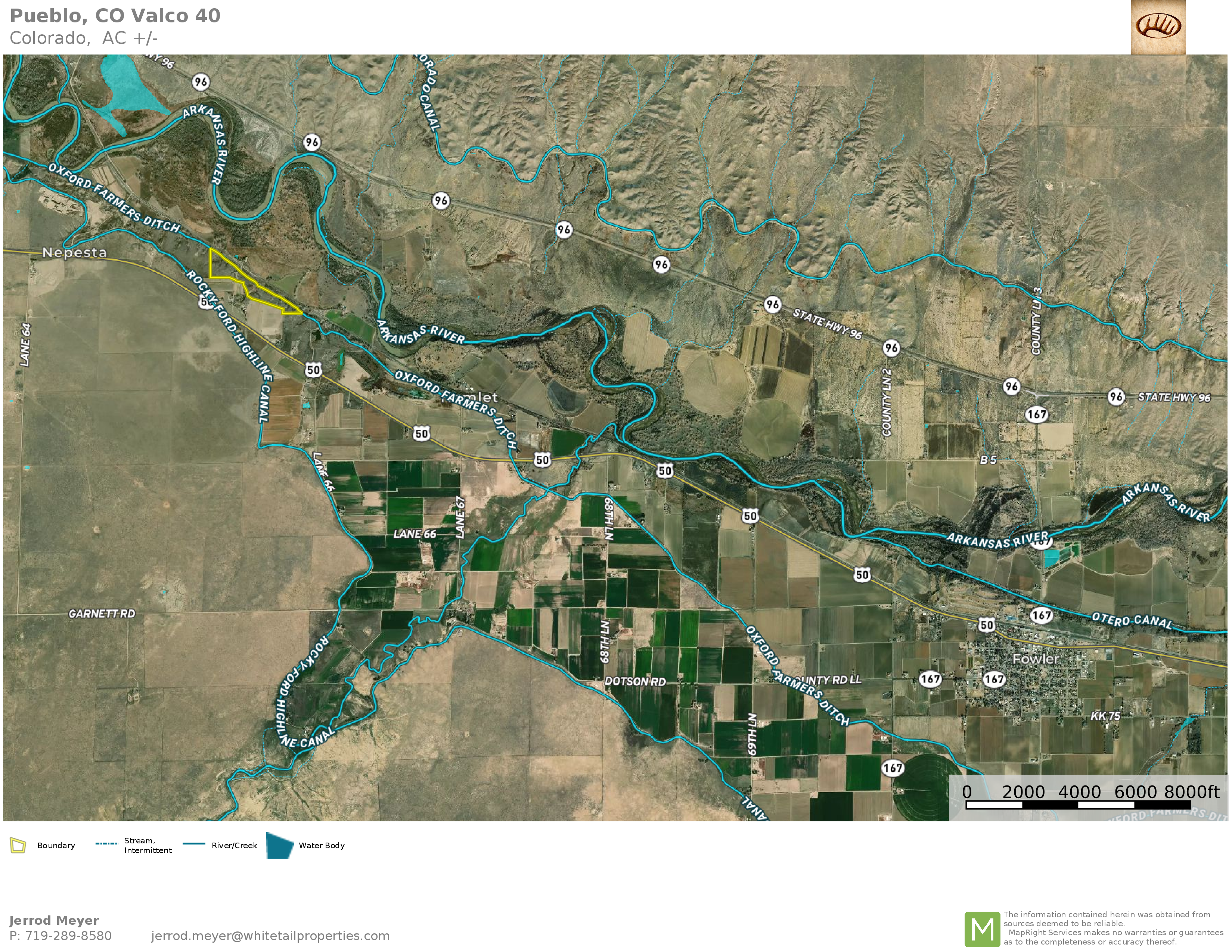 Great opportunity between Pueblo and Fowler just off of Highway 50. Direct road access through the center of the property with power available running through the property. Rolling terrain bordering the Oxford Farmers Irrigation Ditch to the north with a few low-lying marsh areas. Multiple areas of the property offer great building sites with views of the Arkansas River Bottom. The southern boundary of the property is mainly bordering irrigated tillable cropland. Mostly fenced with mature cottonwoods, locusts, and other trees, cover focused along the northern edge along the irrigation ditch. It is priced to sell! Contact your local Whitetail Properties Land Specialist for more information!