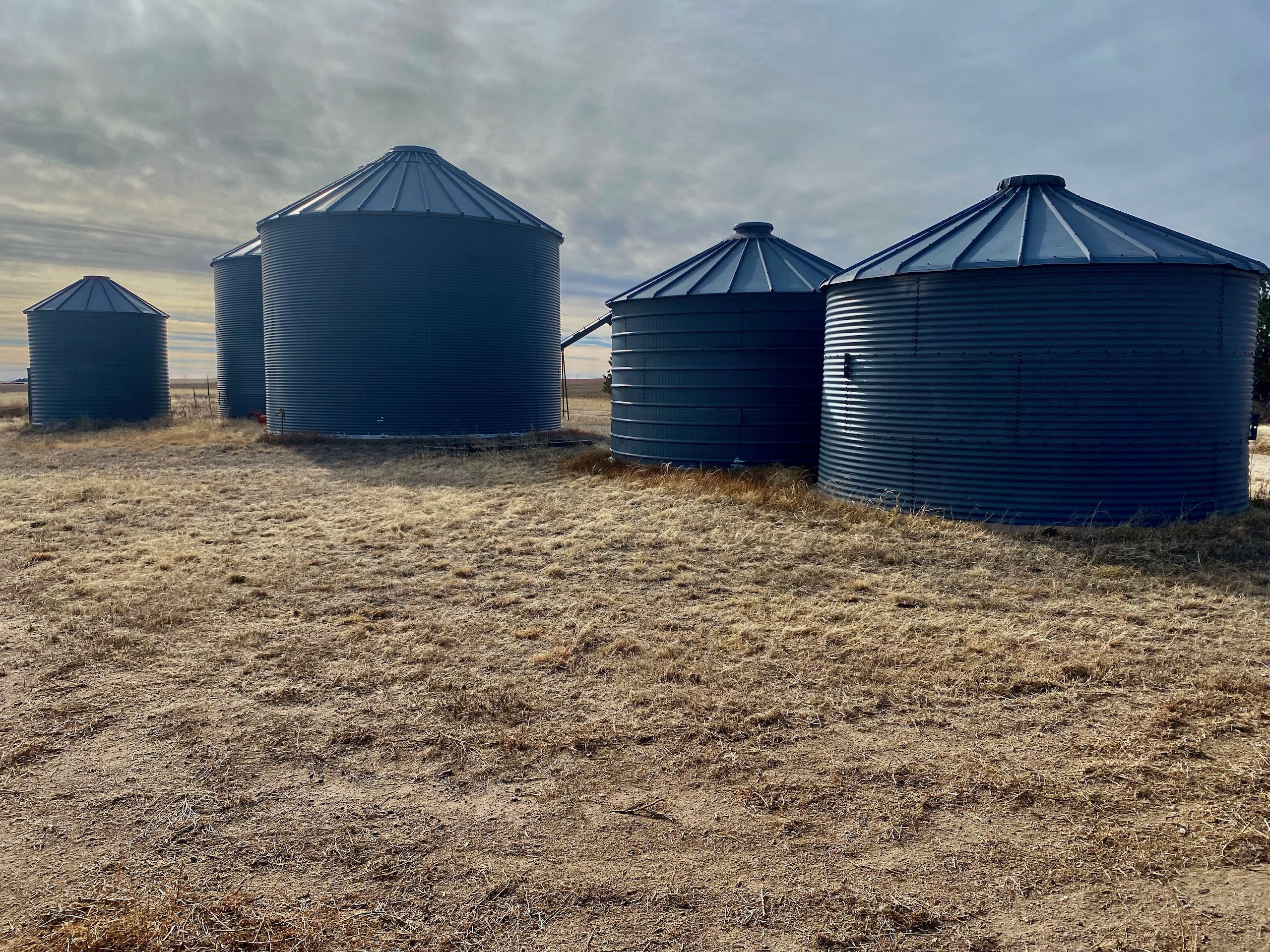 - Several grain storage silos