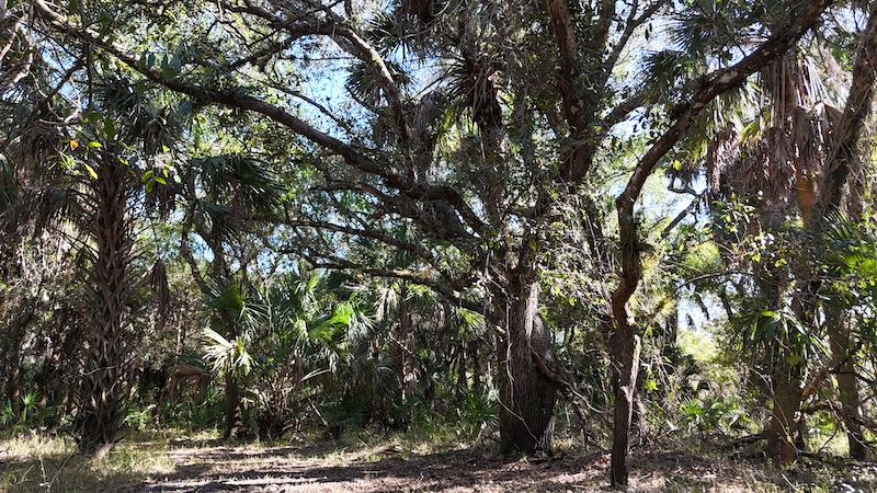- Mature oak, cabbage palm, and pine coverage
