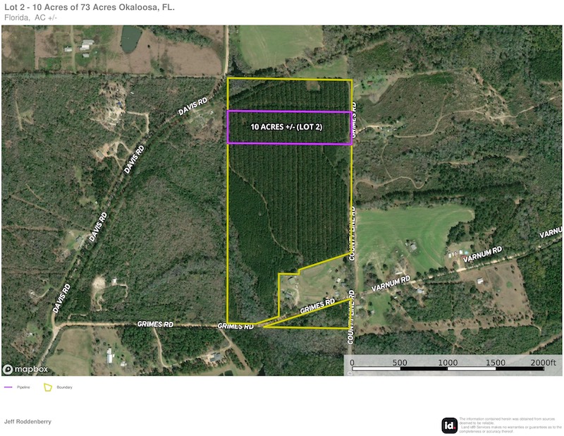 Another great tract of rural land in which to build a new home, recreate, or perhaps establish a small business income is now available in north Okaloosa County. Lot #2 of the Grimes Rd. tracts showcases a lengthy 10-acre property set within a stand of beautiful mature pine timber. A portion of the land comprises approximately 2 acres that have been selectively cleared and lie on the eastern side of the property. Here you will find road frontage, accessible power, and the perfect location to build and greet the morning sun. The remaining eight acres of the tract are filled with mature pine timber whose undergrowth could also be cleared to support a consistent straw production business year after year. The wide, strategically planted, straight pine rows are perfect to maximize the harvest of a straw cash crop, of which the mature pine timber should certainly produce. And for those looking to hunt and recreate, the tract offers abundant wild game, including whitetail deer, turkey, and the occasional wild hog. Additional tracts may still be available; give us a call today, as they shouldn’t last long!