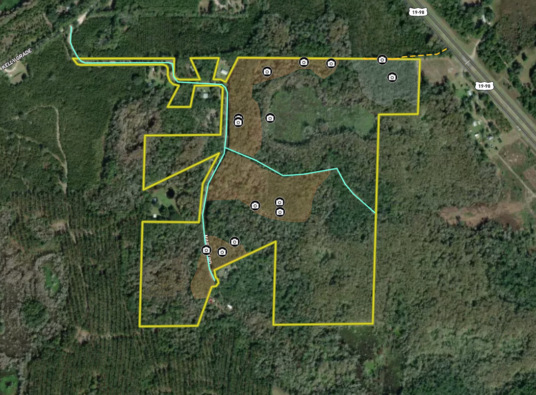 This secluded hunting and recreational property, located 8.5 miles south of Perry FL with a short drive off Highway 19, has just what a Florida hunter needs. Oak hammocks and natural-growth pine stands surround a large Cypress pond in the center of the property. The woods hold a good population of whitetail deer, wild turkeys, and resident wood ducks. (some hog sign on the property as well). Private maintained road systems throughout the tract keep access simple throughout all seasons. The northeast corner has oak stands, pines and some upland areas that would have residential potential.