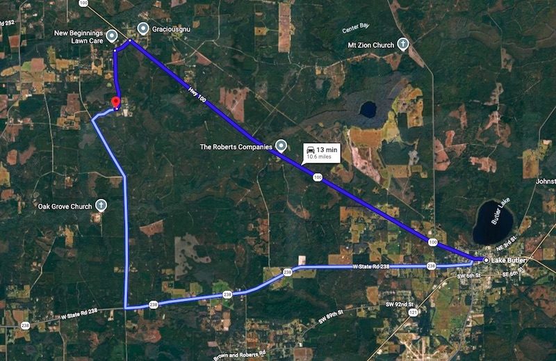 Located just minutes from the town of Lake Butler and approximately 12 miles from Lake City, the tract sits in a quiet rural residential area surrounded by larger timber holdings and agricultural land. This setting contributes to a landscape that supports wildlife movement and natural habitat while still allowing convenient access to nearby services, schools, and shopping.