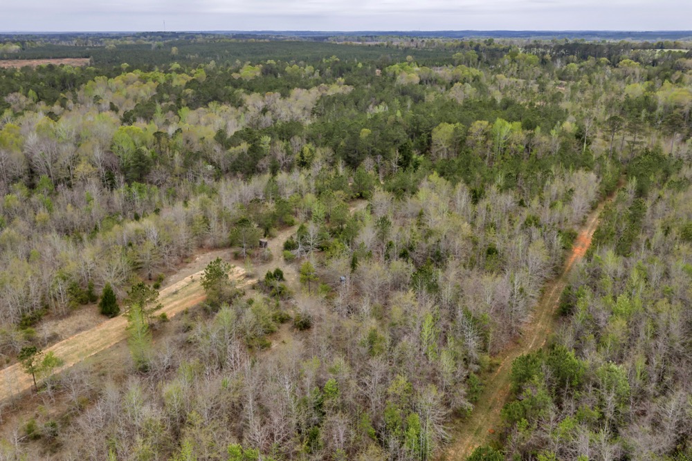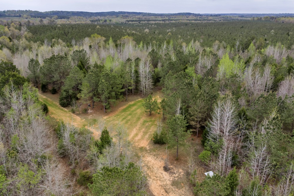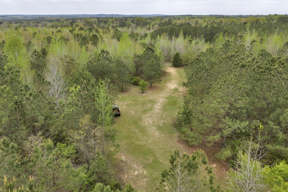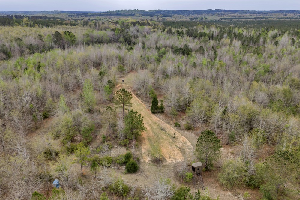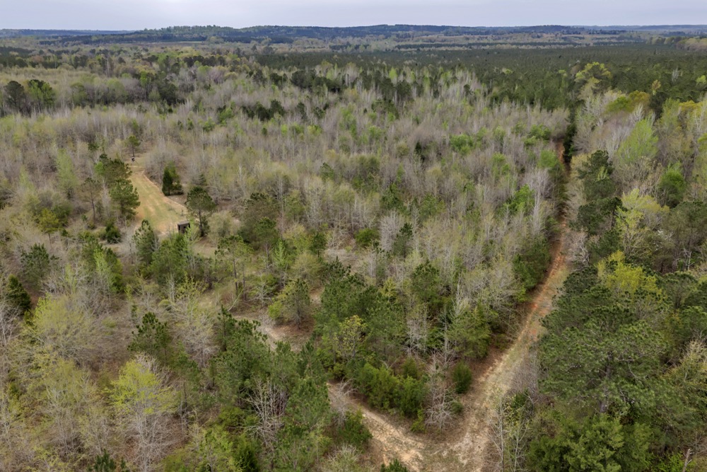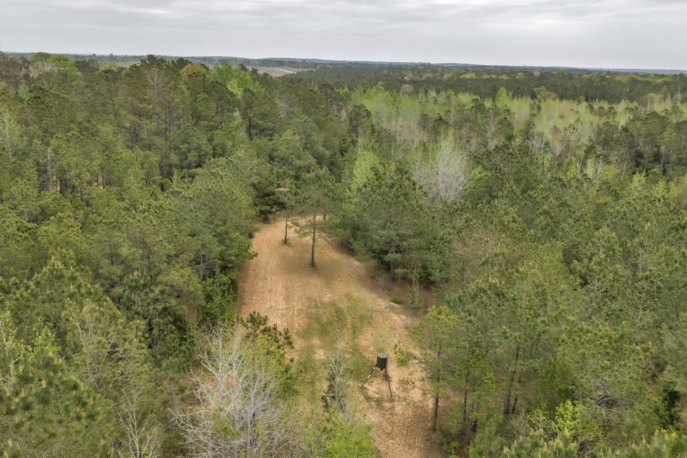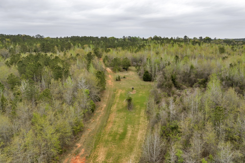 Several established food plots are already in place, providing open areas that can be maintained or modified according to management preferences. These plots are positioned to complement the surrounding cover, offering opportunities for wildlife observation and hunting. An internal road system runs throughout the tract, allowing access to different sections of the property. This road network can accommodate trucks, ATVs, and equipment, making it easier to manage the land and navigate between hunting locations.