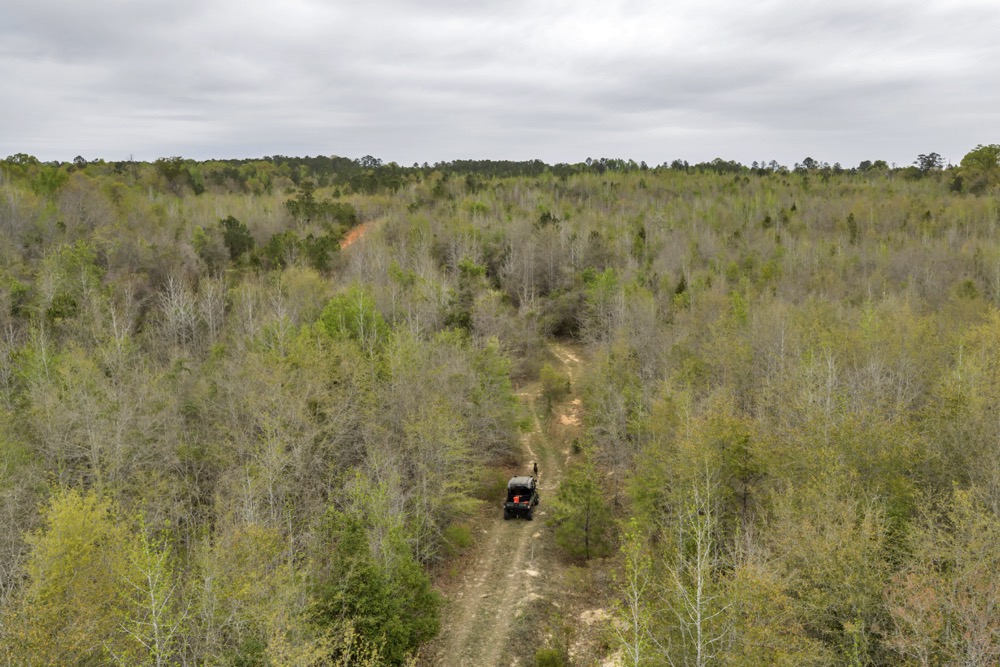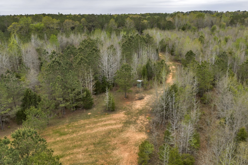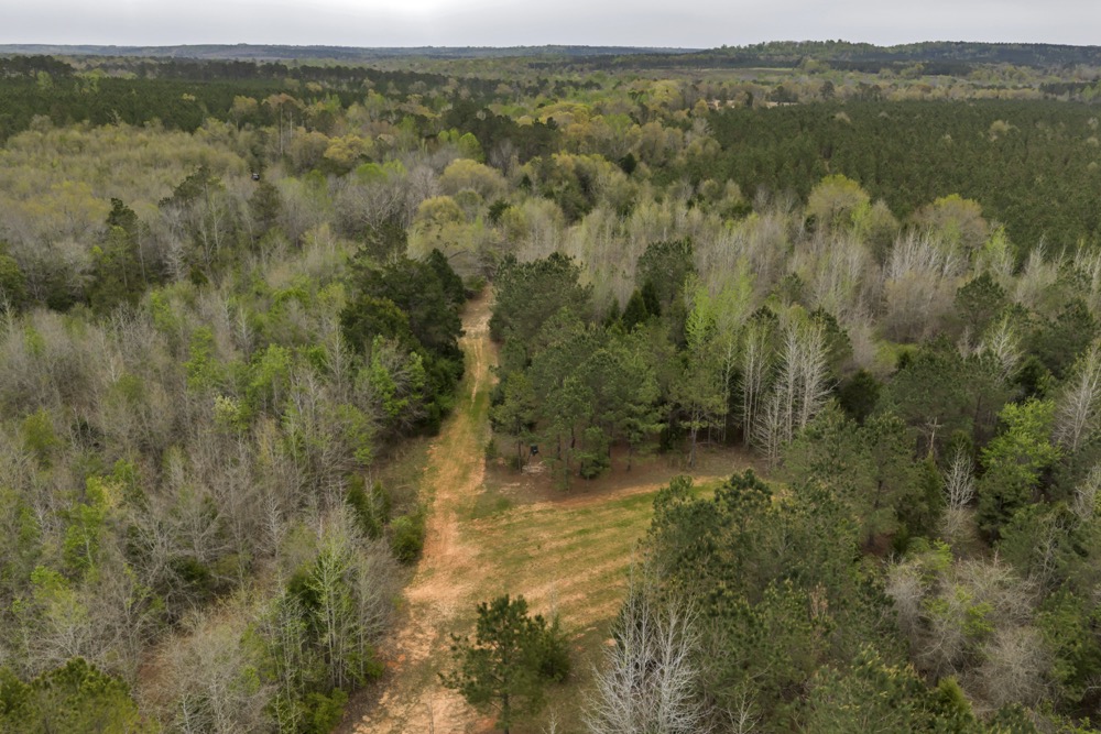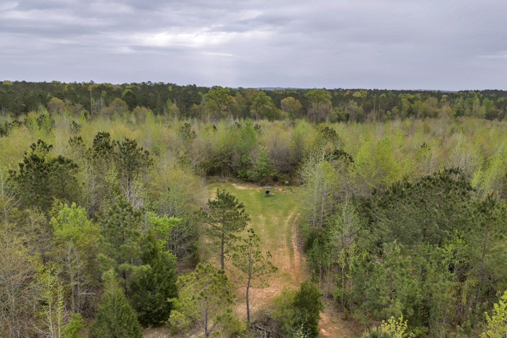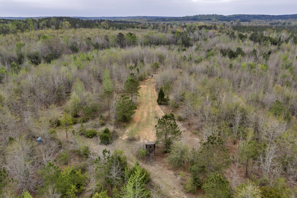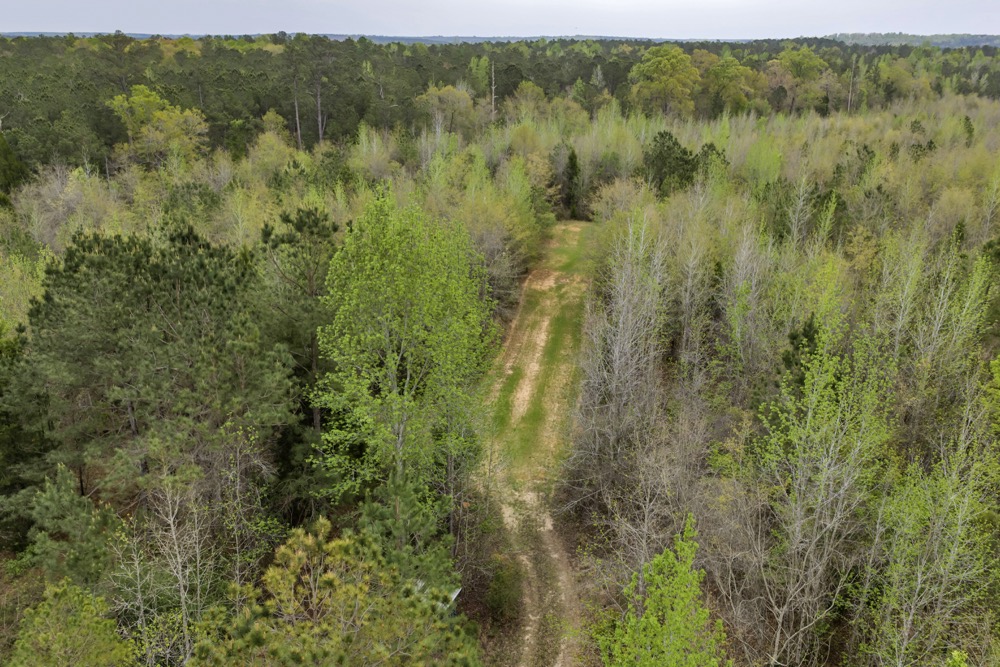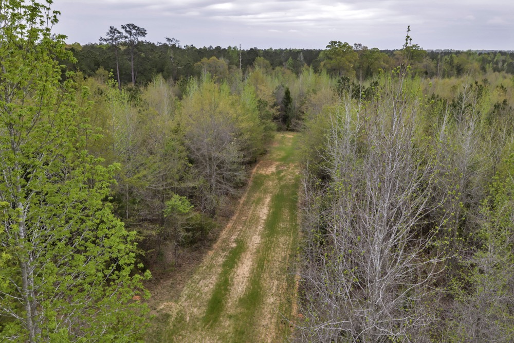 Several established food plots are already in place, providing open areas that can be maintained or modified according to management preferences. These plots are positioned to complement the surrounding cover, offering opportunities for wildlife observation and hunting. An internal road system runs throughout the tract, allowing access to different sections of the property. This road network can accommodate trucks, ATVs, and equipment, making it easier to manage the land and navigate between hunting locations.
