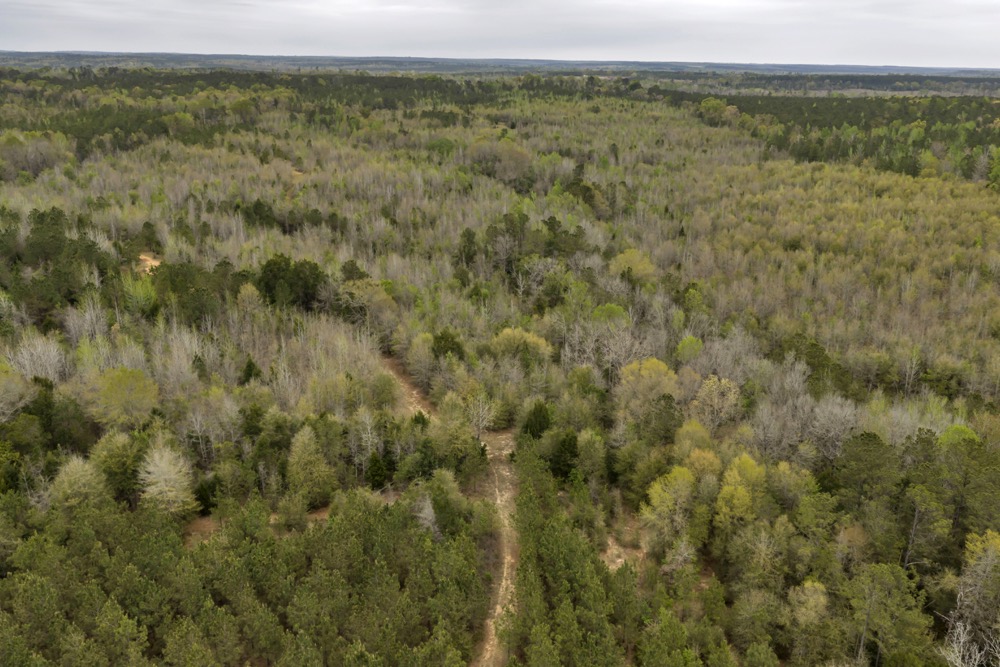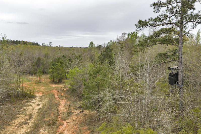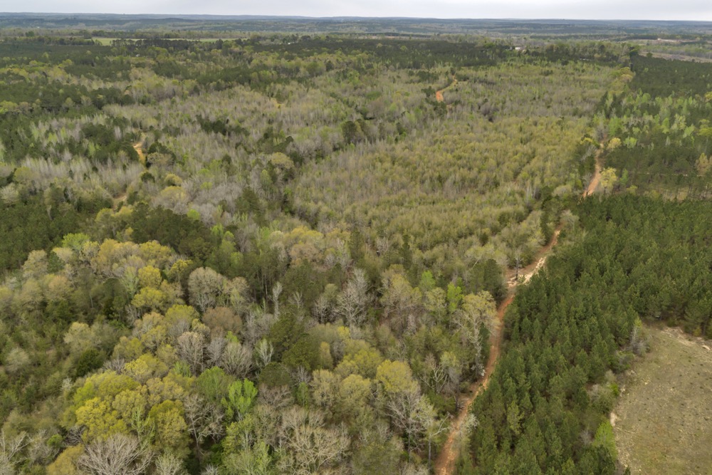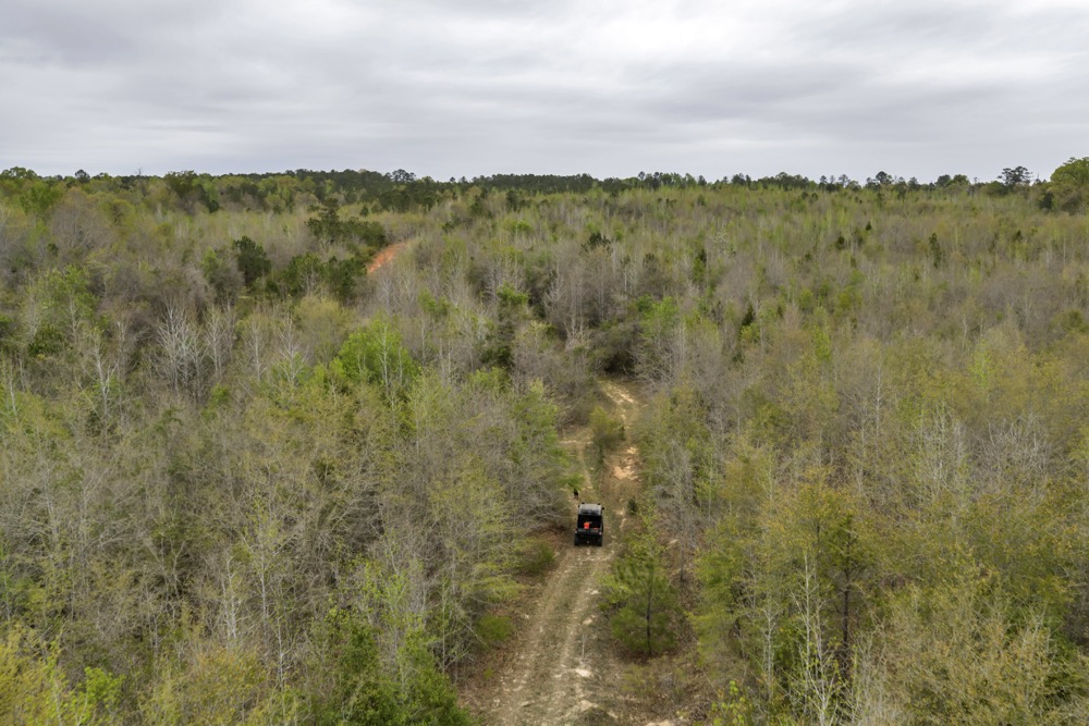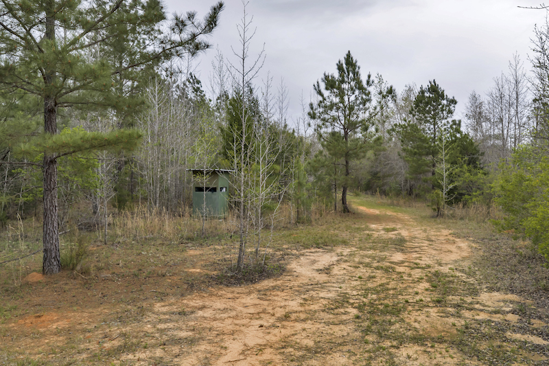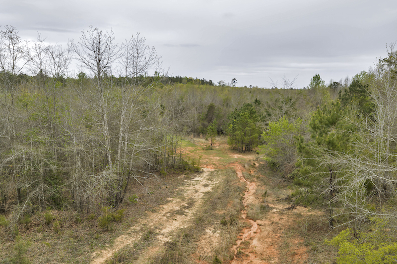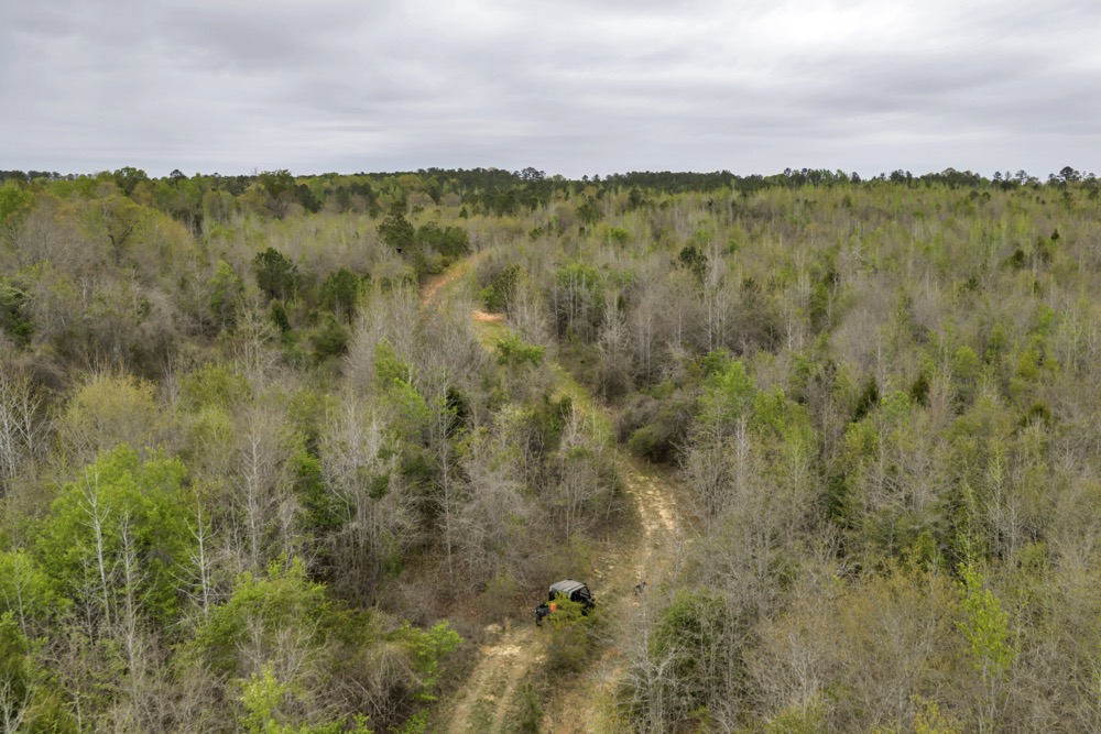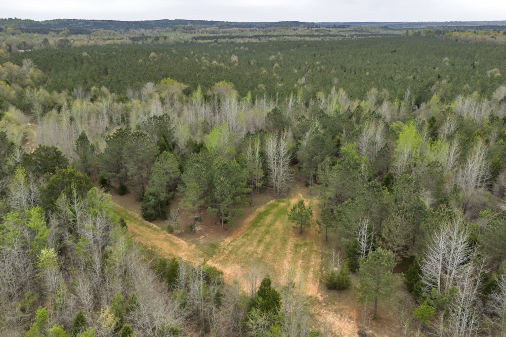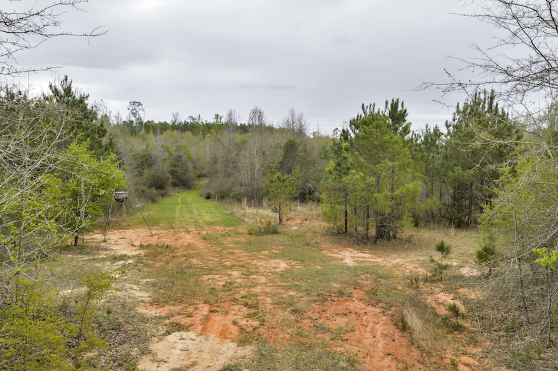 Several established food plots are already in place, providing open areas that can be maintained or modified according to management preferences. These plots are positioned to complement the surrounding cover, offering opportunities for wildlife observation and hunting. An internal road system runs throughout the tract, allowing access to different sections of the property. This road network can accommodate trucks, ATVs, and equipment, making it easier to manage the land and navigate between hunting locations.