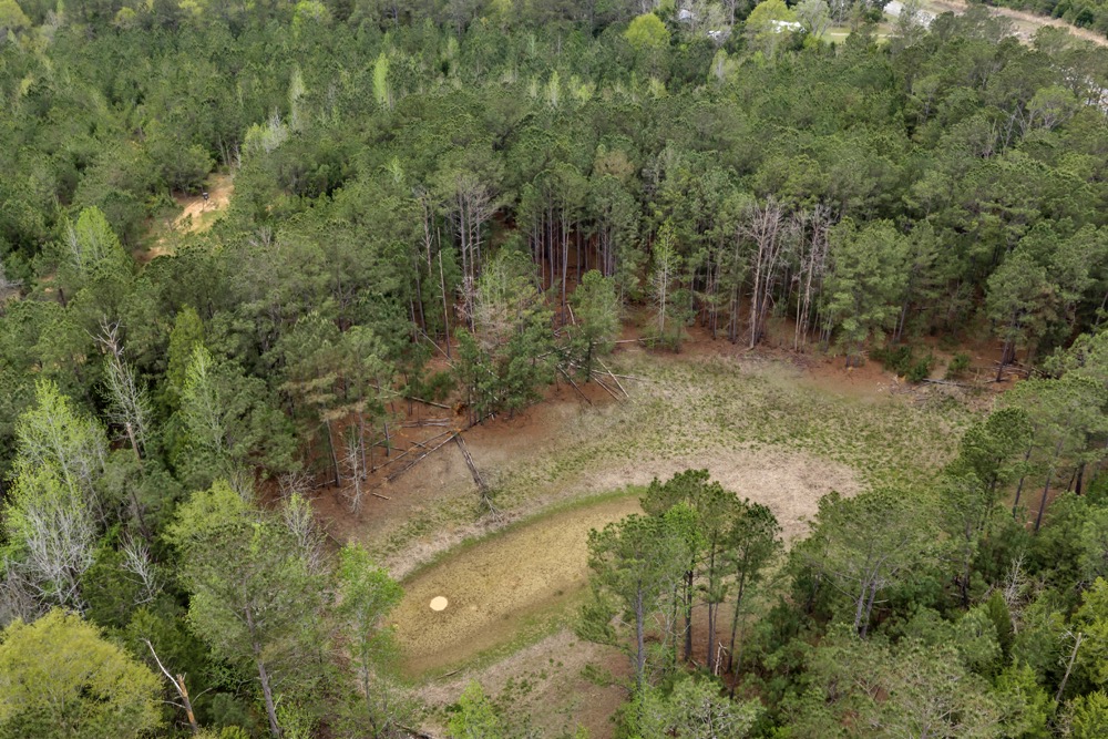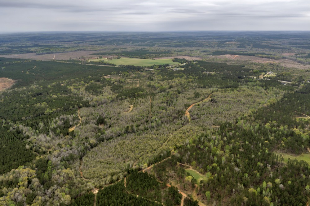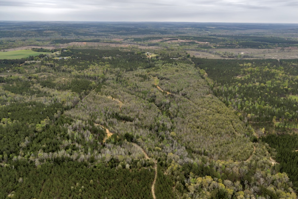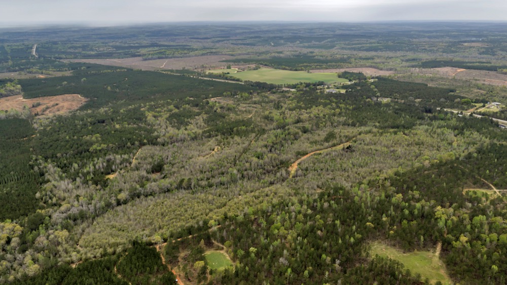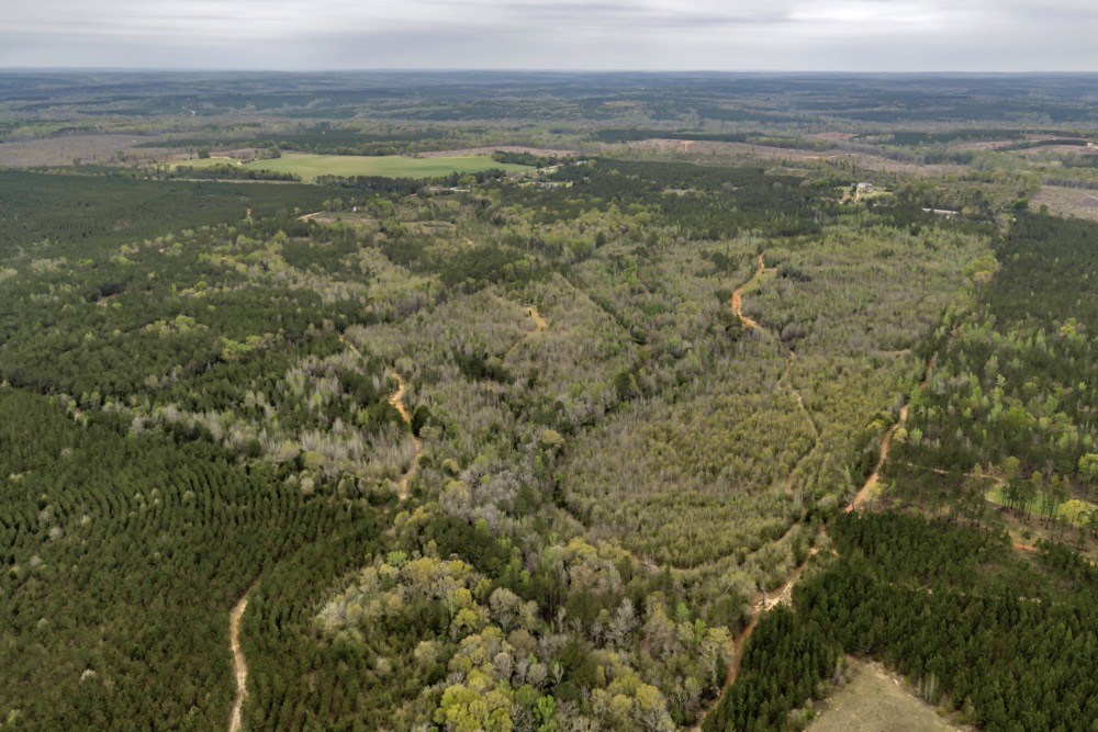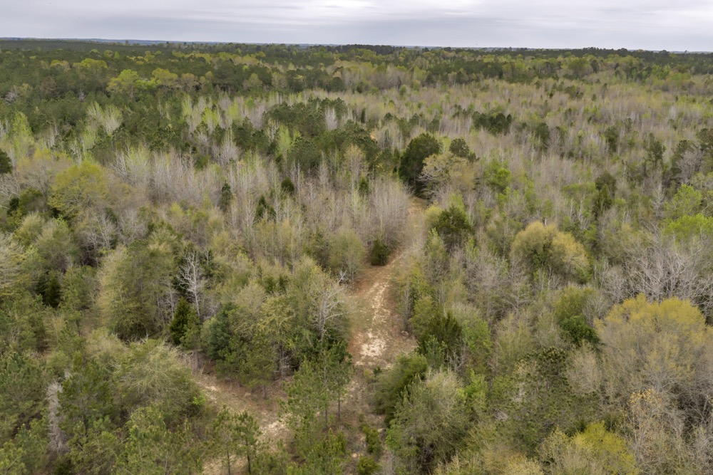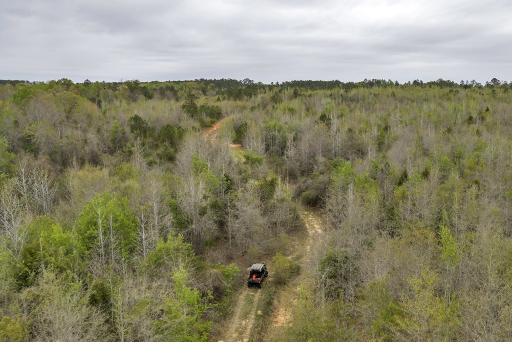 Several established food plots are already in place, providing open areas that can be maintained or modified according to management preferences. These plots are positioned to complement the surrounding cover, offering opportunities for wildlife observation and hunting. An internal road system runs throughout the tract, allowing access to different sections of the property. This road network can accommodate trucks, ATVs, and equipment, making it easier to manage the land and navigate between hunting locations.