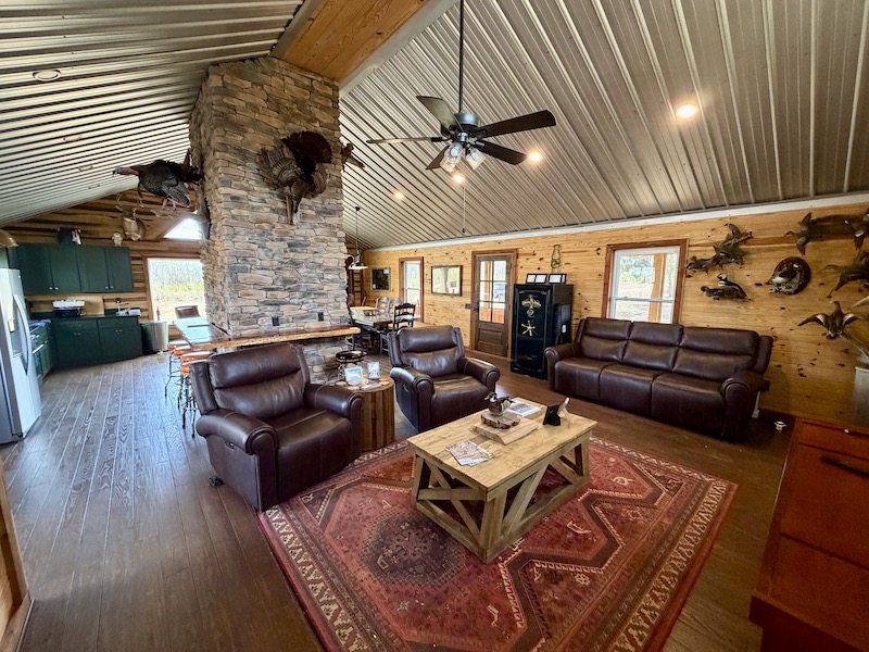 A custom cabin designed for both comfort and functionality adds to the turnkey nature of the land. The cabin features a large back porch and a fully equipped outdoor kitchen, making it an ideal gathering place for family and friends after a day in the field. Numerous established food plots are strategically positioned throughout the property and are already equipped with box blinds, allowing for a truly turnkey hunting experience. The property supports excellent populations of deer, duck, and turkey, making it a rare opportunity for the serious sportsman seeking a private retreat with proven habitat, quality improvements, and long-term investment value.