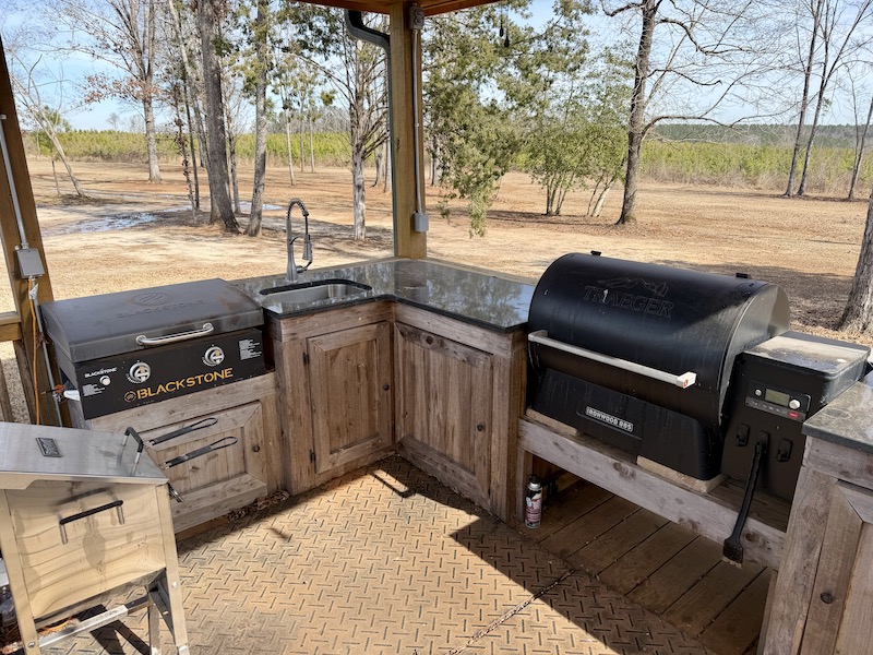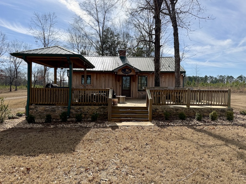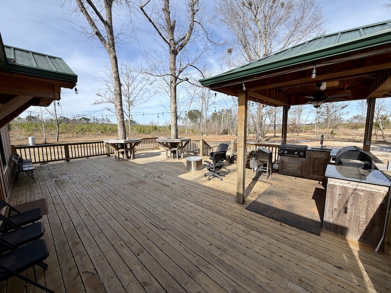 - Custom cabin with large porch and outdoor kitchen