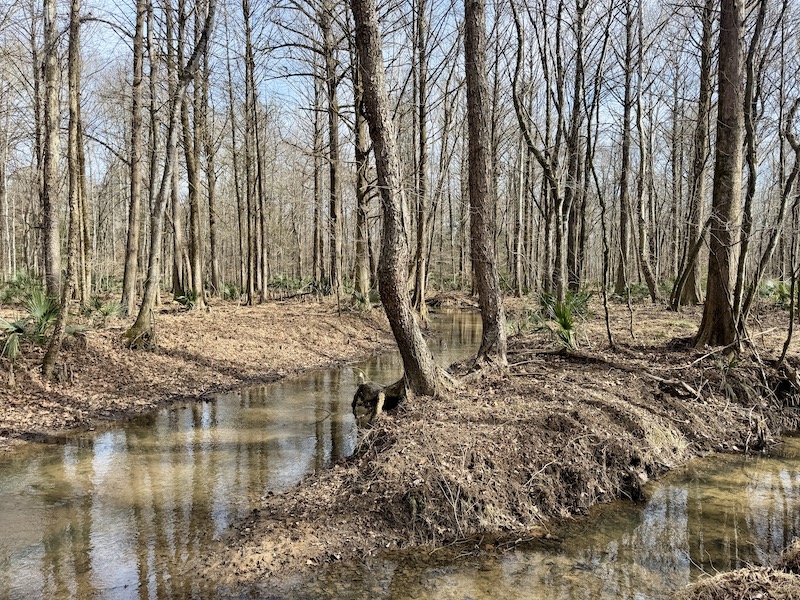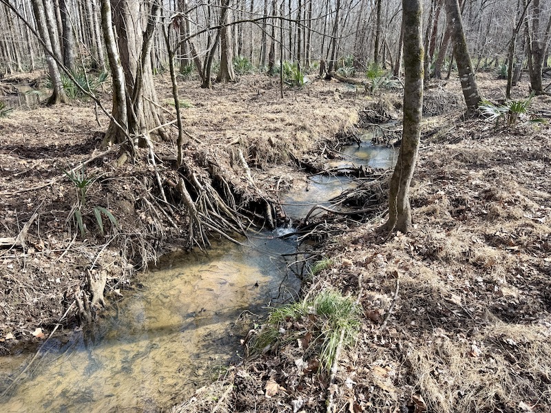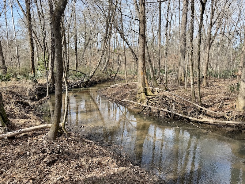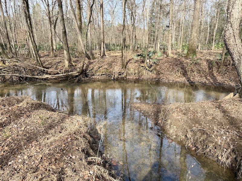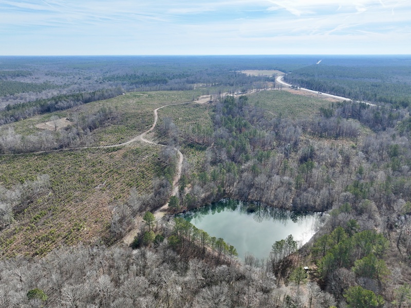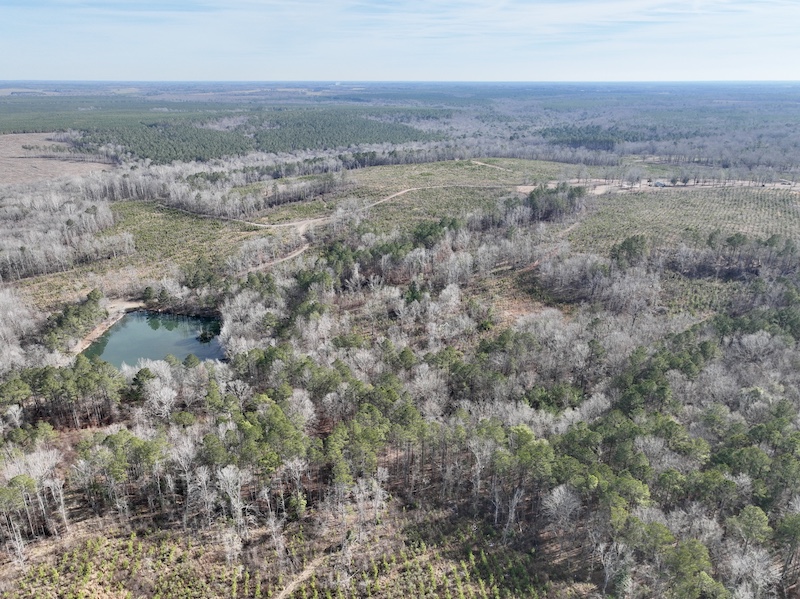 The land is thoughtfully laid out with miles of well-maintained internal trails that provide access throughout the property by truck or ATV. Over 6,000 feet of frontage along Shellstone Creek and Hogan Branch adds significant scenic appeal while creating natural travel corridors for wildlife and outstanding waterfowl habitat. A 2.5± acre pond further enhances the property, offering fishing opportunities along with an additional draw for ducks and other game.