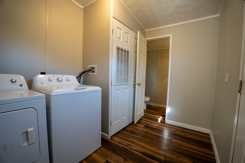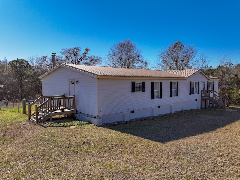 Located in Dry Branch, Georgia, this 106-acre property offers a blend of comfortable living, functional improvements, and versatile land. Set behind a gated entrance along Sapp Road, the winding driveway provides a quiet approach to the home and creates a private setting for both residential and recreational use. The 2,108-square-foot mobile home has been recently updated and comes with all appliances shown. The layout includes a spacious living room that opens directly onto a covered wood porch overlooking the fenced backyard—an ideal setup for enjoying the outdoors or keeping pets secure. The primary suite is generously sized and includes a double vanity, a walk-in shower, and a private bathroom. Two additional bedrooms are situated across the main living space and share a full bathroom. A half bath is conveniently located near the entryway and laundry area. The kitchen features a roomy pantry, bar-top island for easy serving, and an adjacent dining area. Near the home sits a metal shop building set on a concrete slab, complete with an additional exterior pad off the two roll-up doors. A tall overhang along the side of the structure provides valuable space for storing equipment or implements, and additional covered area behind the building increases its utility. A separate skinning shed is located nearby, adding a practical feature for hunters or land managers. The land itself offers a balanced mix of open and wooded acreage. Approximately 11 acres of fallow fields are located near the home and could be restored as pastures, converted into wildlife habitats, or used for planting. The remainder of the acreage consists of mixed timber in various age classes common to this region of Georgia, offering both natural beauty and long-term management opportunities. A trail system extends throughout the property, making it easy to access the interior acreage, reach hunting areas, or work the land. With its combination of renovated living space, substantial outbuildings, private setting, and diverse land characteristics, this property offers a strong foundation for multiple uses, including full-time residence, recreational retreat, or timber and habitat management.