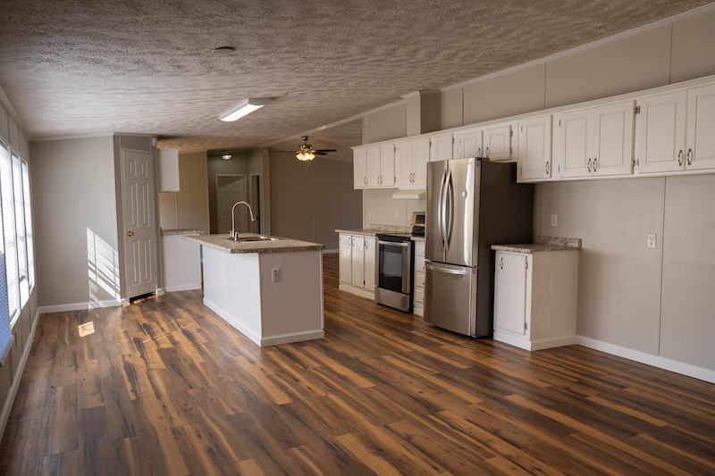 - Updated 2,108 sq ft mobile home with covered back porch overlooking fenced backyard