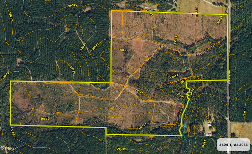 This beautiful planted pine property is located in the heart of Big Buck country. The whitetail genetics in this region are notoriously strong, and the trail camera pictures on this tract are further evidence of a healthy herd. From a management standpoint, there are 7 food plot areas that can be planted to provide year-round food sources. The agricultural fields in the area also serve to supply bucks with a protein source to enhance antler growth. Longleaf pines serve as excellent bedding habitats for any wild game in their 5-15 year stage. The longleaf stands were recently mowed out and can easily be maintained until straw raking age. Raking the pine straw can provide a significant annual income to help cash flow the investment in the future. In later years, the longleaf timber quality should be superb and provide a lump sum return. The towering loblolly pines contrast with the longleaf due to their age, which provides great diversity across the land. They, too, will provide the potential for timber revenue in the future. The terrain is rolling with some areas more drastic than others. This offers picturesque views throughout. The property mostly consists of upland soils, but the seasonal hardwood branches can provide a water source for game. Few farms currently on the market have the combined future income and trophy whitetail-producing potential of this one! Do not miss out on this opportunity. Give us a call today to schedule a private showing.