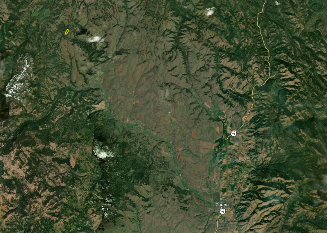 Rare mountain getaway entirely surrounded by the Payette National Forest underneath Cuddy Mountain and northwest of Council. Just off Council Cuprum Road, this timbered property with well-maintained roads and trails is the ideal location to build or recreate. Summit Creek is just off the property line on public ground and provides water for local wildlife and vegetation. Centered in Hunting Unit 22, which provides near year-round hunting opportunities, being home to elk, deer, bear, lion, and turkeys. Thousands of acres of public land in the Payette National Forest allow for endless off-roading, hiking, and snowmobiling. Designated as a patented mining claim and the only one in the area on private land. The rolling terrain and ample timber offer several building or camping sites. Solar potential. If you are looking for a place in the mountains, this one has it all.