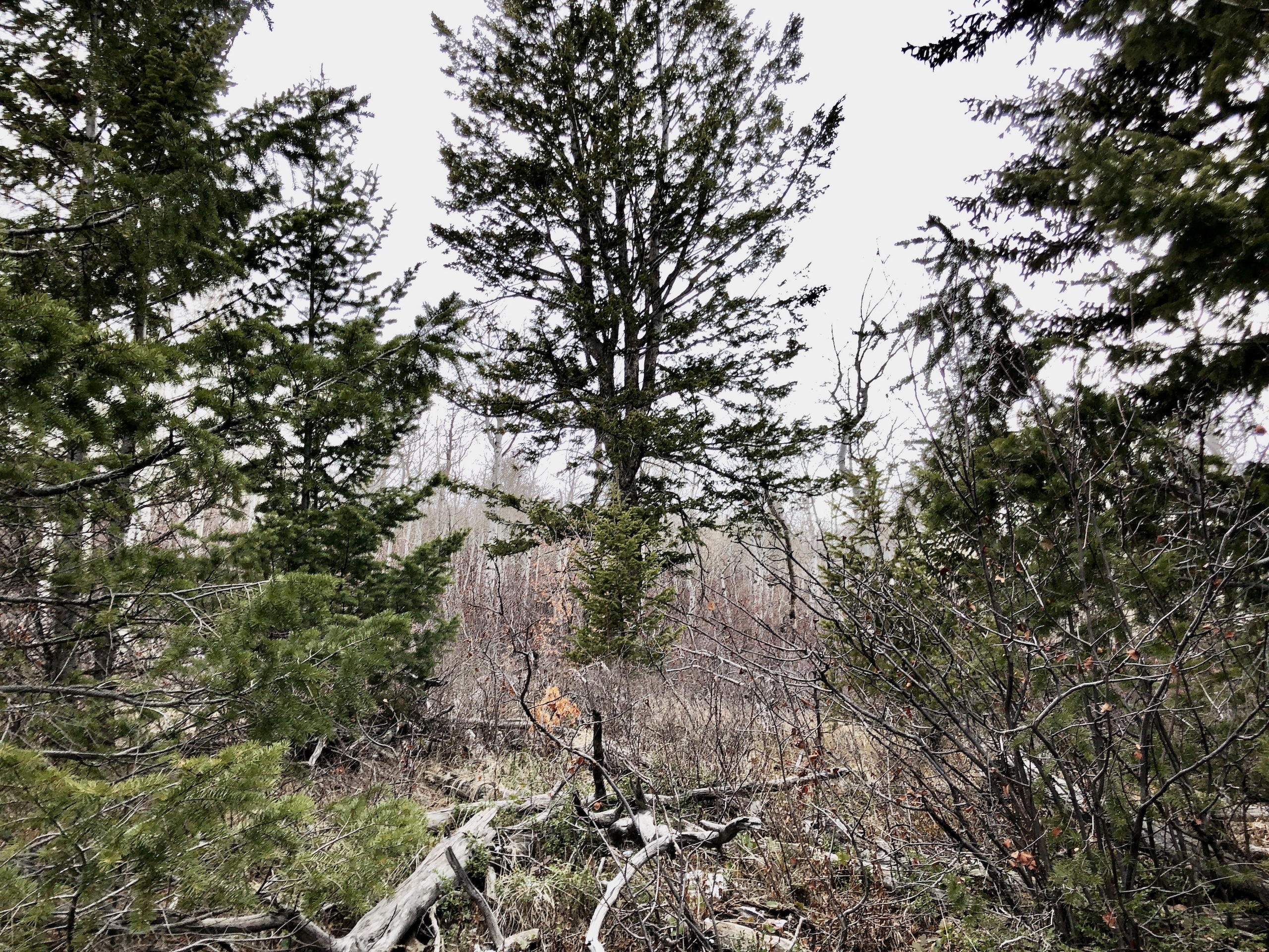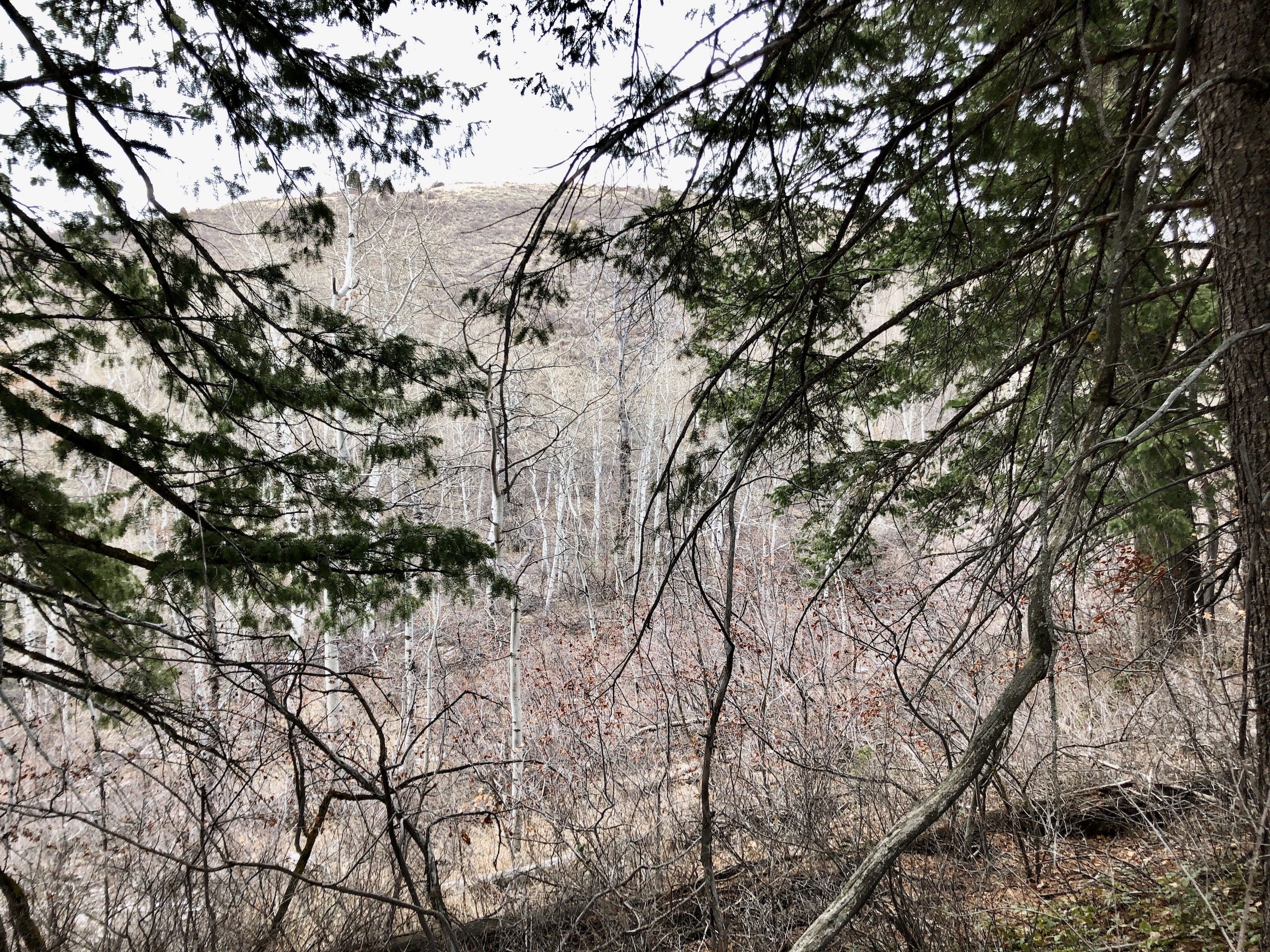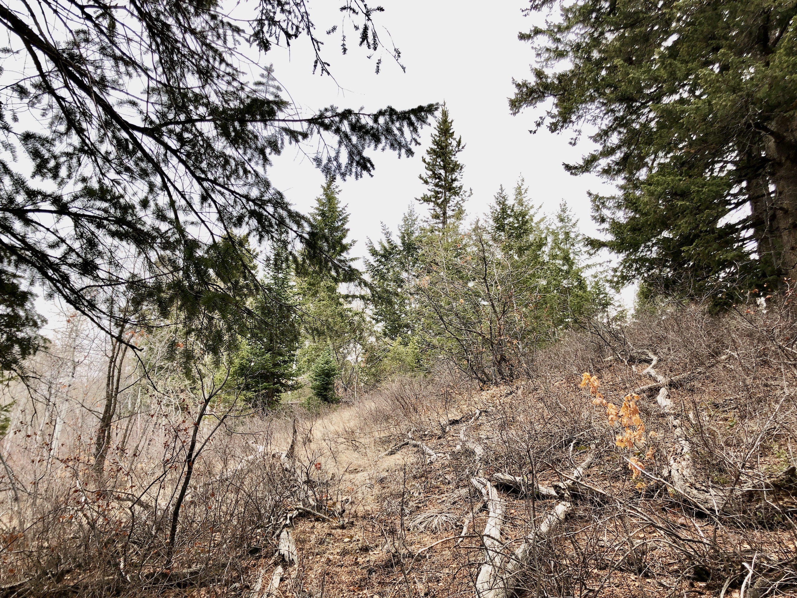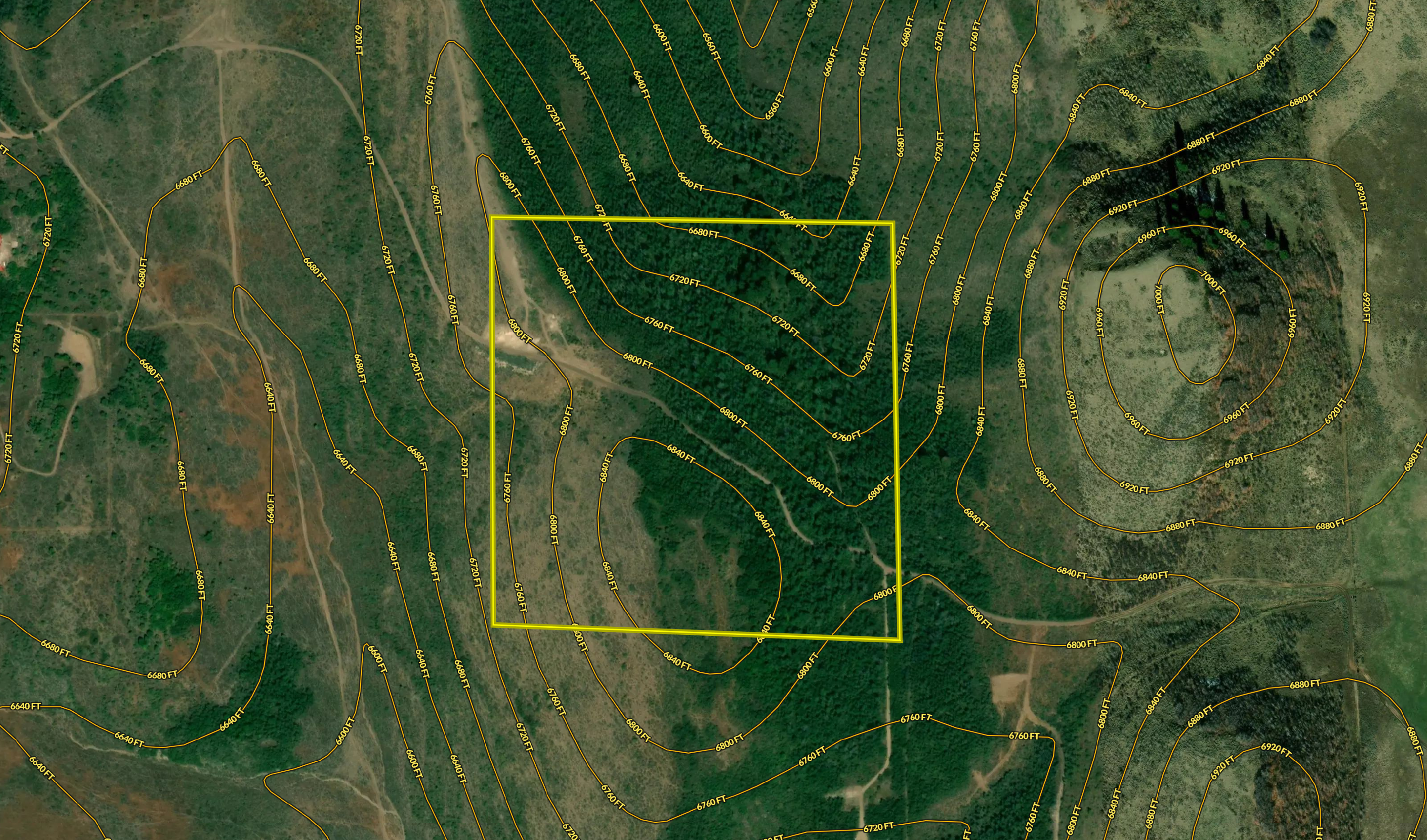 - Gradual slope with areas of dense trees and draws