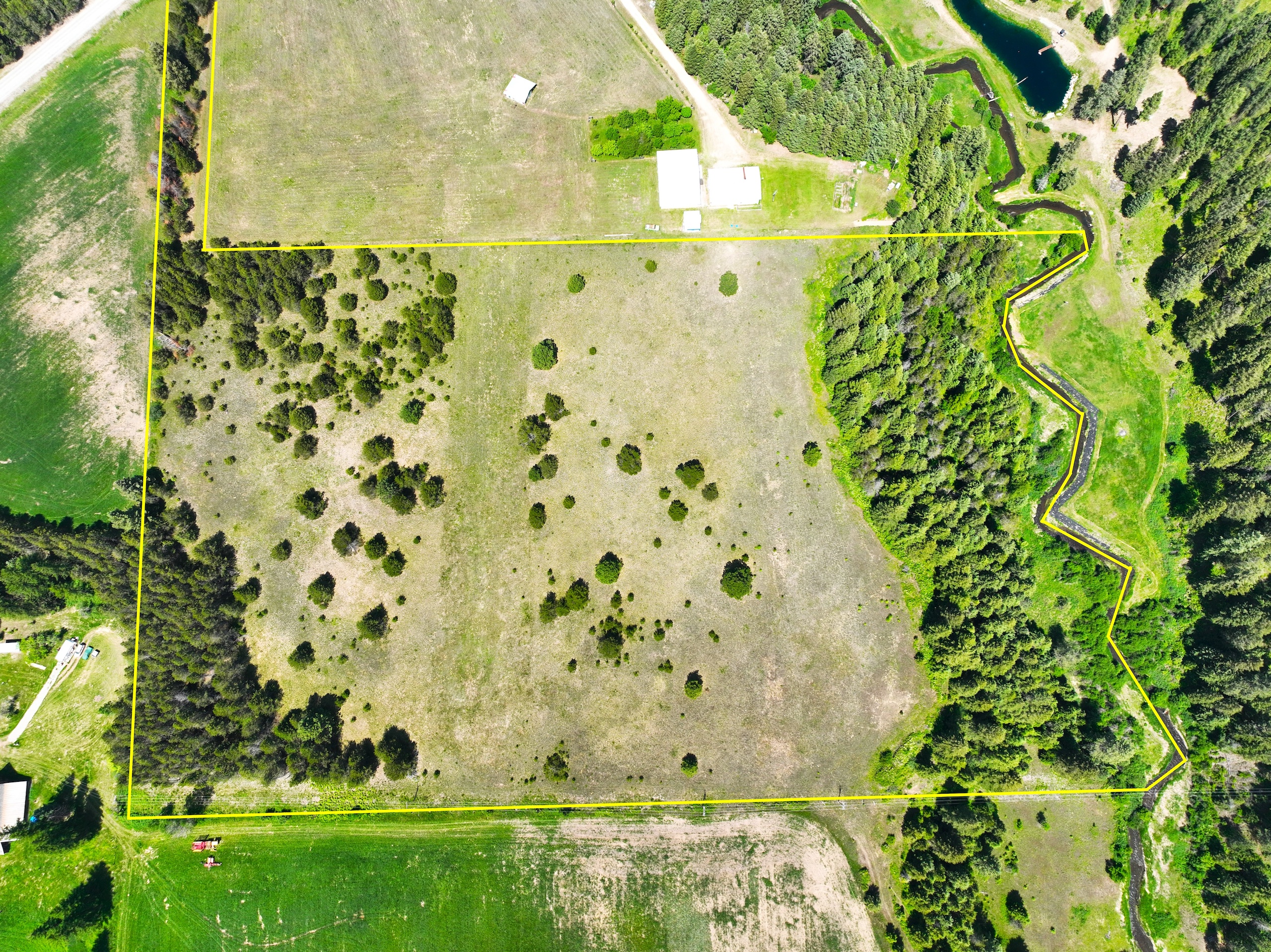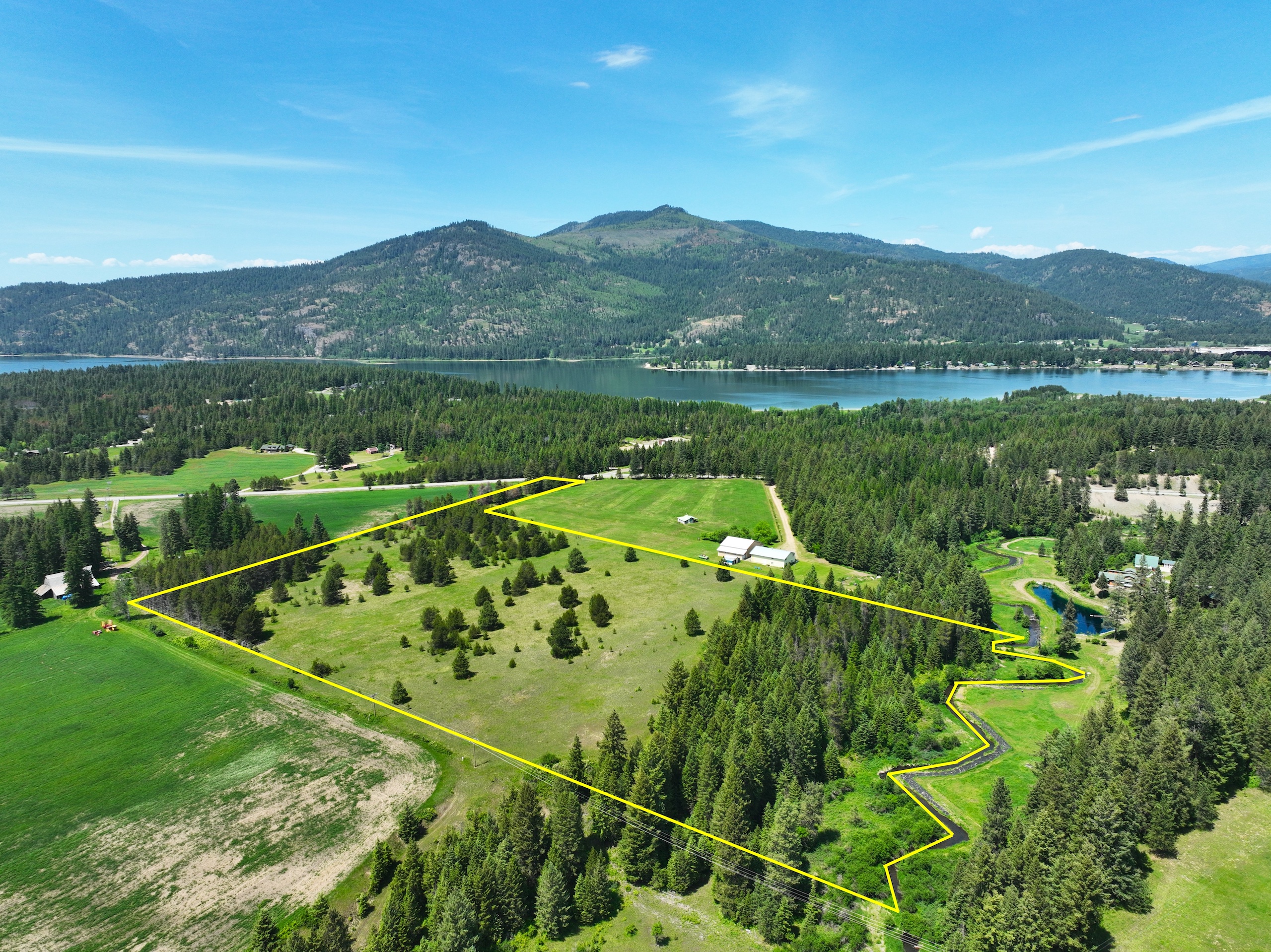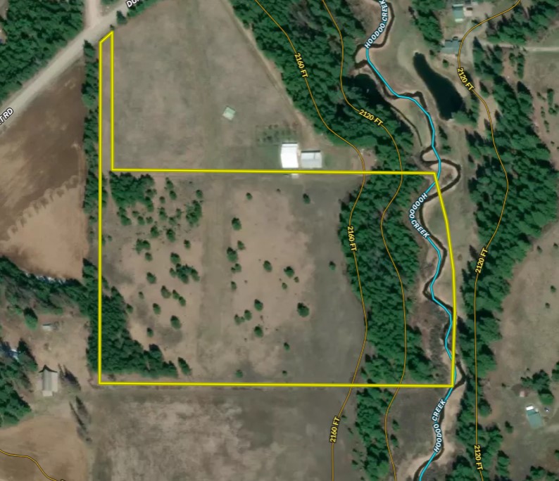 Formerly an agricultural property, this raw land tract features +/- 14 acres of flat, buildable ground. The remaining acreage is a pine forest with approx. 600’ of frontage on Hoodoo Creek – a tributary that flows into the Pend Oreille River. The habitat diversity, access, and premium location make this tract unique. With frontage on a paved county road, a 700’ private lane takes you back into the property, providing privacy and seclusion for a future home site. This property is perfectly set up to become a ranch, horse property, farmstead, or country home estate. With Gold Cup Mountain and the Pend Oreille River to the north, Horn Mountain to the west, and Long Mountain to the south – there’s no shortage of scenic views from this property. Electric is available nearby.