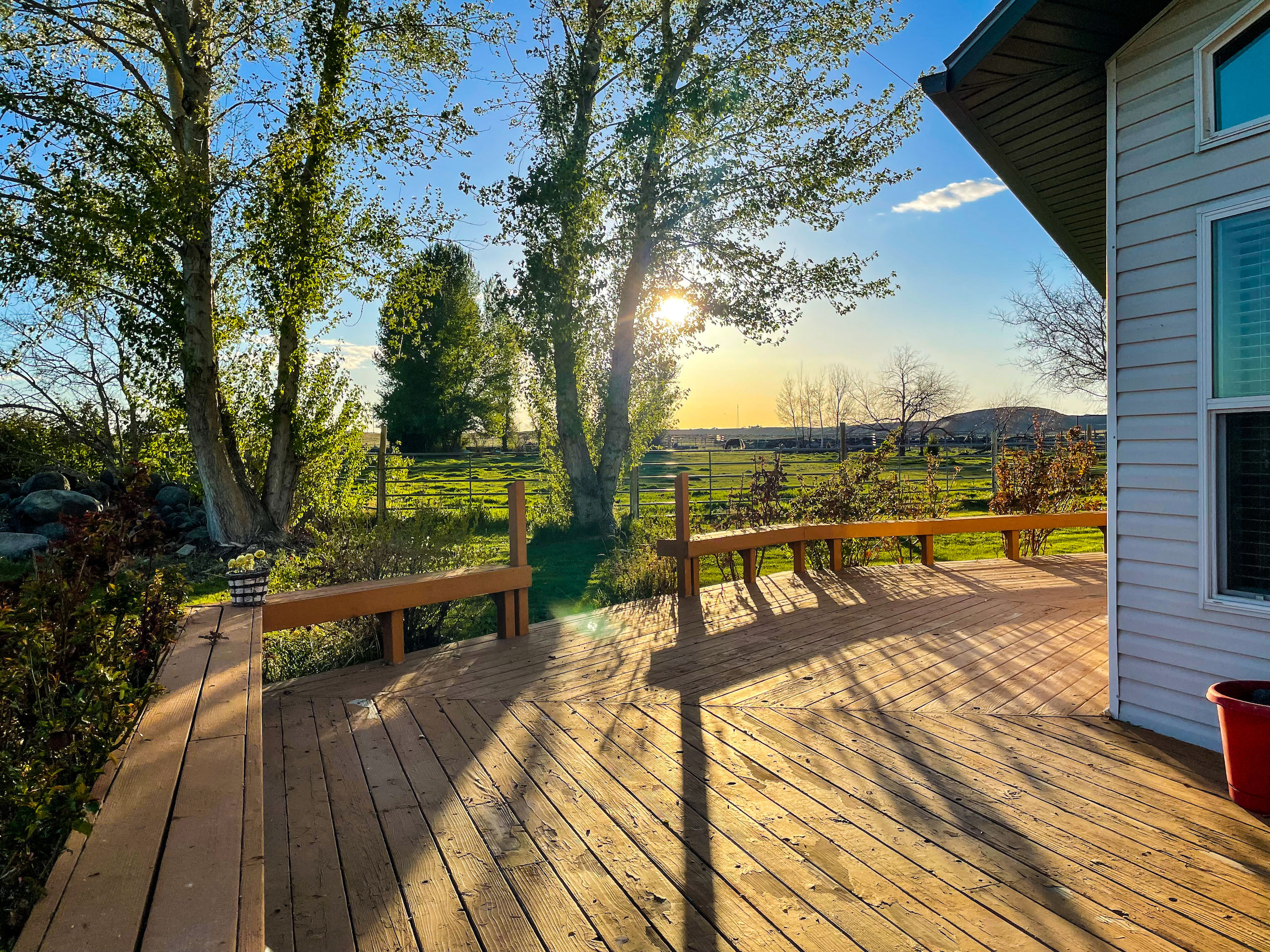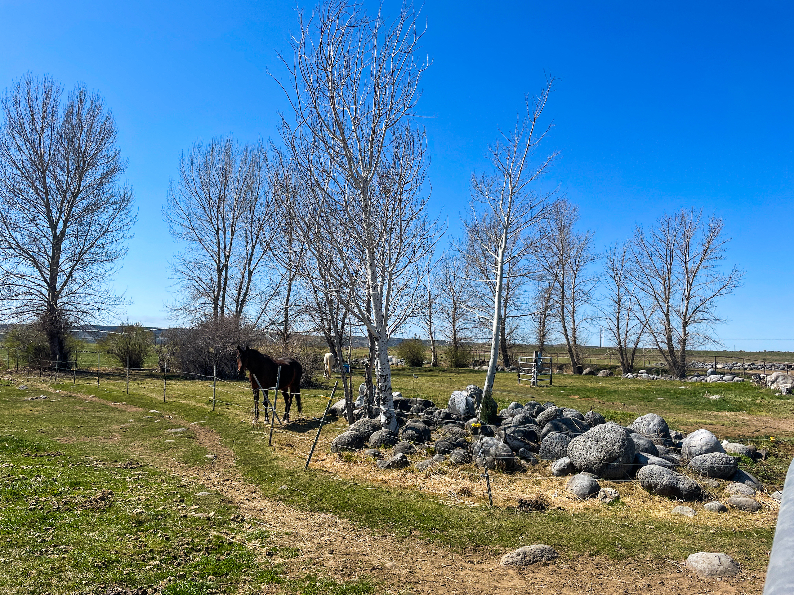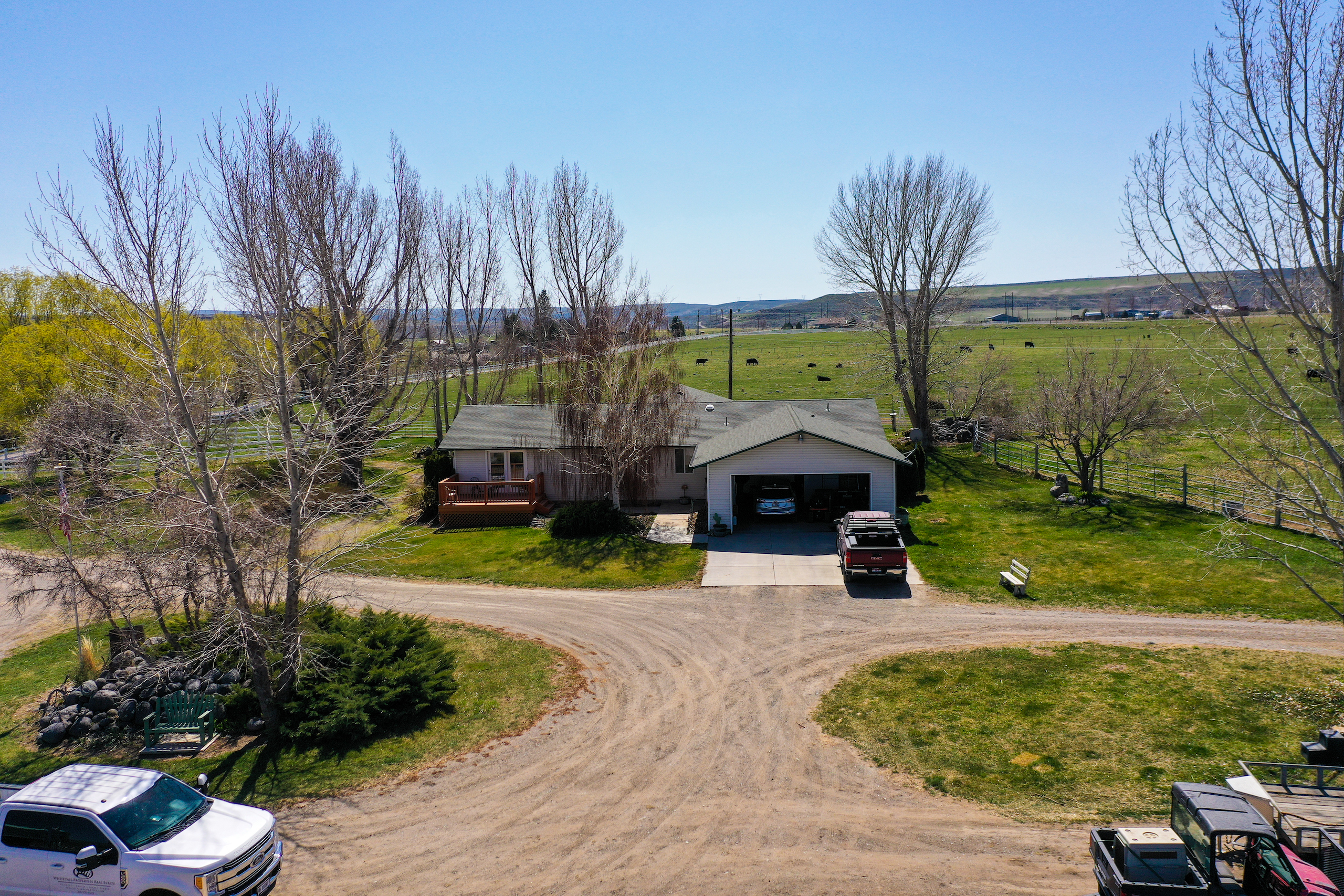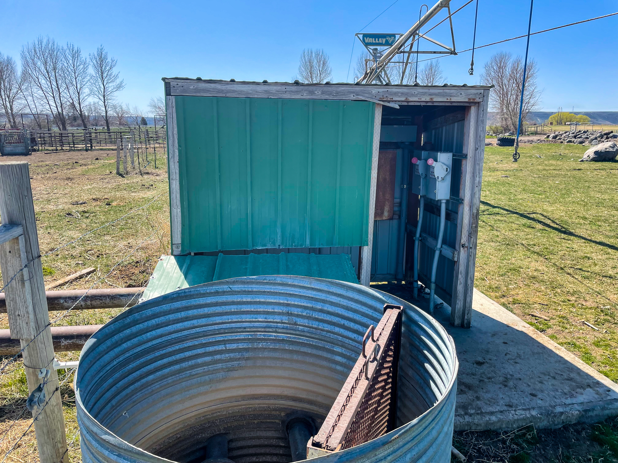 The Fallen Tree Ranch finds itself at the end of a road on the bluffs of the Snake River Canyon in King Hill, Idaho. A white post and rail fence lined with mature hardwoods brings you to the center of the ranch where the well-appointed three bedroom, two bath, 2400 sq ft home with vaulted ceilings and rear wrapping porch takes advantage of the panoramic views and privacy. Opposite the home is multiple horse and cattle corrals, pens, tack room and pastures. The facility layout provides ample space for machine movement and parking with plenty of room for infrastructure expansion. Presently, 64+/- acres are annually leased on a corn/potato rotation with cattle grazing triticale after the crops come off. Running through the center of the property is King Hill Irrigation’s ditch which provides 73 acres of water pumped direct to a 4- tower and a 3-tower pivot, which cover a majority of the acreage with handlines filling in the gaps. A 300 ft domestic well provides water for the home and livestock. A well-maintained fencing system separates multiple fields for rotational grazing and animal management. The property is broken up into two parcels, 10 acres hold the home, facilities, and a portion of the field south of the home and then wrapping around that is the large 94+/- acre parcel that holds most of the irrigated ground, pivots, and ditch. This modern, well-designed ranch is turnkey and checks every box for privacy, water, space, home, facilities, and irrigated ground, making it the ideal location to expand your operation or create the ranch you have always envisioned.