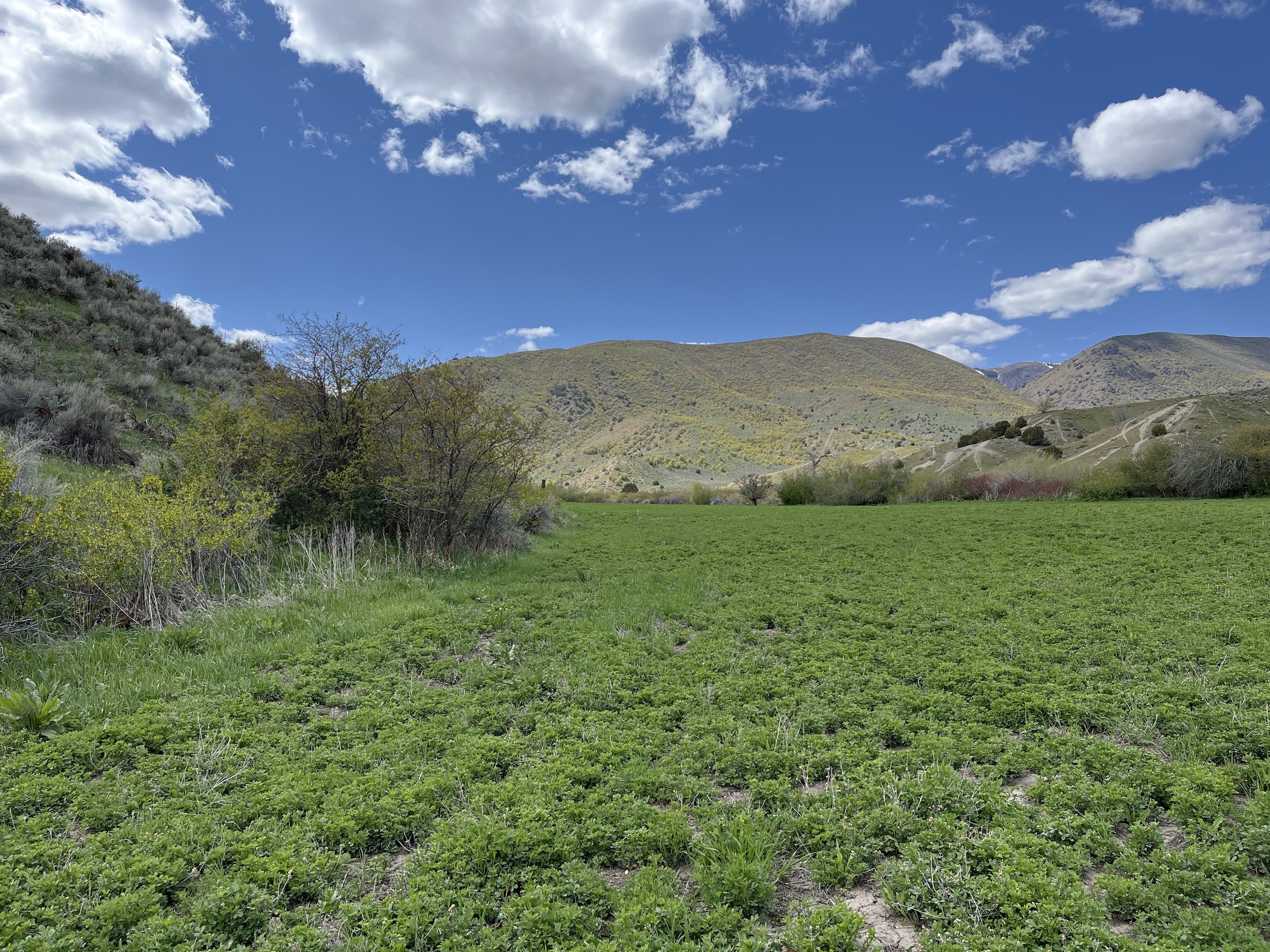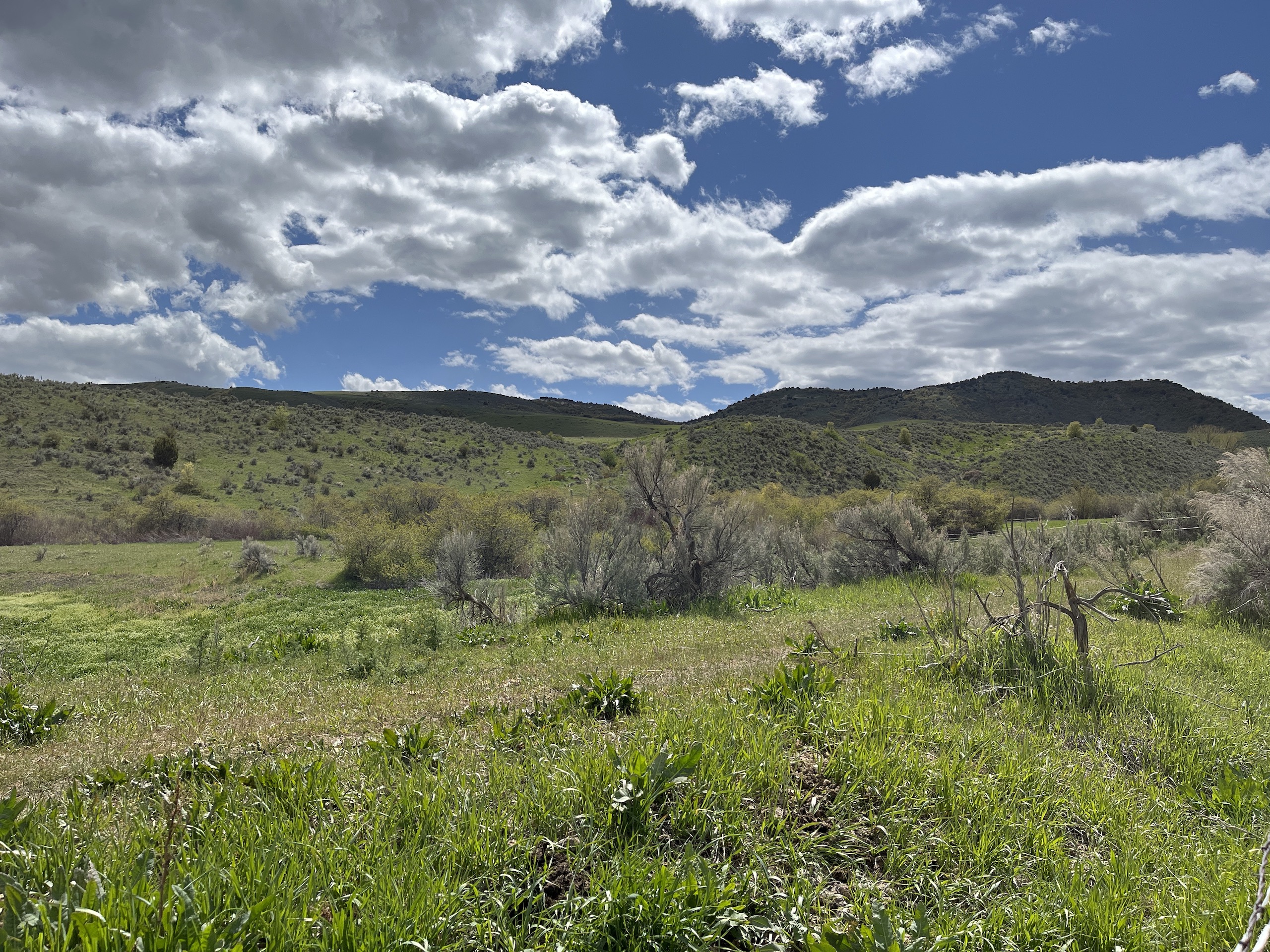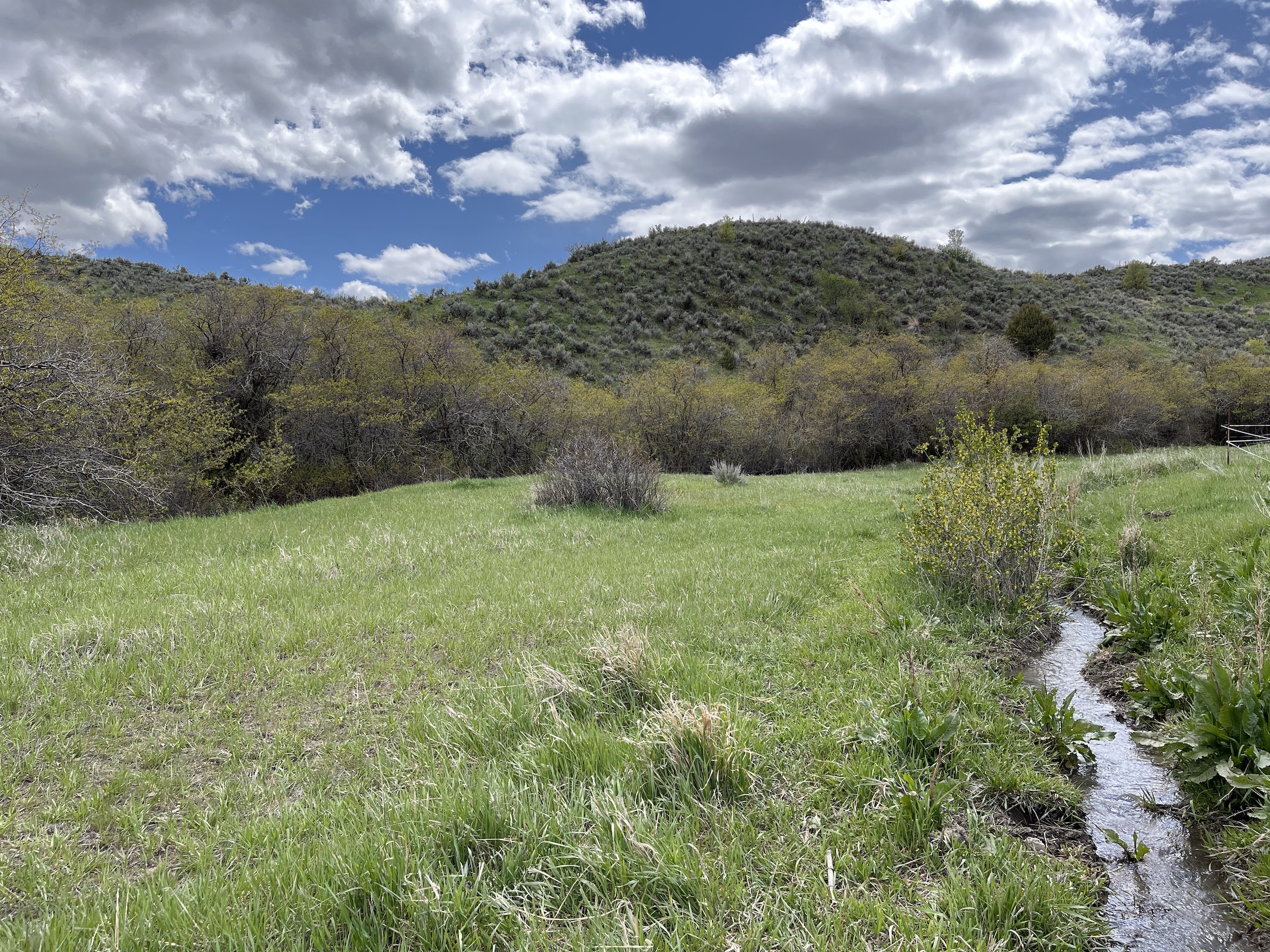 - Seasonal creek and pond from spring runoff with seasonal water rights