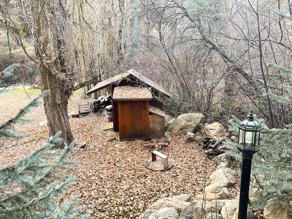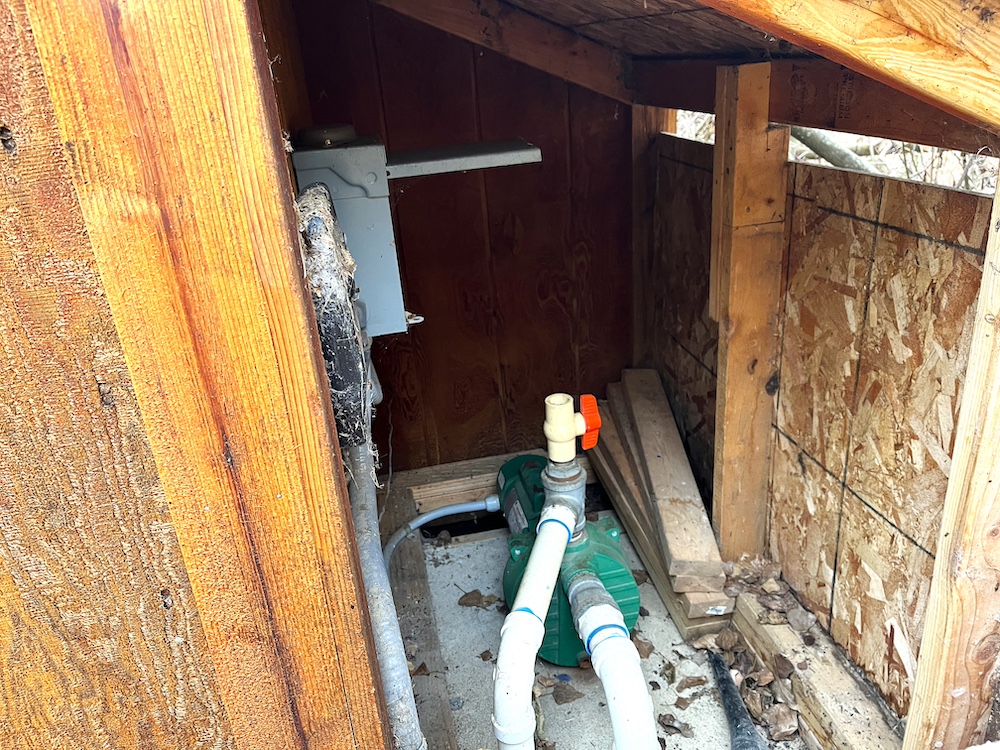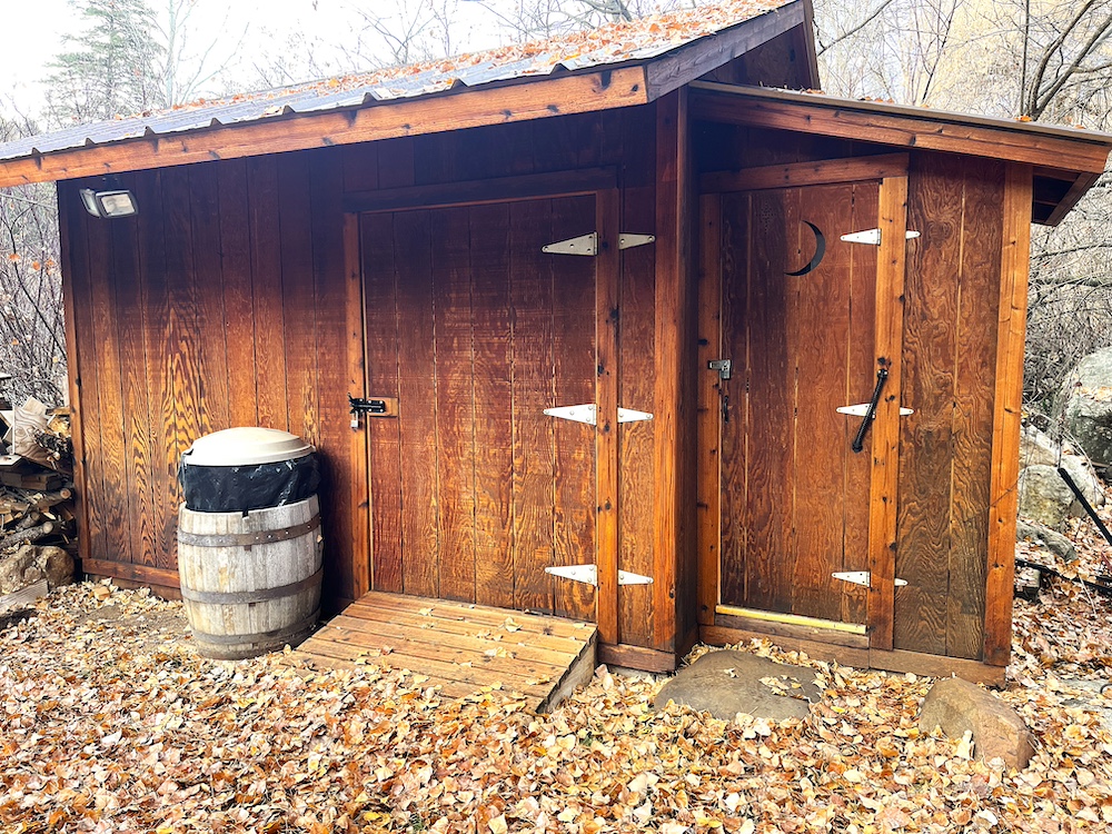 - Outhouse with flushable toilet