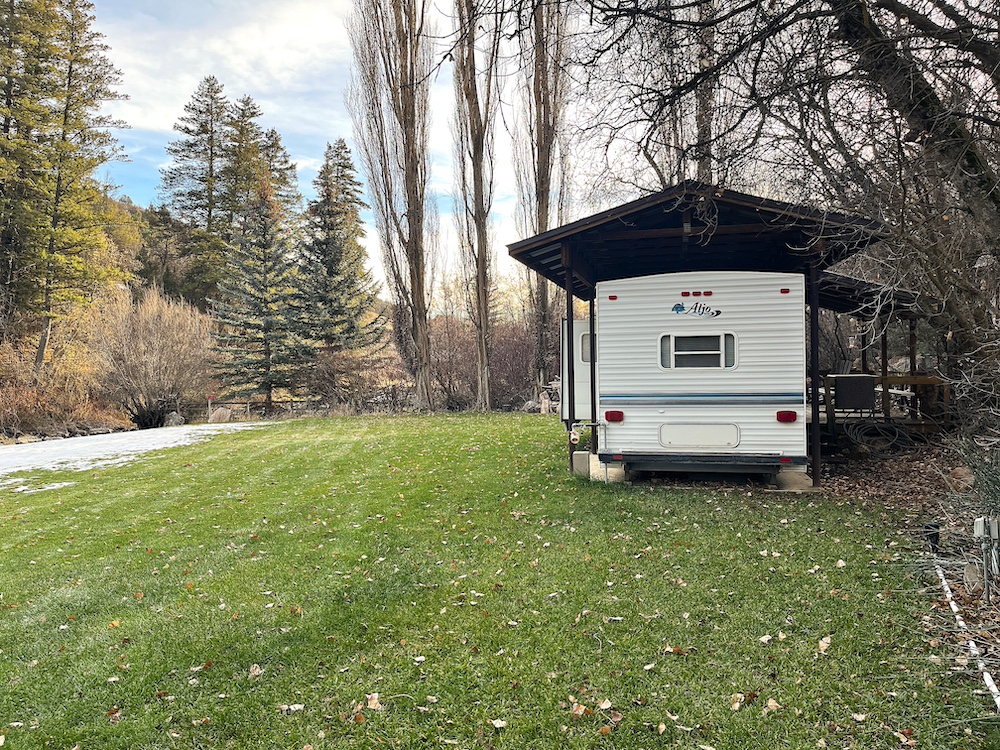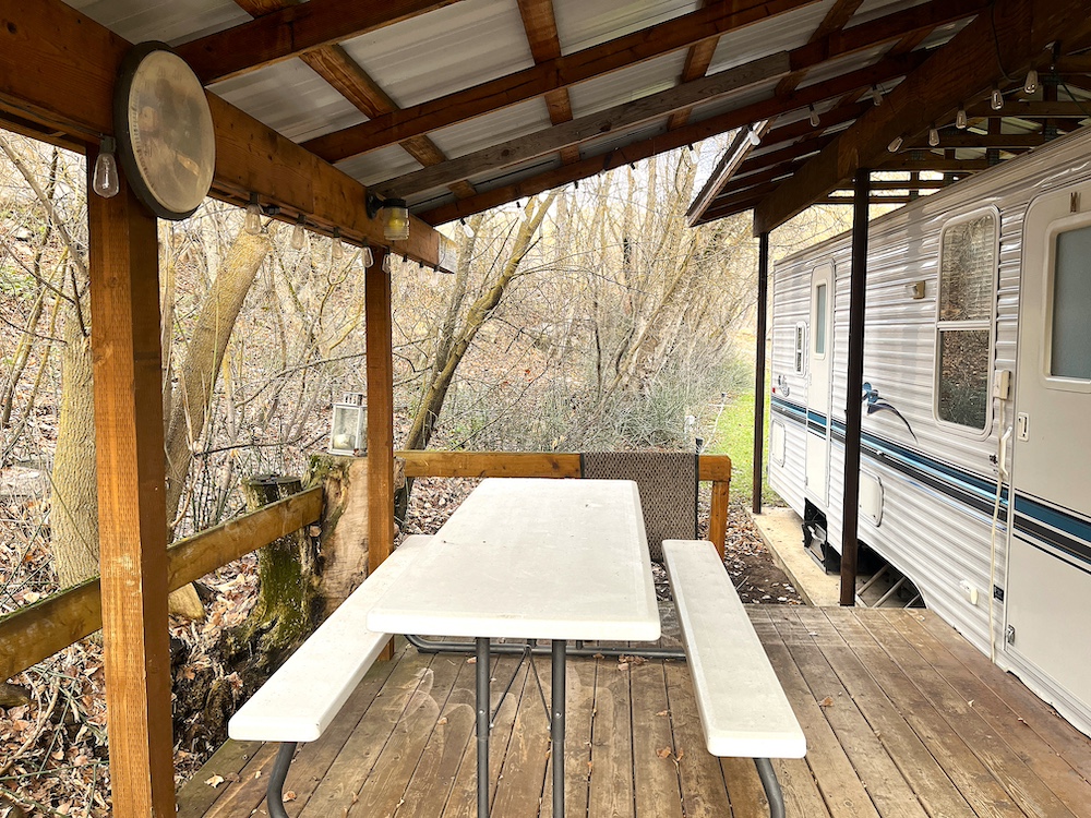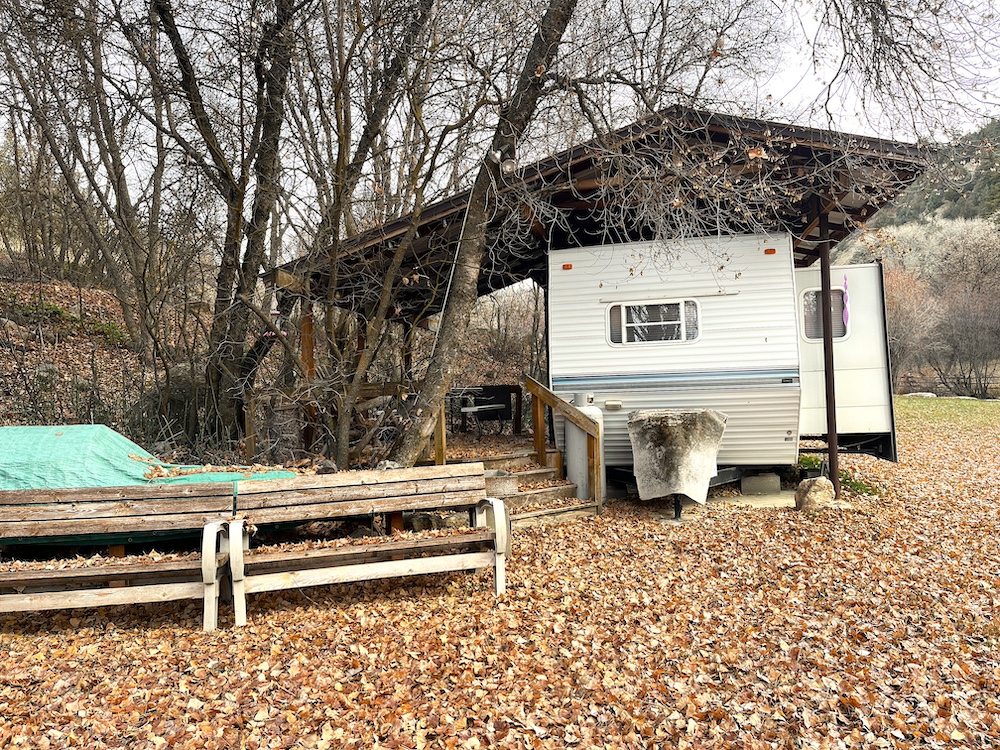 - 1997 30-foot trailer with power, heating and AC, covered deck and roof sleeps two