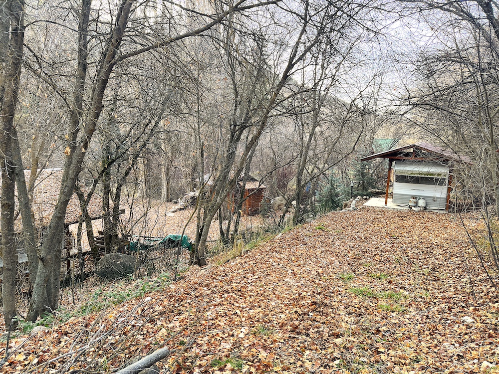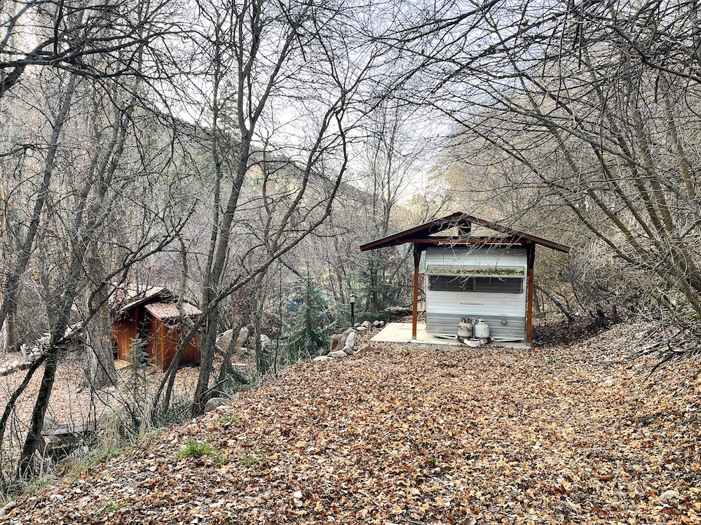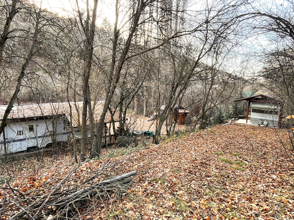 The main thirty-foot trailer is well-maintained equipped with heat, A/C, power, covered roof and deck and sleeps two comfortably. A remodeled and well-maintained bunkhouse trailer equipped with power and roof sleeps four to five kids and makes this ideal for family weekends or hunting camp. The outdoor cook station, flushable outhouse and multiple propane tanks complete this set-up designed for comfortable stays. Enjoy the privacy and shade of the mature trees and expansive lawn for gatherings and lawn games, the result of meticulous excavation work hauling boulders and truckloads of dirt.