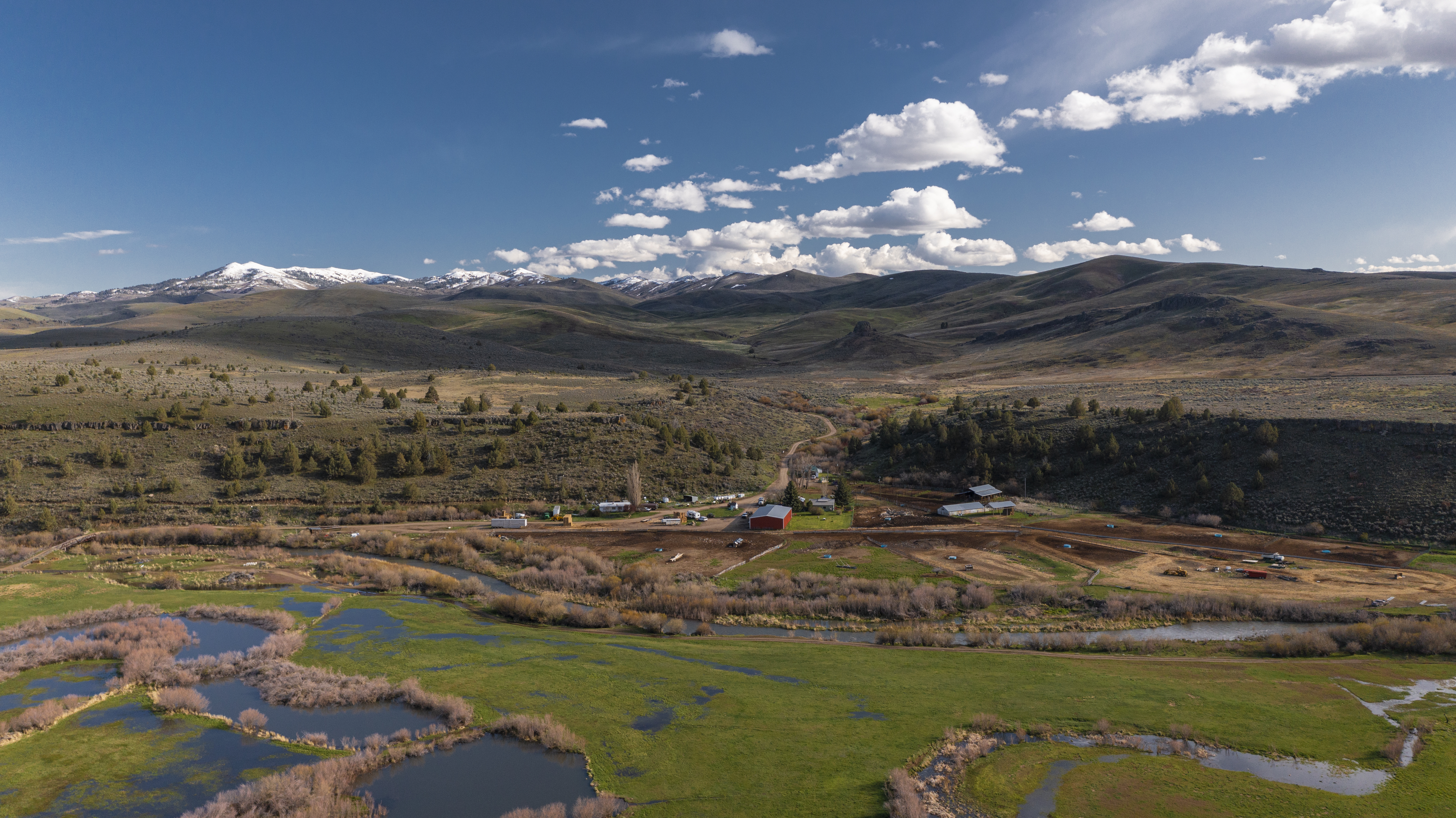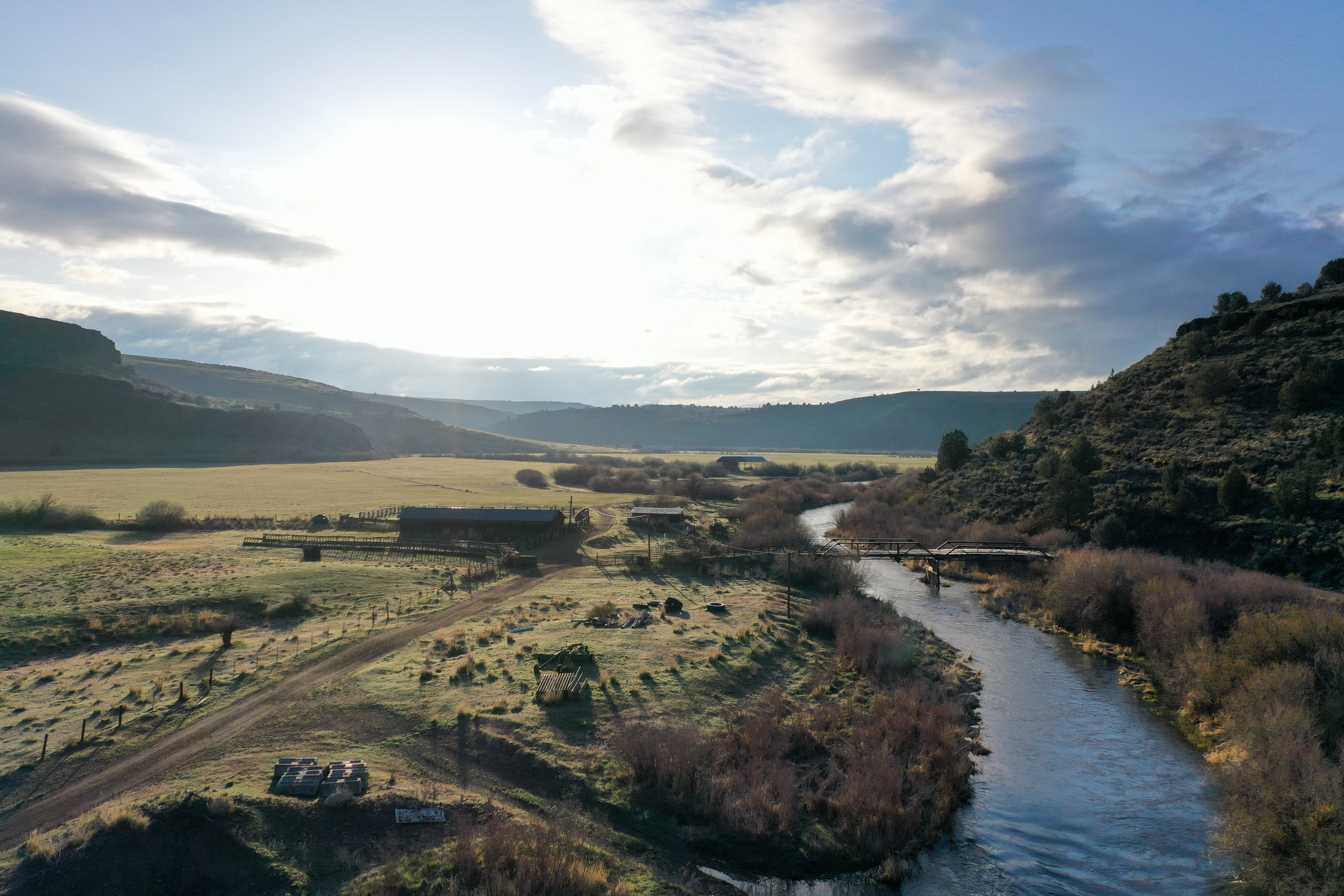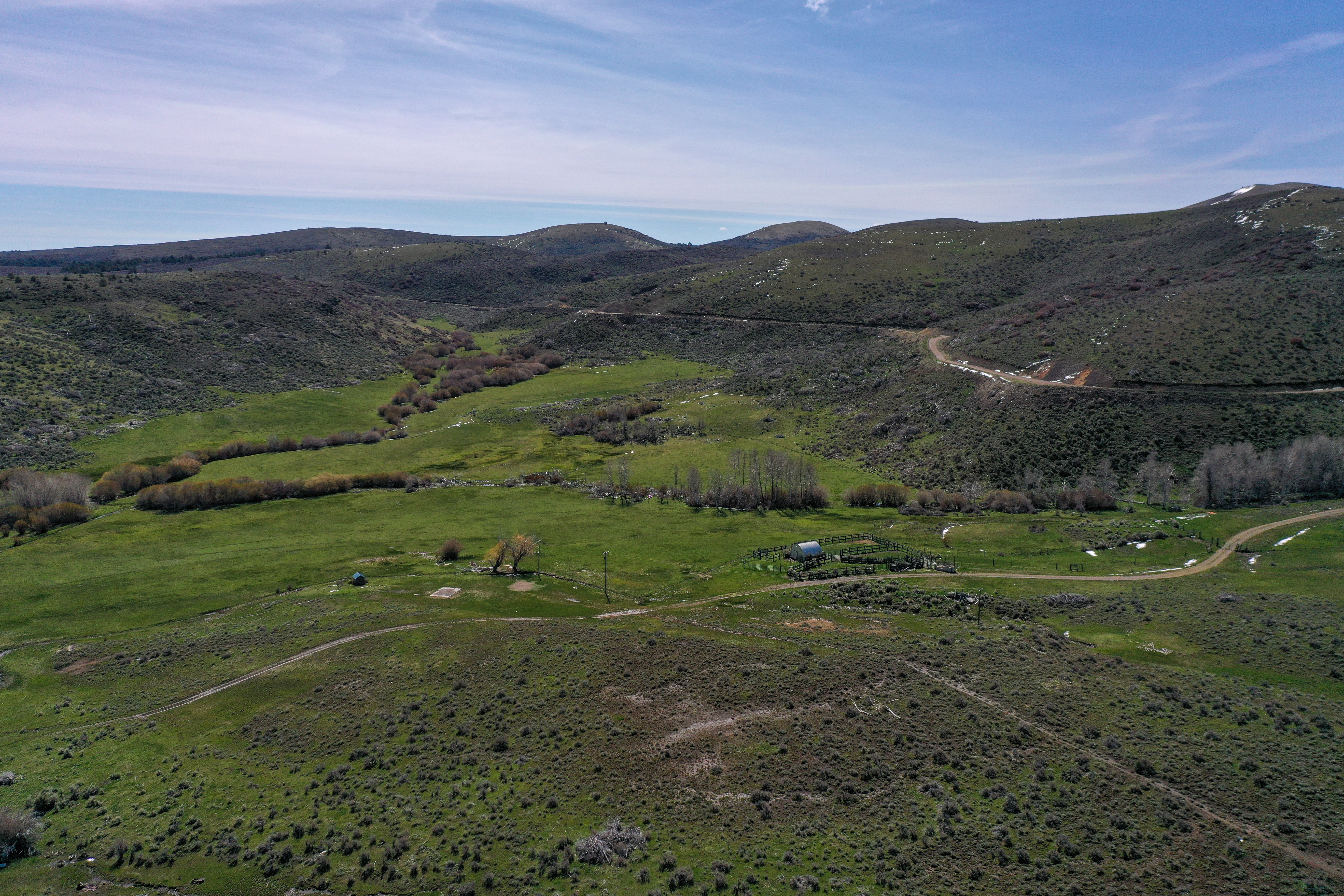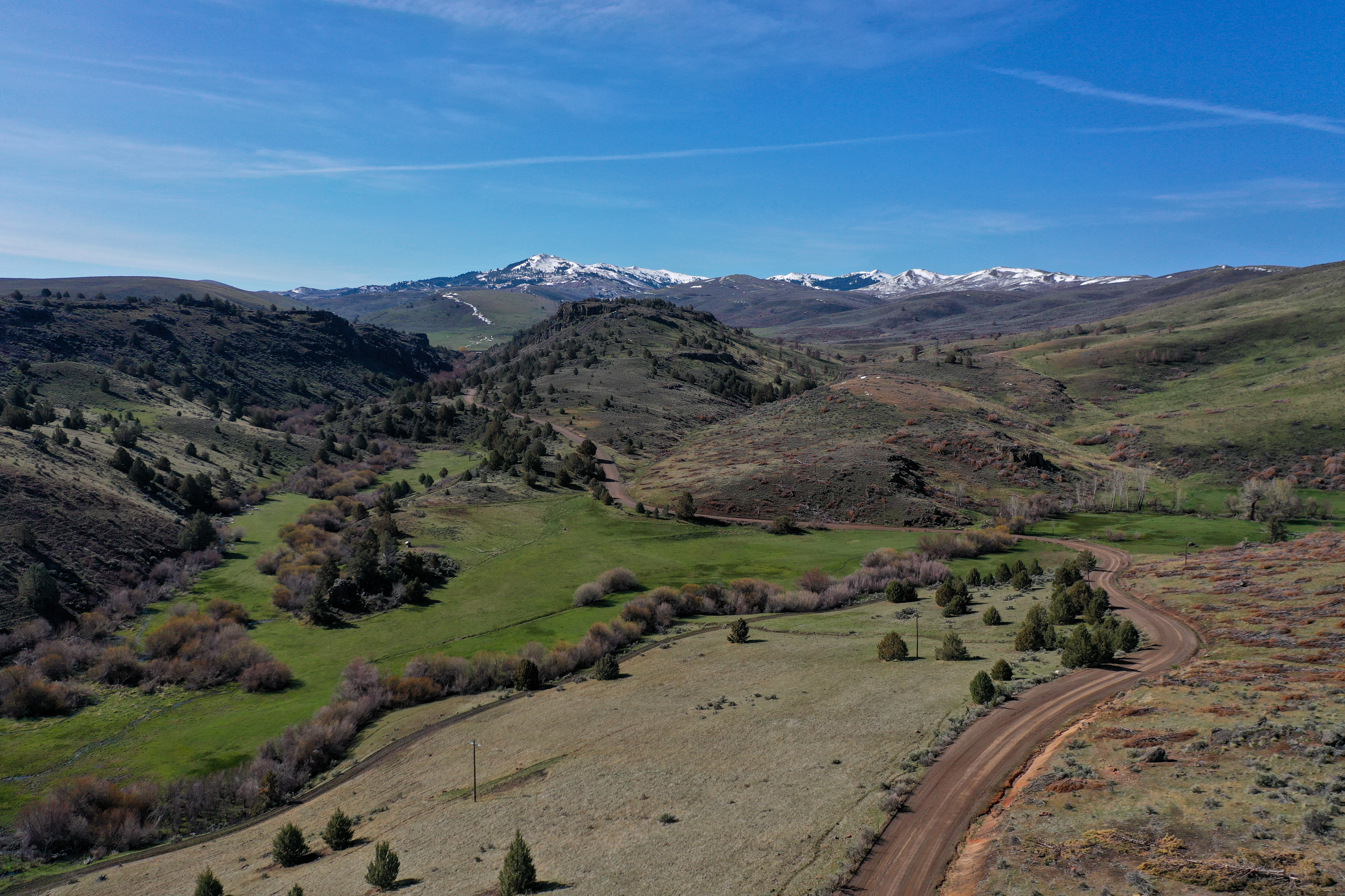 Equally as expansive and beautiful, the Oregon Ranches’ 5,100+ deeded acres lay 50 miles west in Rome, Oregon with the historic Pillars of Rome serving as its entrance. 1000 feet lower in elevation from Idaho’s low country, the dry, desert climate is ideal for winter ranges. Crooked Creek supplies water across 200+/- irrigated acres that produce about five tons an acre of hay in three cuts, with the fourth cut being left for October’s first arrival of cows. Mule deer, ducks, geese, and a host of other animals frequent this oasis in the desert that somehow seems to have more water leave the property than enters.