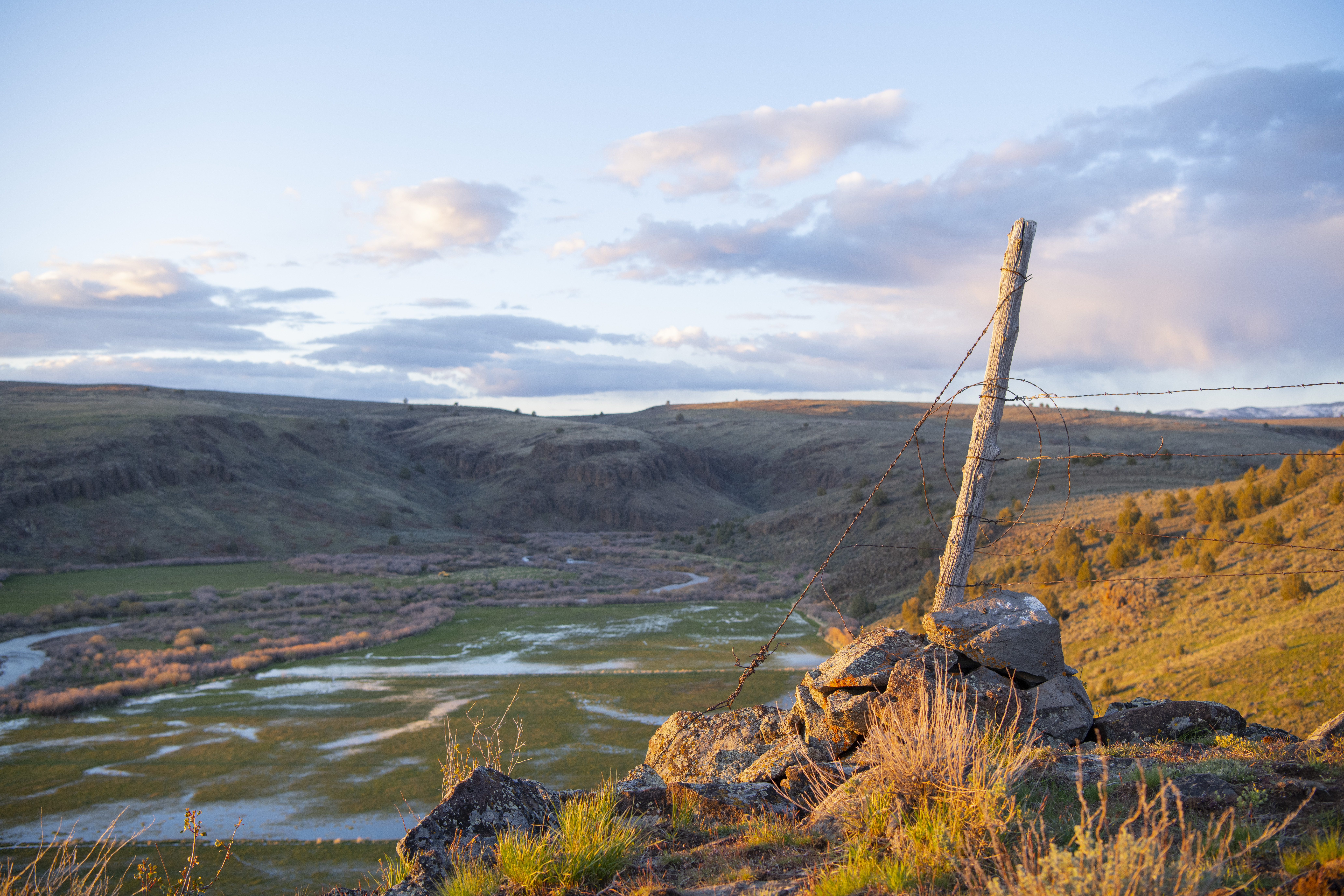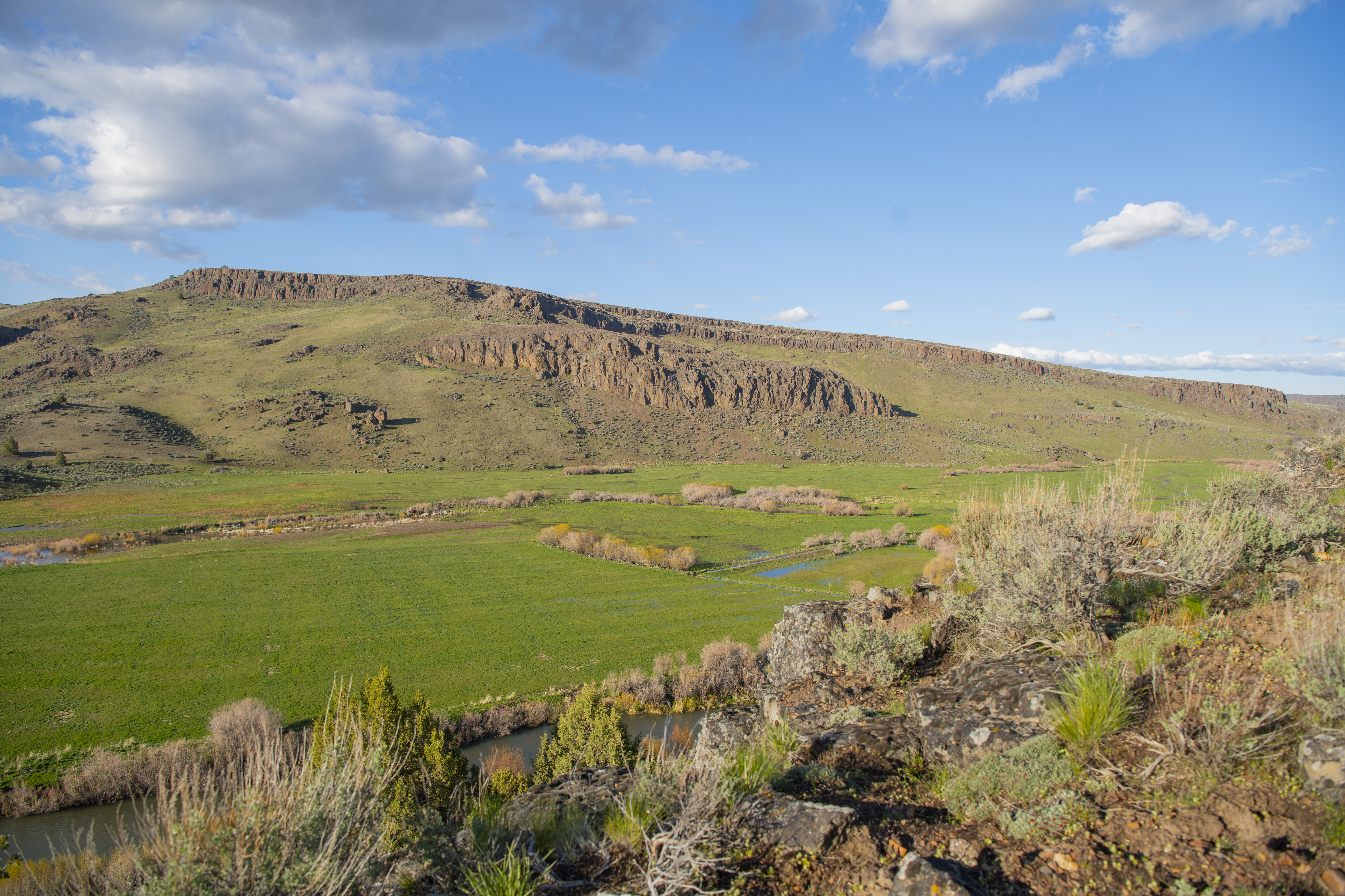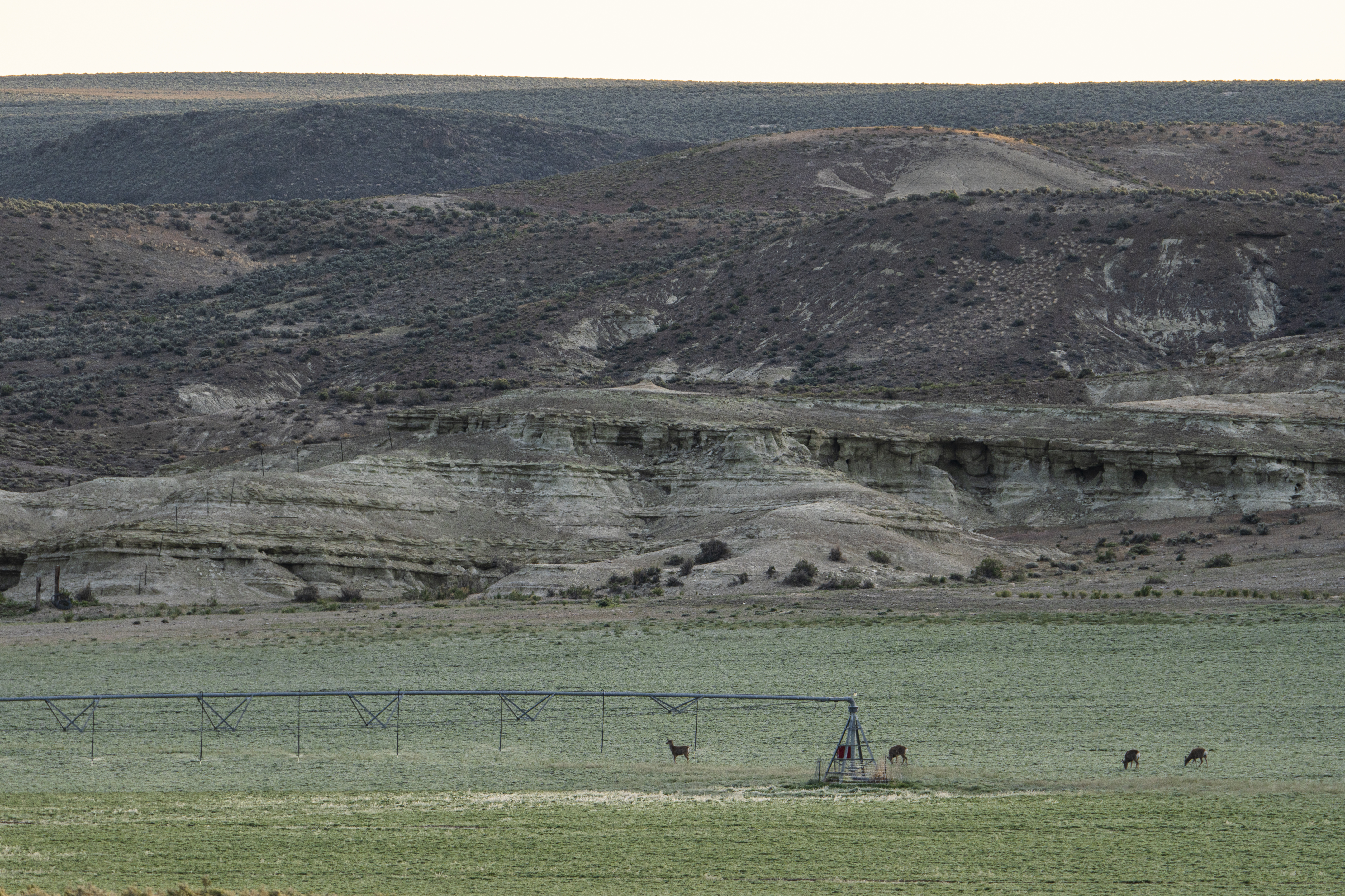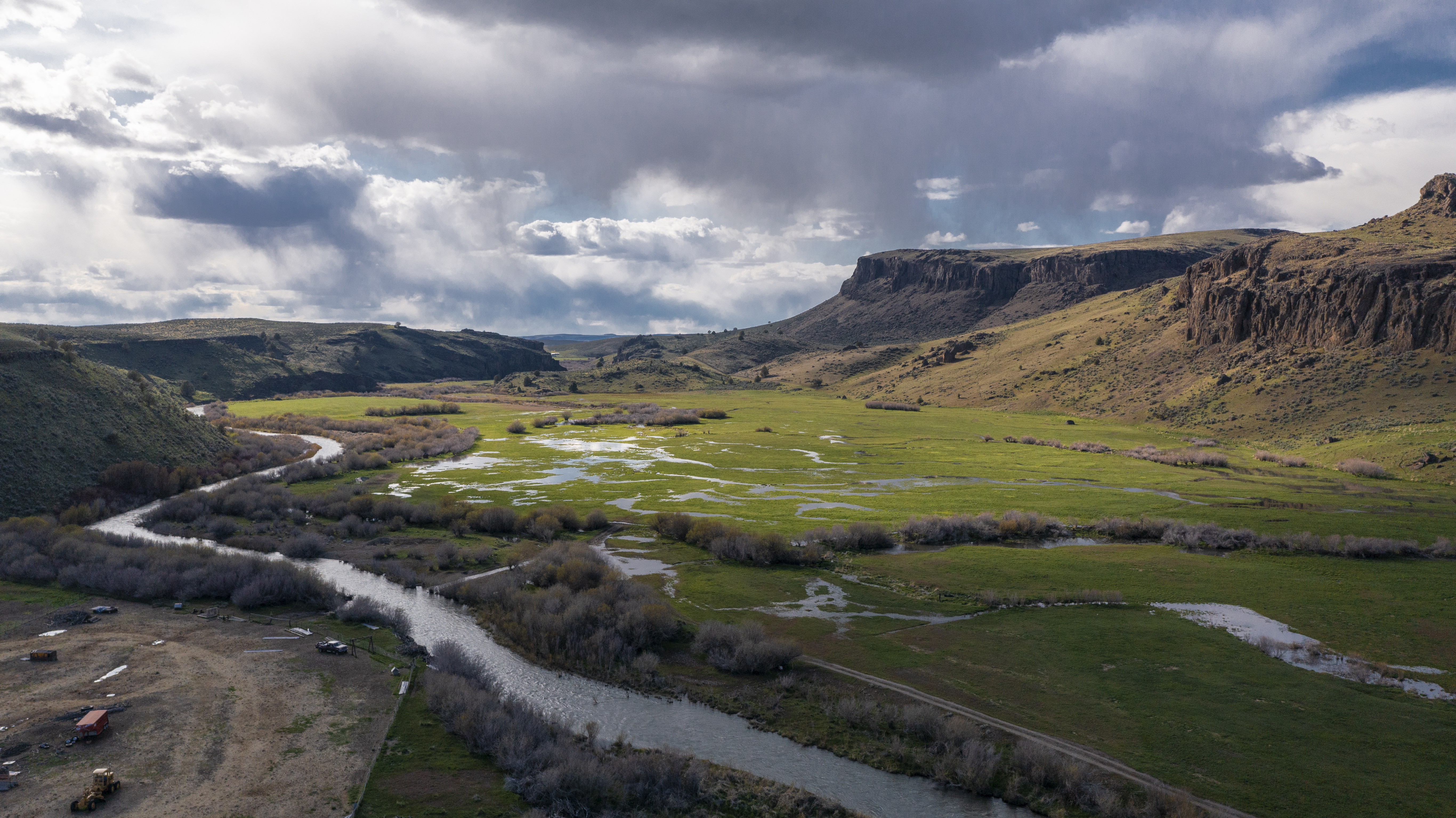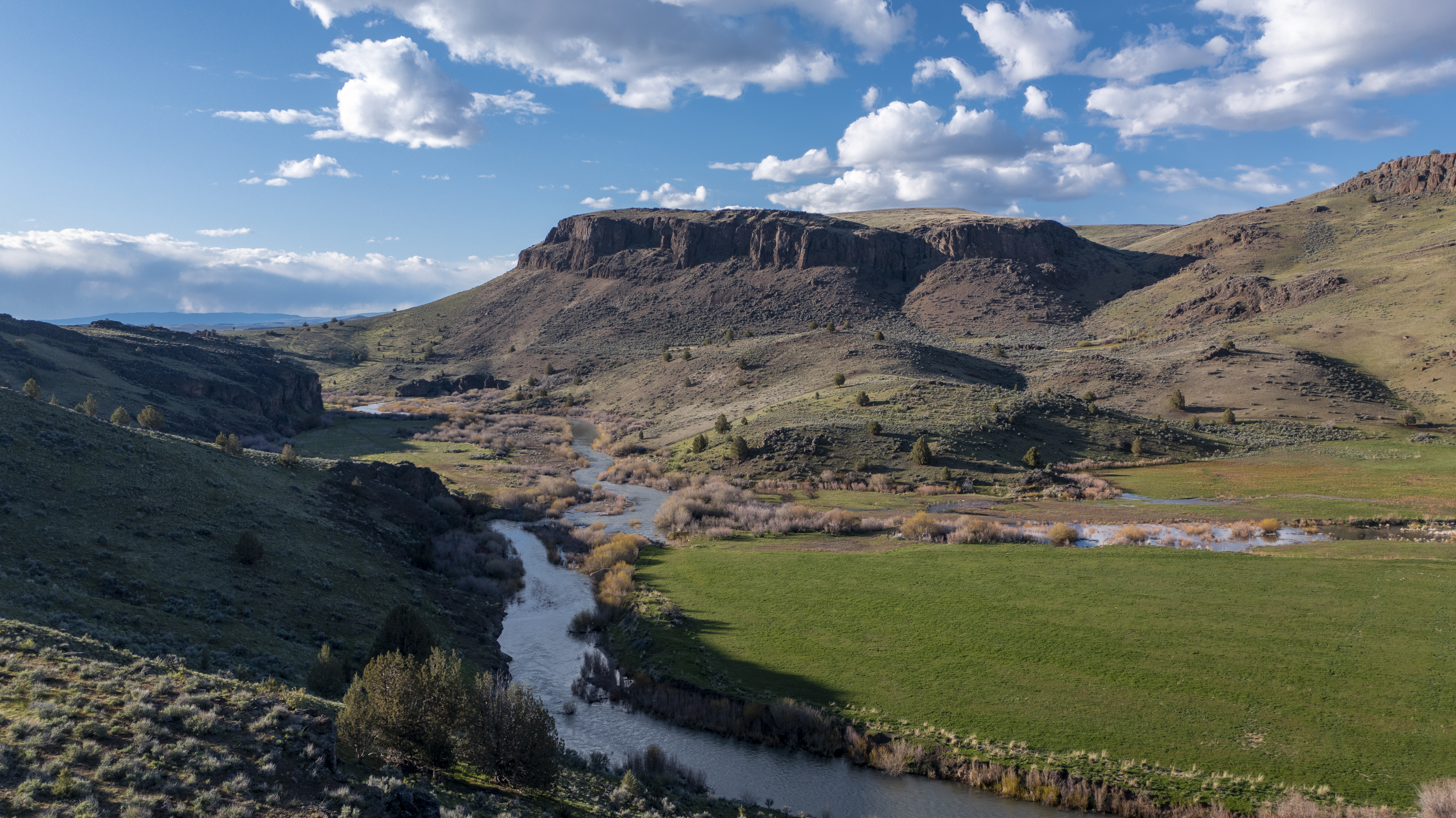Equally as expansive and beautiful, the Oregon Ranches’ 5,100+ deeded acres lay 50 miles west in Rome, Oregon with the historic Pillars of Rome serving as its entrance. 1000 feet lower in elevation from Idaho’s low country, the dry, desert climate is ideal for winter ranges. Crooked Creek supplies water across 200+/- irrigated acres that produce about five tons an acre of hay in three cuts, with the fourth cut being left for October’s first arrival of cows. Mule deer, ducks, geese, and a host of other animals frequent this oasis in the desert that somehow seems to have more water leave the property than enters.