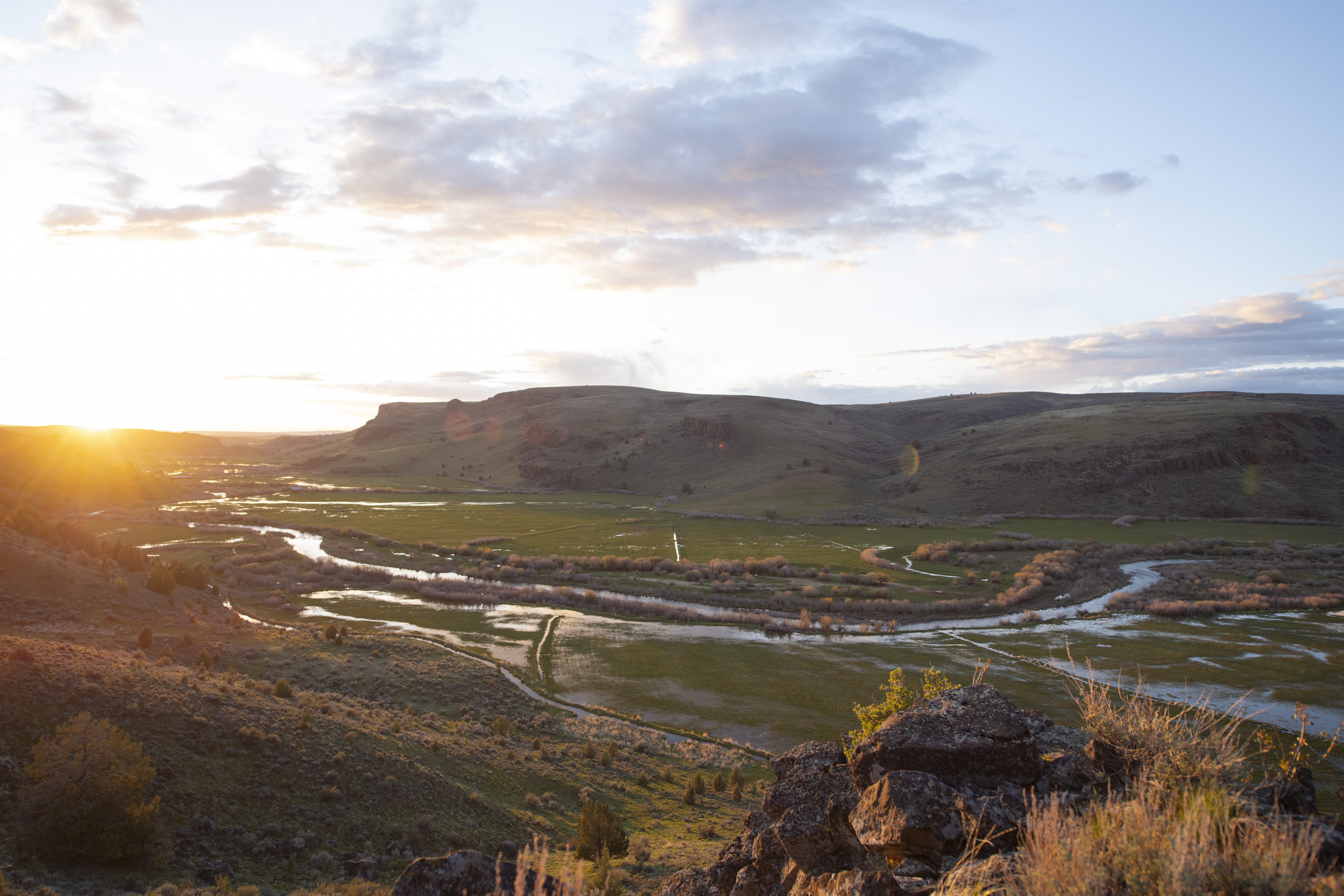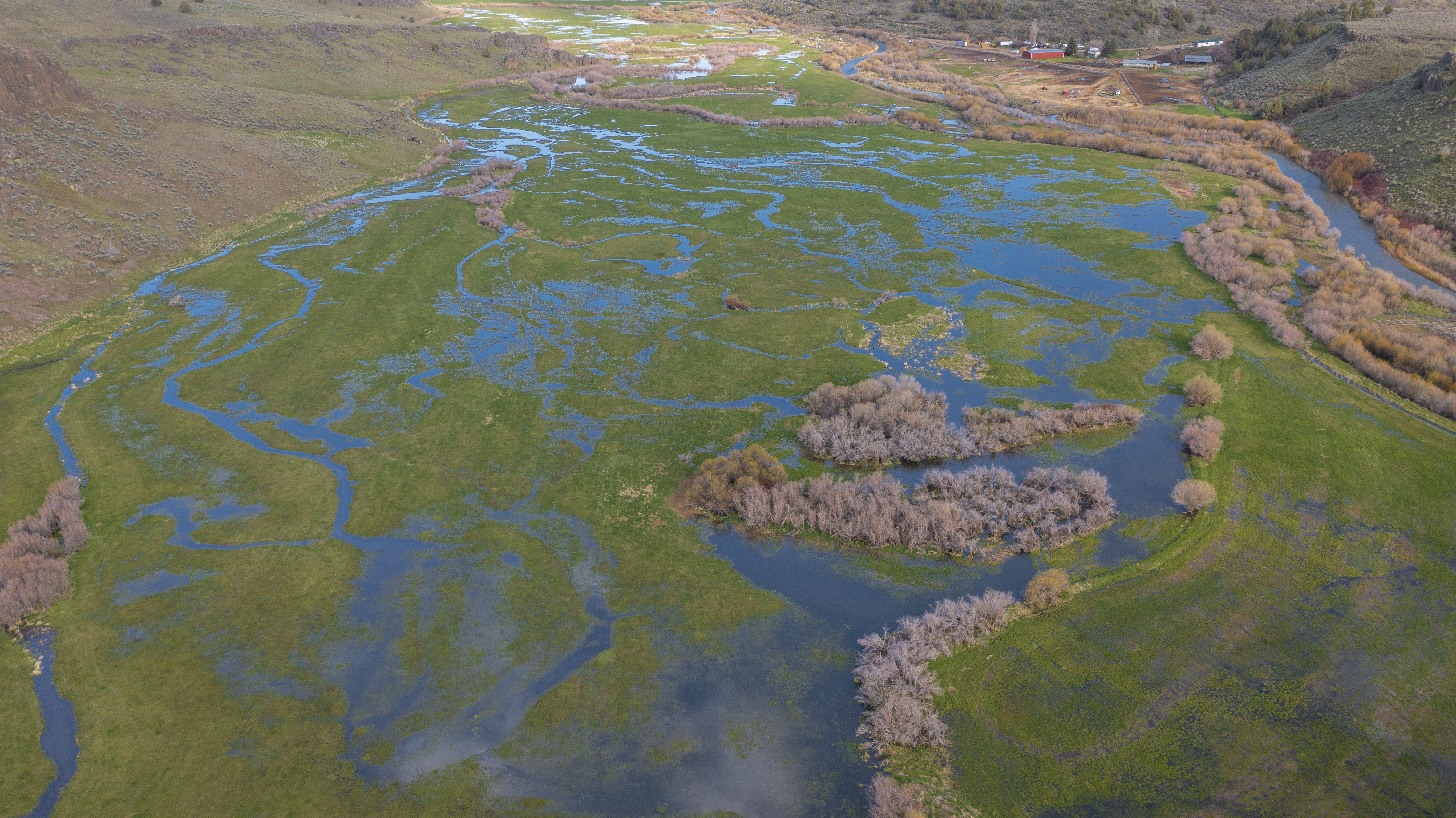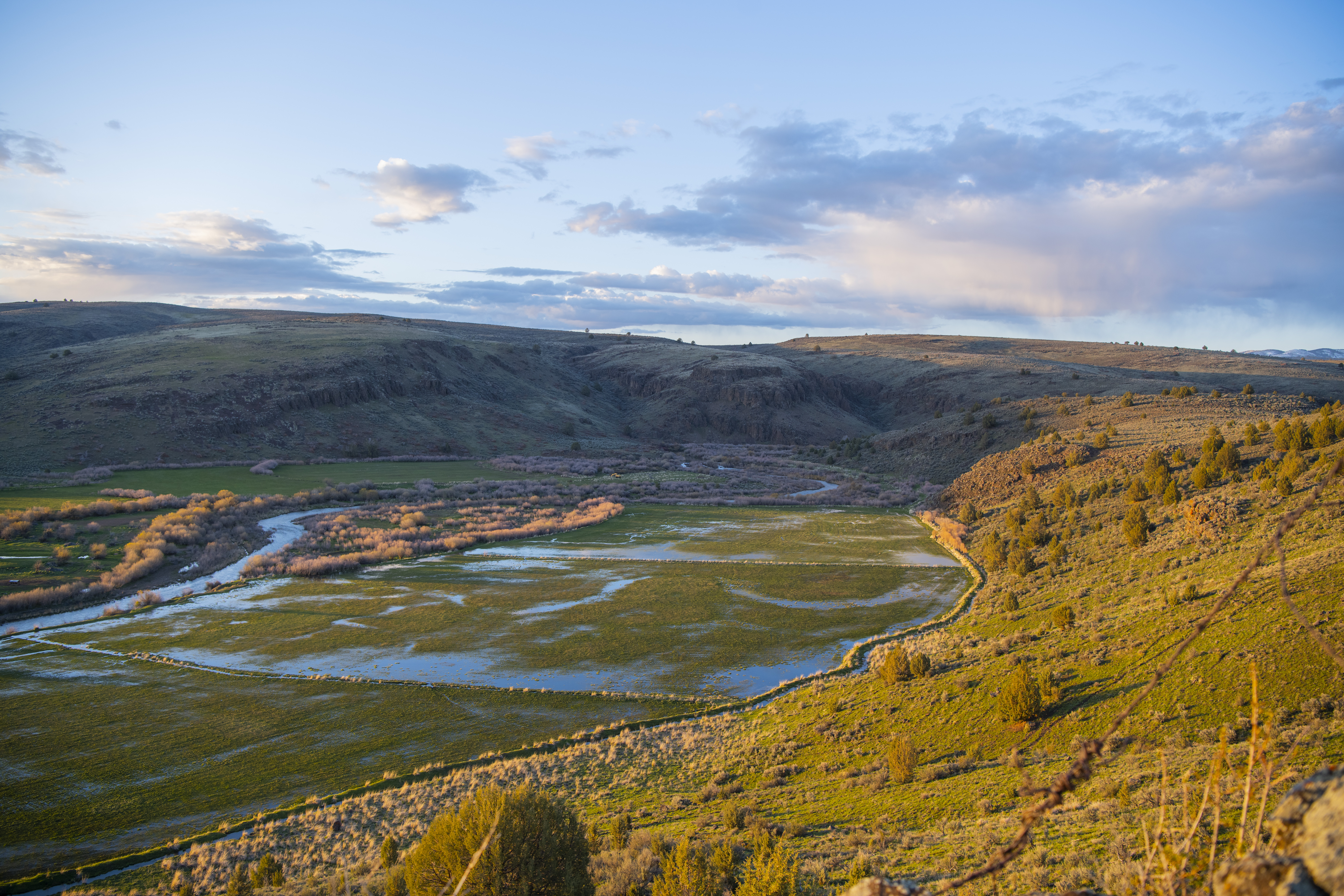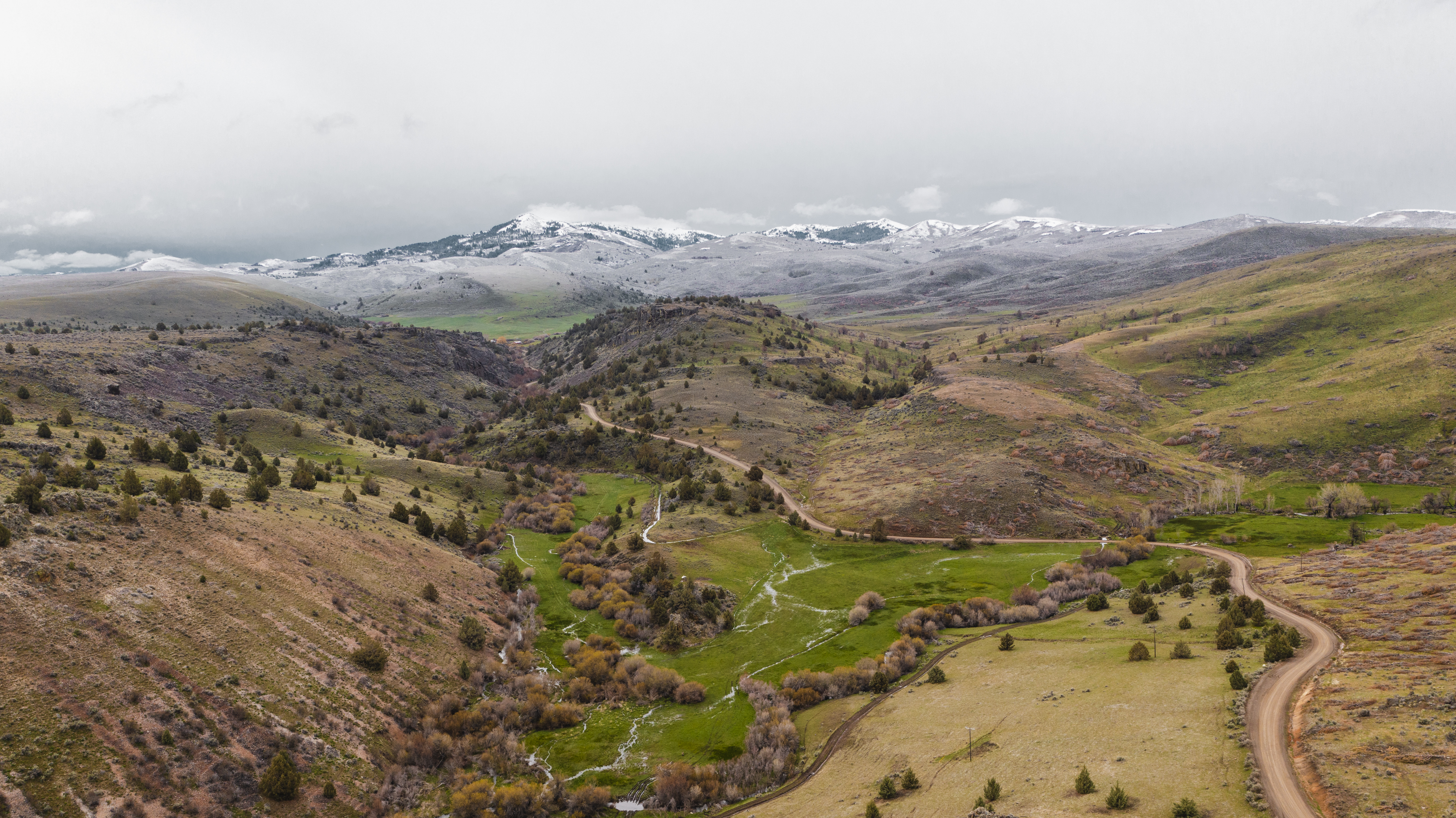 Equally as expansive and beautiful, the Oregon Ranches’ 5,100+ deeded acres lay 50 miles west in Rome, Oregon with the historic Pillars of Rome serving as its entrance. 1000 feet lower in elevation from Idaho’s low country, the dry, desert climate is ideal for winter ranges. Crooked Creek supplies water across 200+/- irrigated acres that produce about five tons an acre of hay in three cuts, with the fourth cut being left for October’s first arrival of cows. Mule deer, ducks, geese, and a host of other animals frequent this oasis in the desert that somehow seems to have more water leave the property than enters.