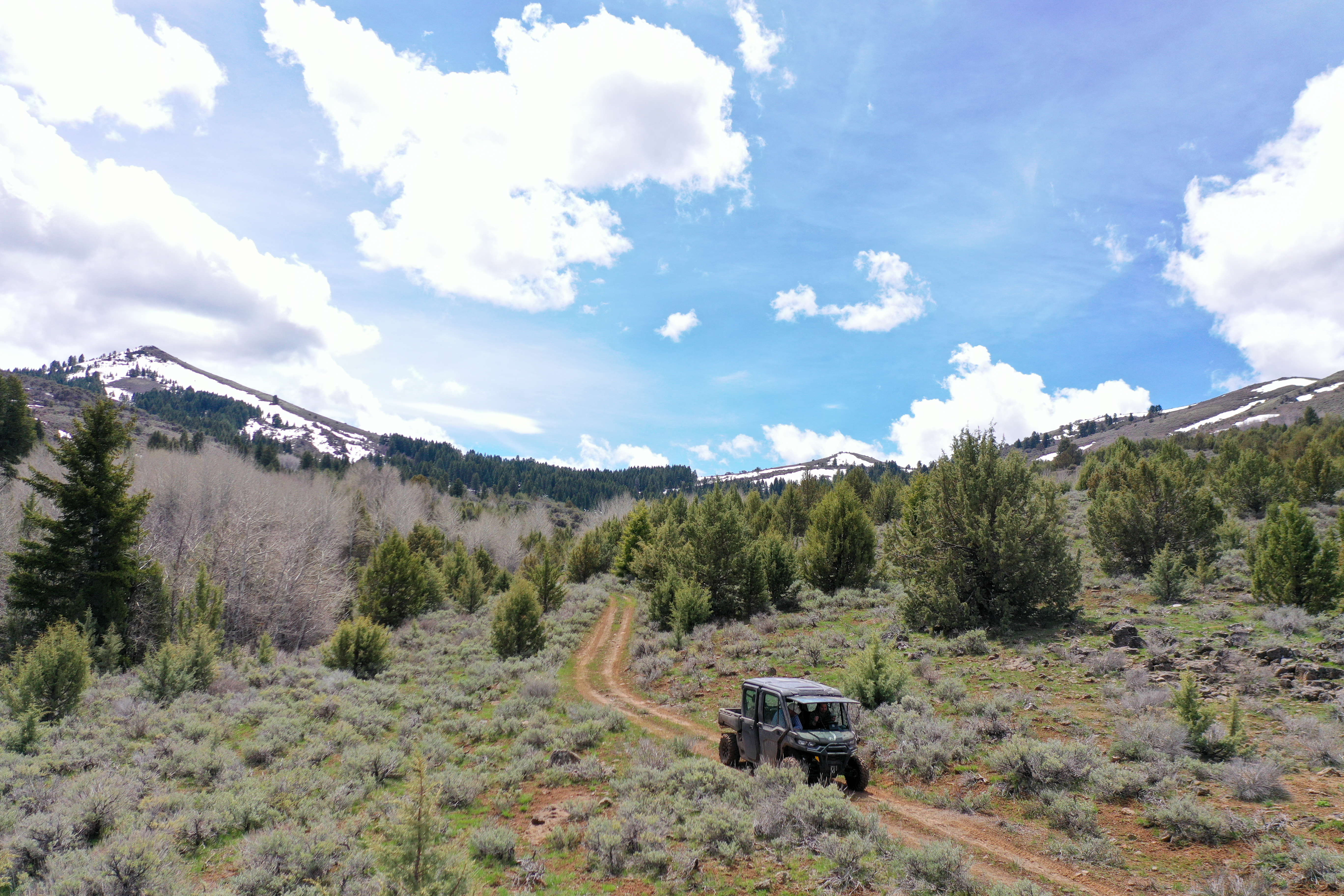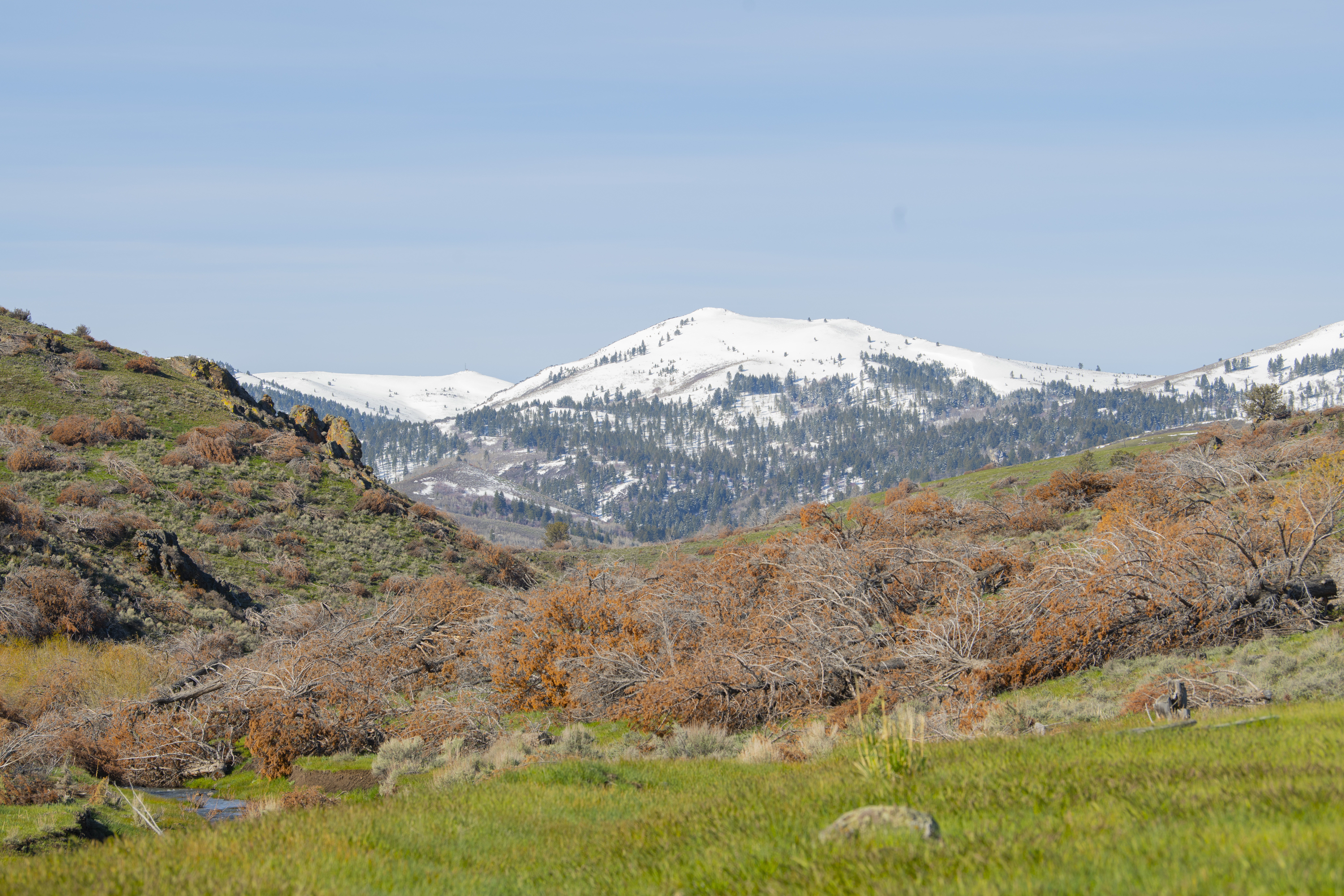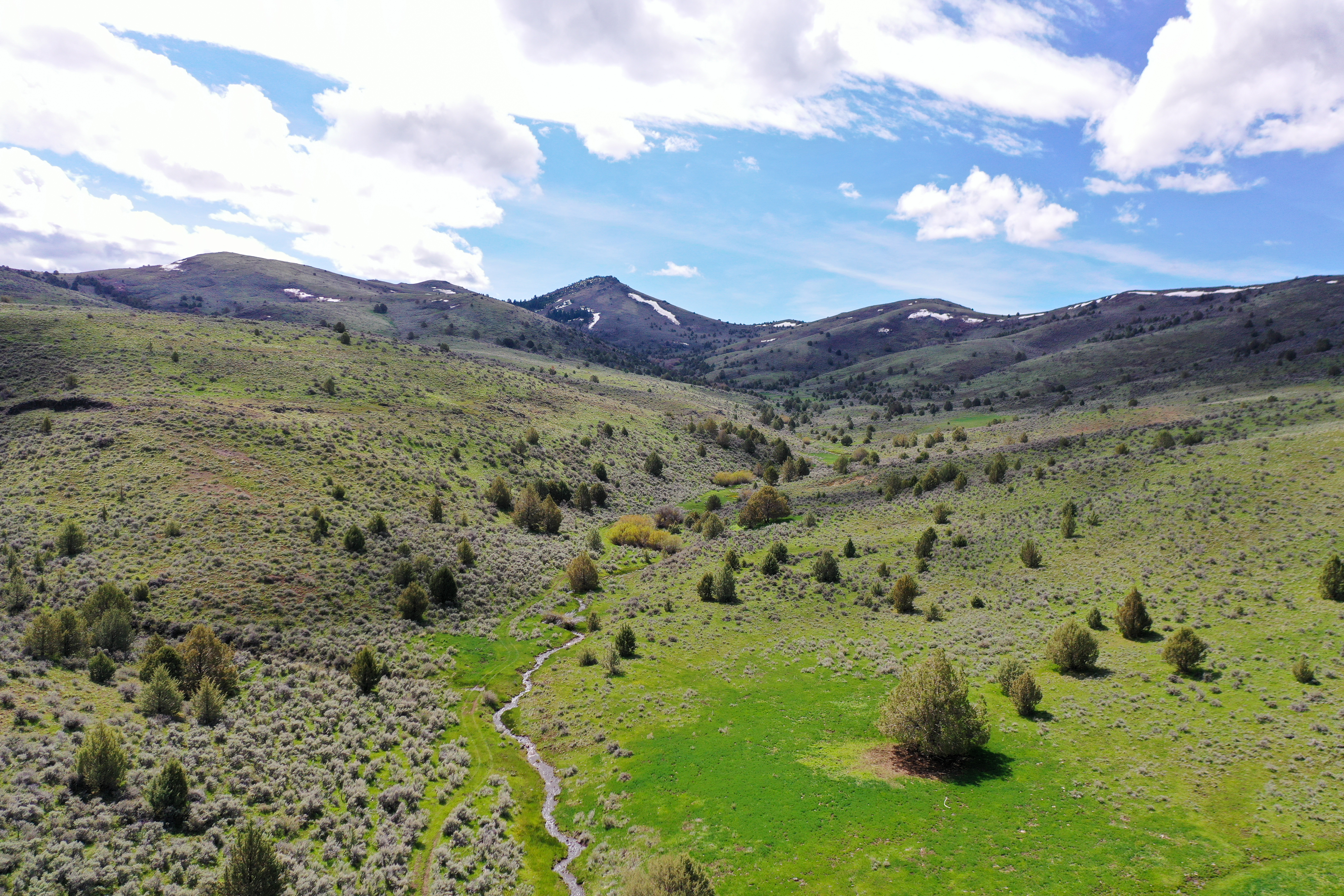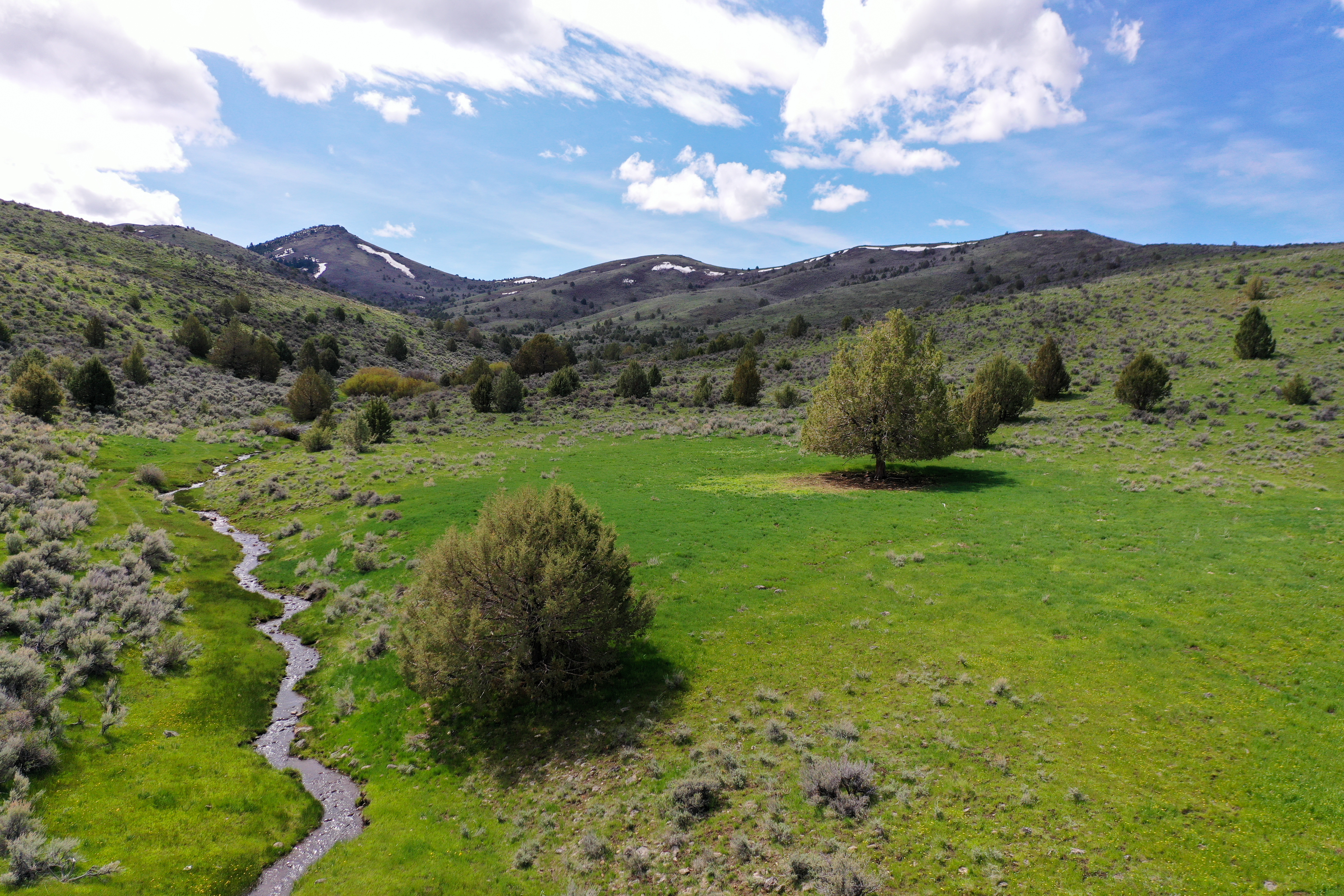 The thoughtfully assembled and expertly managed 10,838+/- deeded acres are connected and extended by over 30,000 acres of leased grazing ground, spreading across three distinct climates and providing ample water, hay, year-round grazing, and recreation. The Idaho ranch, comprised of just over 5,700 deeded acres, sits just over the border from Jordan Valley, Oregon in the Owyhee Mountain Range, bracketed by the Silver City Range and South Mountain. A majority of the irrigated ground lies in the low country along Jordan Creek under the cliffs of the Owyhee Canyons and serves for both hay production and spring and fall grazing. Following the creeks up South Mountain, deeded and leased ground climb over 2000’ to the timber ridges and draws of South Mountain’s high country. The high country’s meadows and cooler temperatures make for excellent summer grazing. When the cooler fall temperatures push the cows back down, the focus turns to trophy elk hunting in Idaho’s controlled Unit 40, which is also home to impressive mule deer, antelope and mountain lion populations. Landowner permits and tags are available in both states, allowing consistent hunting opportunities.