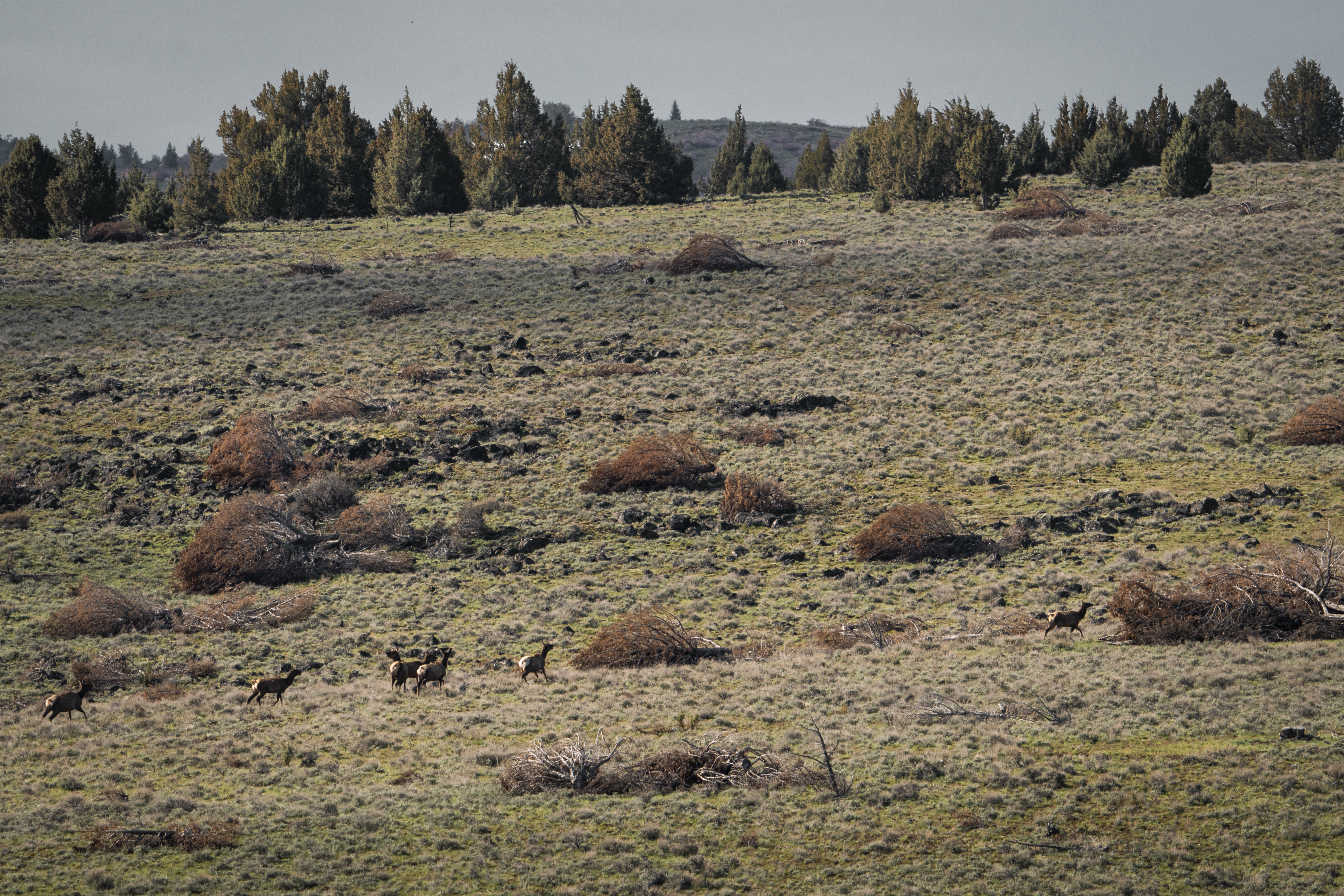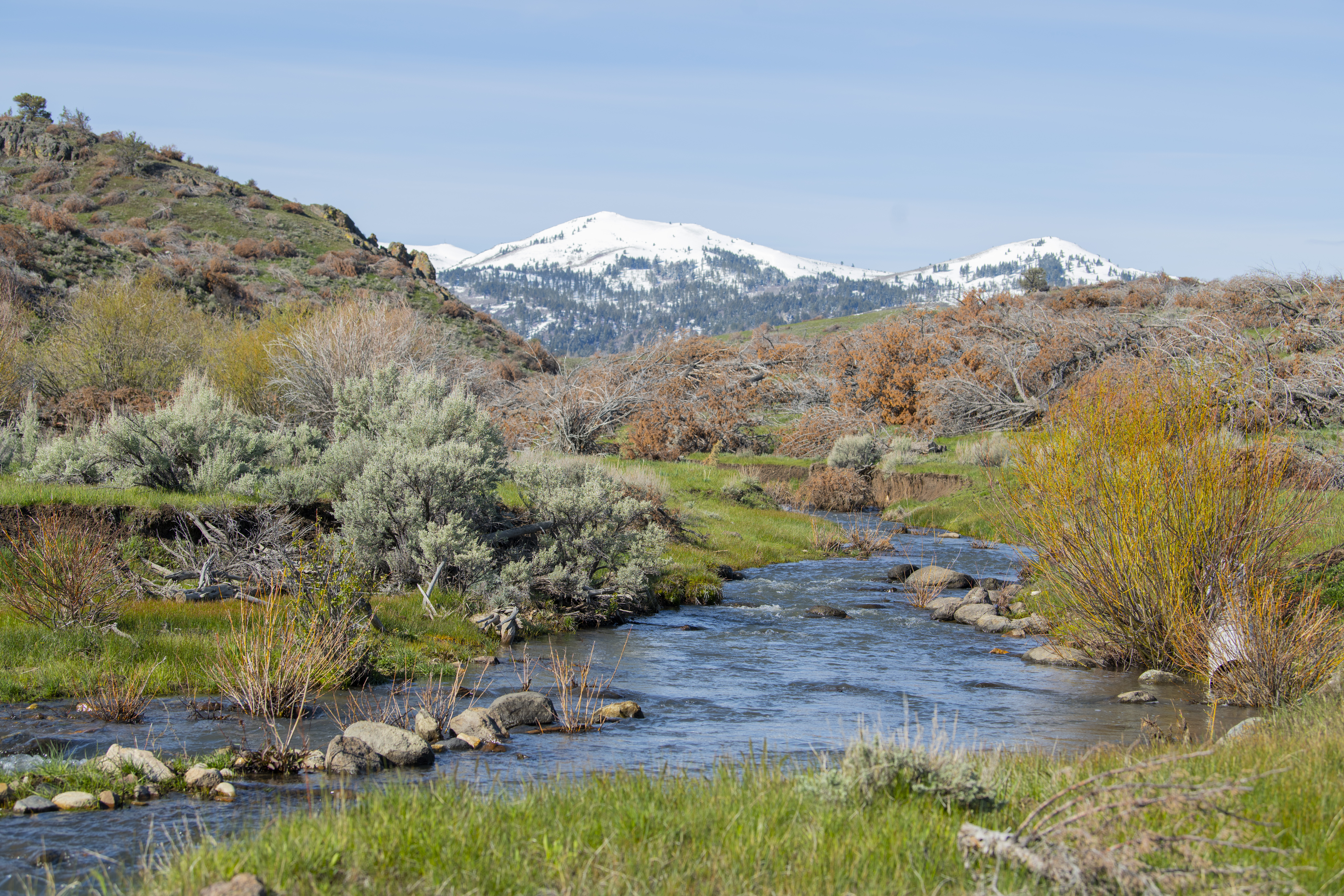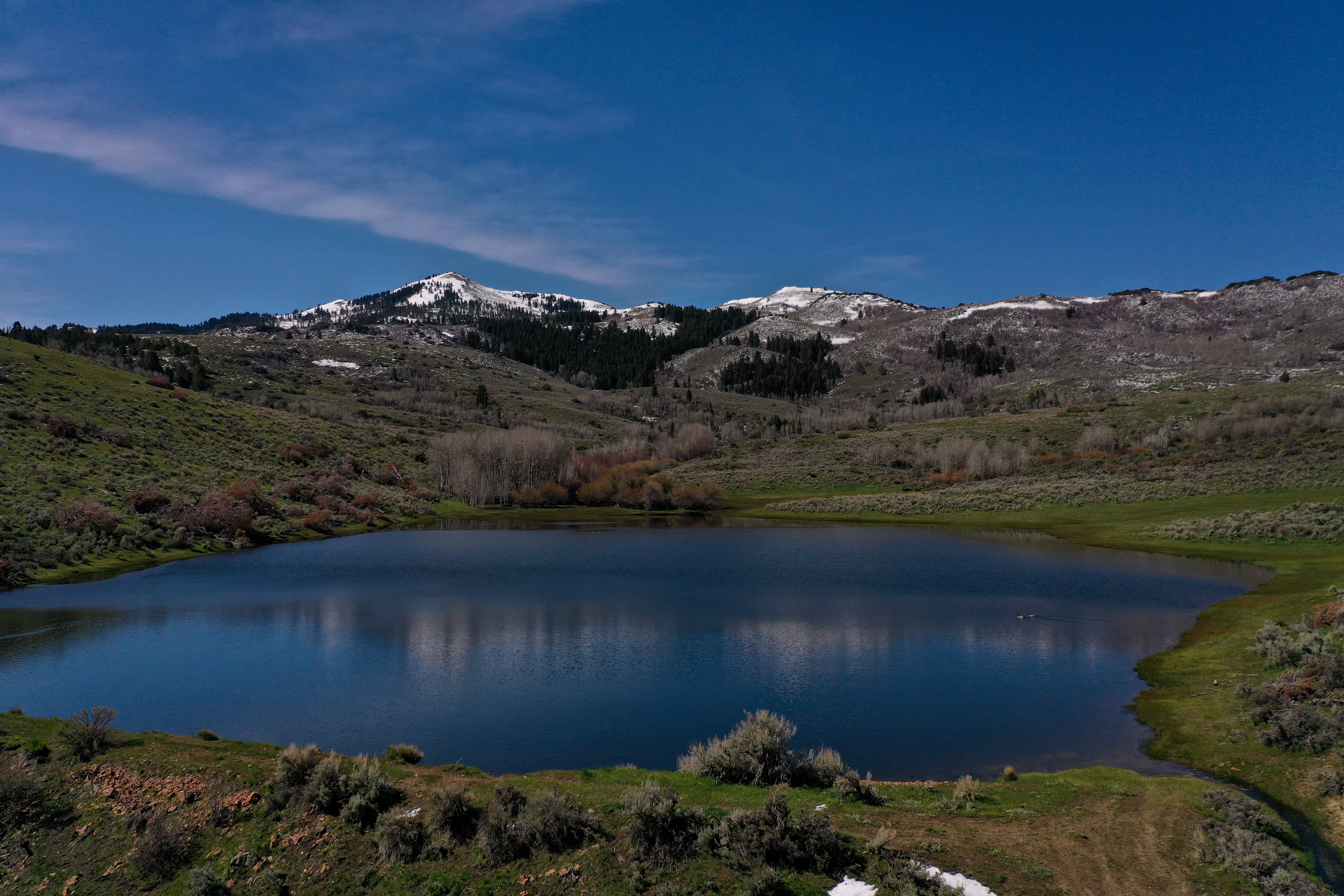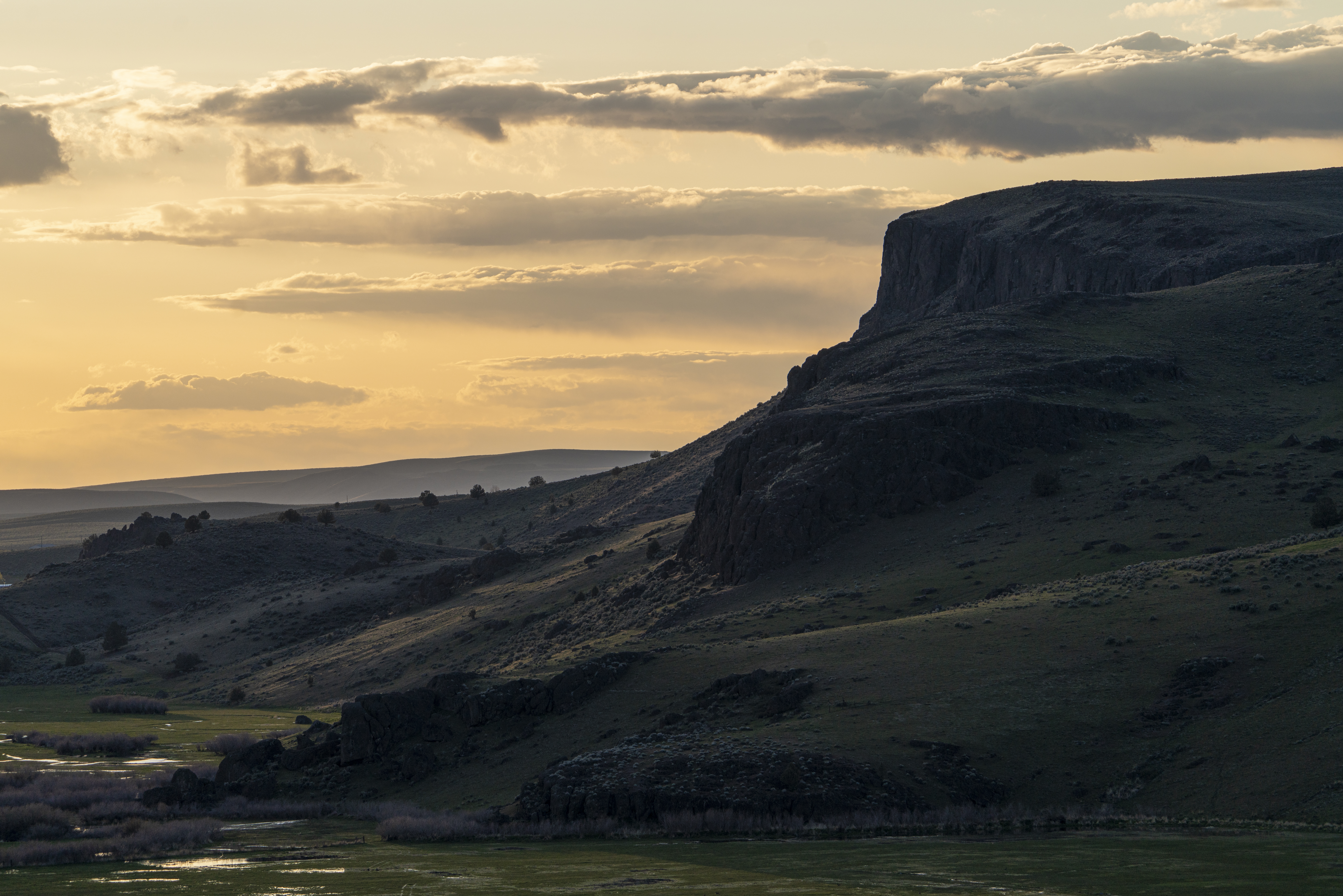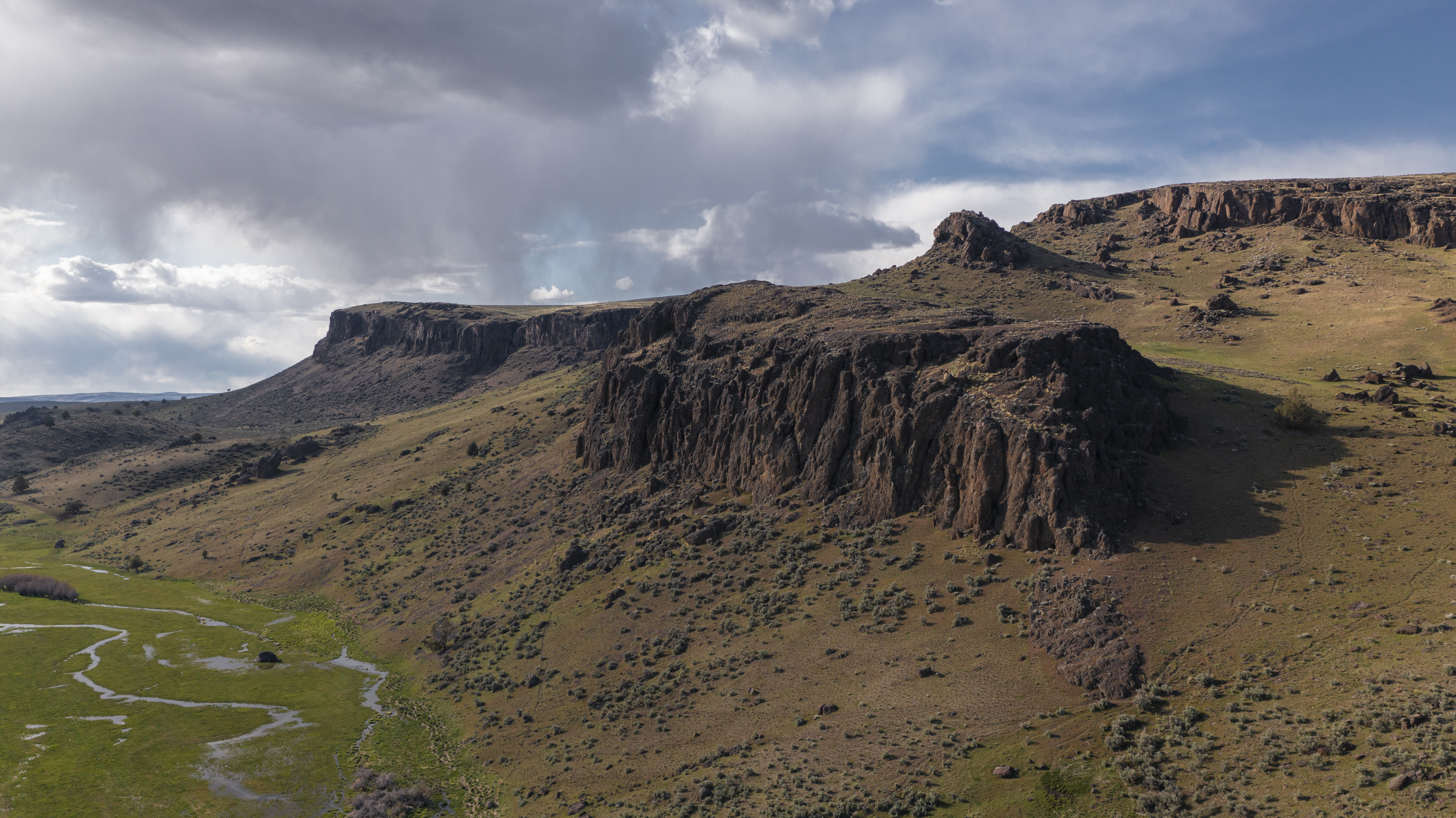 The thoughtfully assembled and expertly managed 10,838+/- deeded acres are connected and extended by over 30,000 acres of leased grazing ground, spreading across three distinct climates and providing ample water, hay, year-round grazing, and recreation. The Idaho ranch, comprised of just over 5,700 deeded acres, sits just over the border from Jordan Valley, Oregon in the Owyhee Mountain Range, bracketed by the Silver City Range and South Mountain. A majority of the irrigated ground lies in the low country along Jordan Creek under the cliffs of the Owyhee Canyons and serves for both hay production and spring and fall grazing. Following the creeks up South Mountain, deeded and leased ground climb over 2000’ to the timber ridges and draws of South Mountain’s high country. The high country’s meadows and cooler temperatures make for excellent summer grazing. When the cooler fall temperatures push the cows back down, the focus turns to trophy elk hunting in Idaho’s controlled Unit 40, which is also home to impressive mule deer, antelope and mountain lion populations. Landowner permits and tags are available in both states, allowing consistent hunting opportunities.