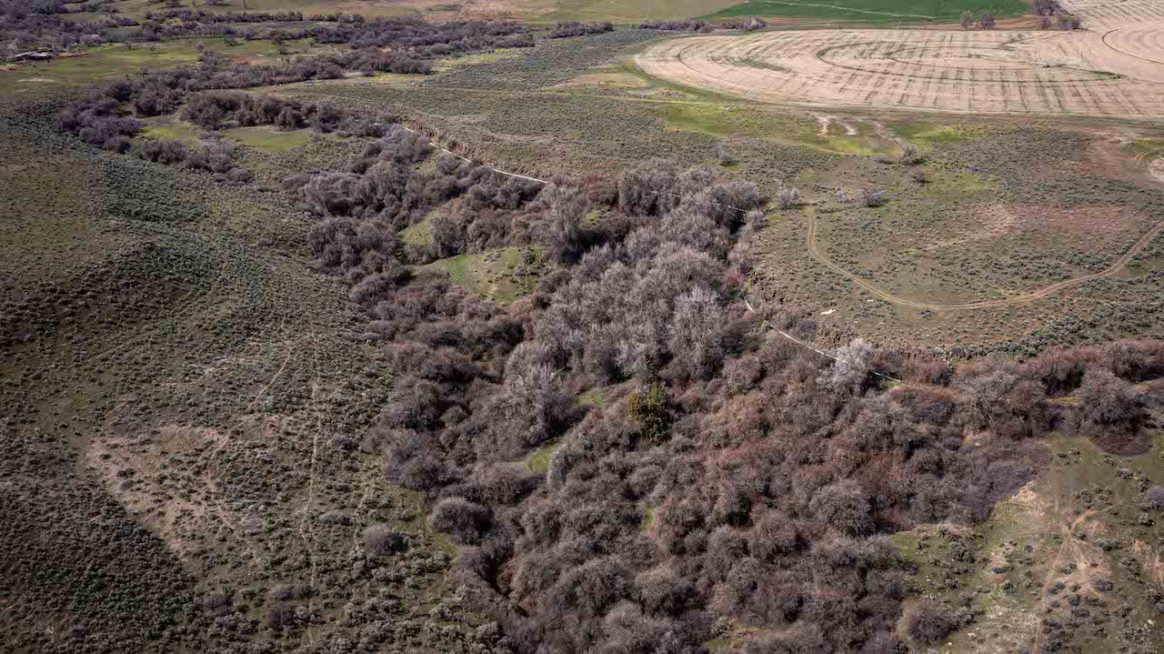 Located off Highway 30, halfway between Hagerman and Buhl, this secluded property offers private road access, tillable acreage, water rights, brushy draws, a creek, ponds, and panoramic views of the Snake River Canyon. Comprised of four tax parcels, this property would make an awesome family compound with several choice building sites overlooking the Snake River canyon, or it could be developed by splitting the 103 +/- acres zoned rural residential lying along the canyon rim into small acreage ranchettes or single family homes on one acre lots. The property is fully fenced with some cross-fencing and has a livestock handling facility. A Zimmatic 7-tower pivot irrigates the tillable acres while hand lines water the grass pasture. There is a drilled well with several frost-free faucets, and electrical service is on the property in multiple locations. A recently remodeled stone shelter provides a dry place to get out of the weather and warm up on those cool spring days. The brushy draws are made of Russian olive and other woody brush species, which provide ample wildlife habitat. Water is plentiful, with a creek flowing year-round through a cattail-filled slough. Wildlife is abundant. The day I toured the property, I saw deer tracks on all the trails and jumped several coveys of quail and even a few mallards. This truly is a unique property. Call the Land Specialist today to schedule your private tour!