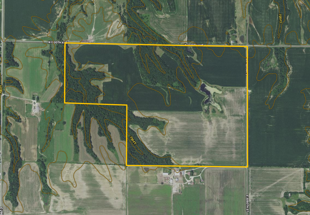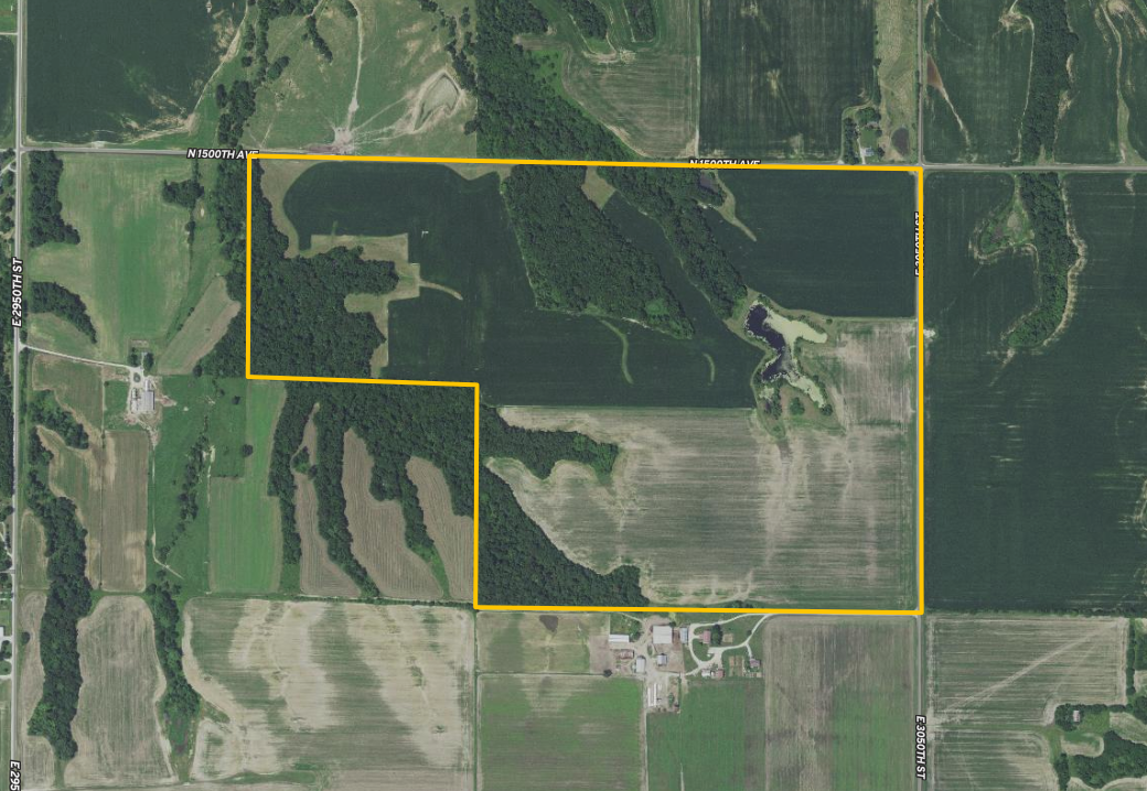 Located between Clayton and Kellerville is this combination of tillable and timber tract that offers highly productive tillable farm ground and premier deer hunting opportunities. This property has access along the north side of the property from County Road 1500 North and all along the east side of the property from County Road 3050 East. Multiple access points allow you to easily access various stand locations and efficiently harvest the crop in the fall. There are 137 acres of highly productive tillable farm ground, which is level to gently rolling and has an average PI of 117. Three blocks of timber are scattered across this property, offering several different stand locations or groups of deer to hunt each morning or evening. The timber is gently rolling with several great food plot locations on the western side of the property. There is also a long skinny finger of tillable that would make a great food plot area with easy access from the north and south. A three-acre pond on the east-central part of the farm is stocked and offers great fishing and kayaking. Looking to build a home? A great building location overlooks the pond on the east side, allows ample room to build your dream home, shop, and about anything else you can dream up, all in a secluded location. This is a must-see property if you are in the market for a combination farm that offers highly productive tillable farm ground and excellent deer hunting. Call land specialist Tyler Sellens or Marlee Schultz today for more information or to schedule a private showing.