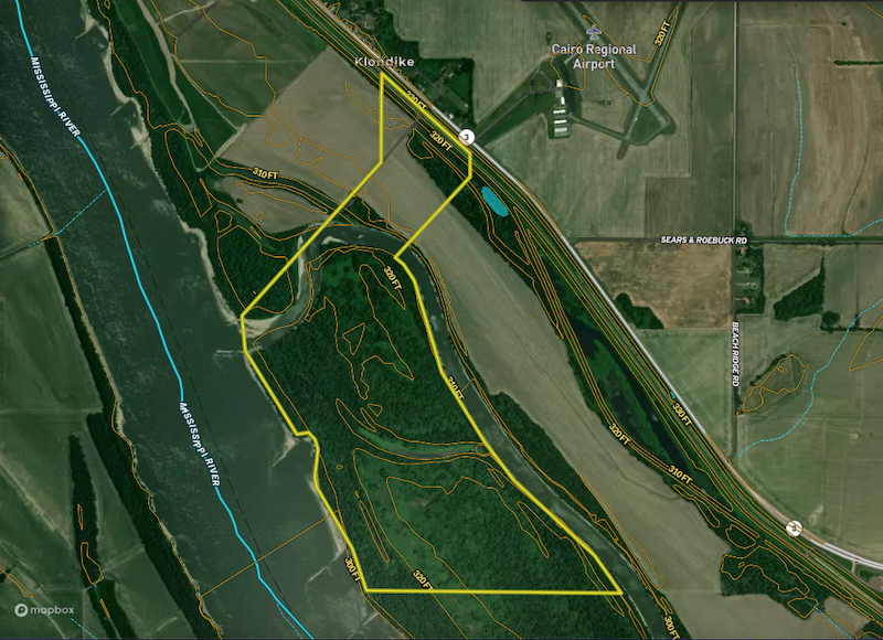 This 518.48± acre island tract along the Mississippi River in Alexander County, Illinois presents a rare opportunity to own part of a large river island with strong hunting potential and established income streams. Properties of this size and location along one of the nation’s most iconic river systems seldom become available, making this a unique investment for outdoor enthusiasts and land investors alike. The island features approximately 4,600 feet of frontage along the Mississippi River and an additional 9,600 feet of river channel frontage, creating exceptional water access and diverse wildlife habitat. The landscape is primarily timbered with scattered open areas, along with oxbows and sloughs that enhance waterfowl habitat and seasonal wildlife activity. Approximately 23± acres are currently in tillable production, generating about $4,700 annually in income. In addition to the farming revenue, the current owner leases the property for hunting, producing $10,000 annually for waterfowl hunting and $10,000 annually for deer and turkey hunting, providing immediate return potential. The island offers excellent opportunities for waterfowl, deer, and turkey hunting. Dense bedding and security cover throughout the timber help hold wildlife, while the surrounding river corridors and wetland features support consistent waterfowl activity. On the mainland side, a major rut travel corridor enhances the property’s whitetail potential and adds to its overall huntability. Access is provided by a 30-foot easement leading to the best crossing location onto the island, allowing entry while maintaining the privacy and seclusion that island properties are known for. For buyers seeking a unique recreational property with income potential, strong hunting opportunities, and a one-of-a-kind setting along the Mississippi River, this Alexander County island tract offers an exceptional ownership opportunity.