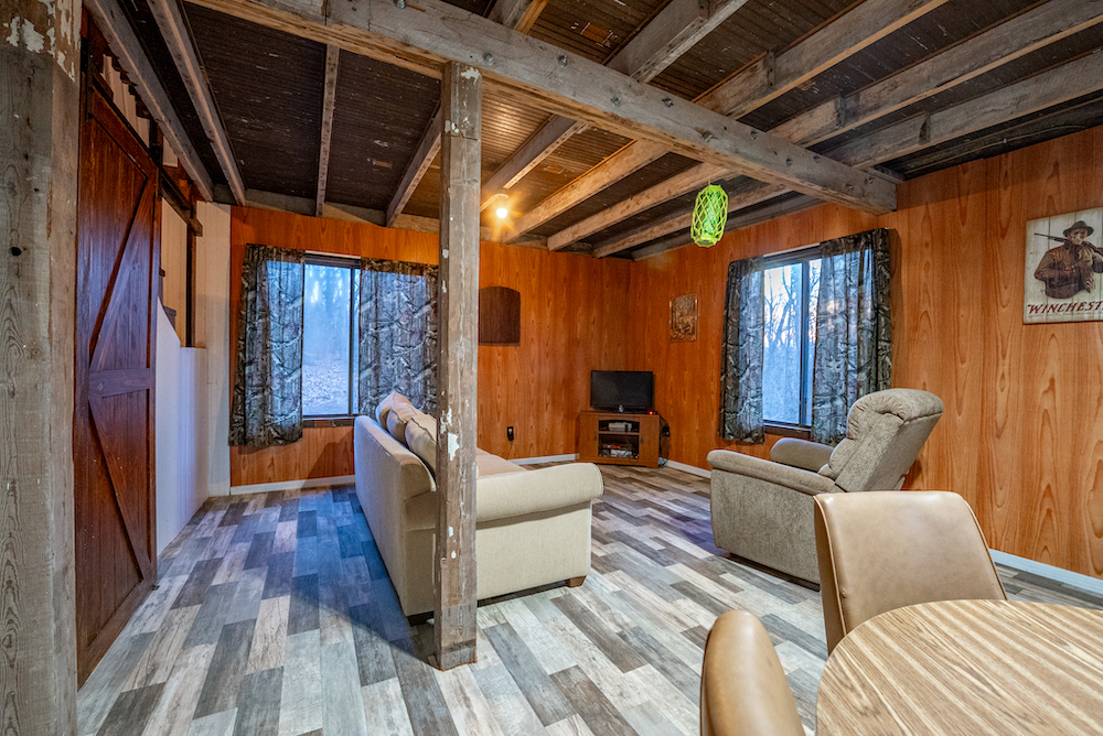 - Furnished off-grid hunting cabin with loft and wood stove