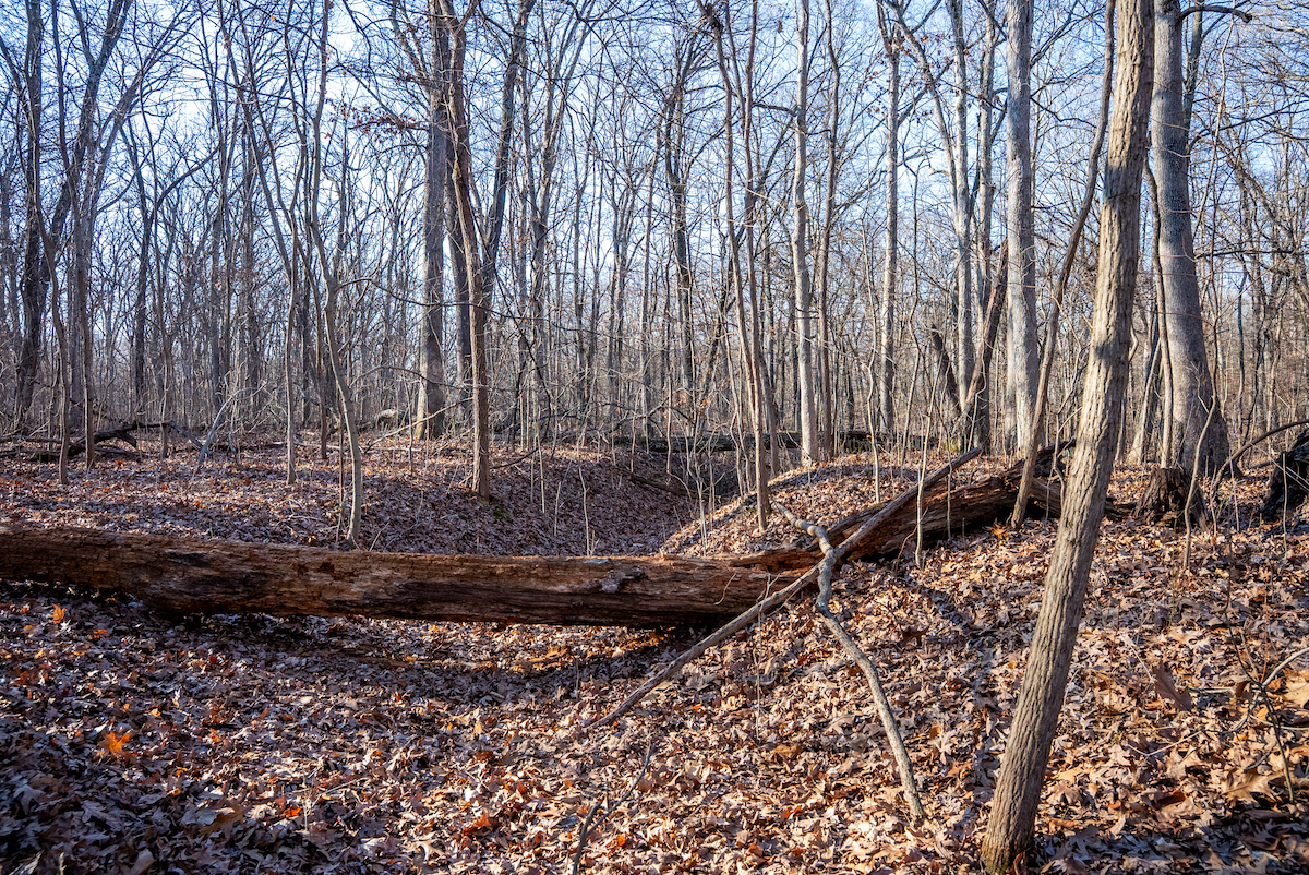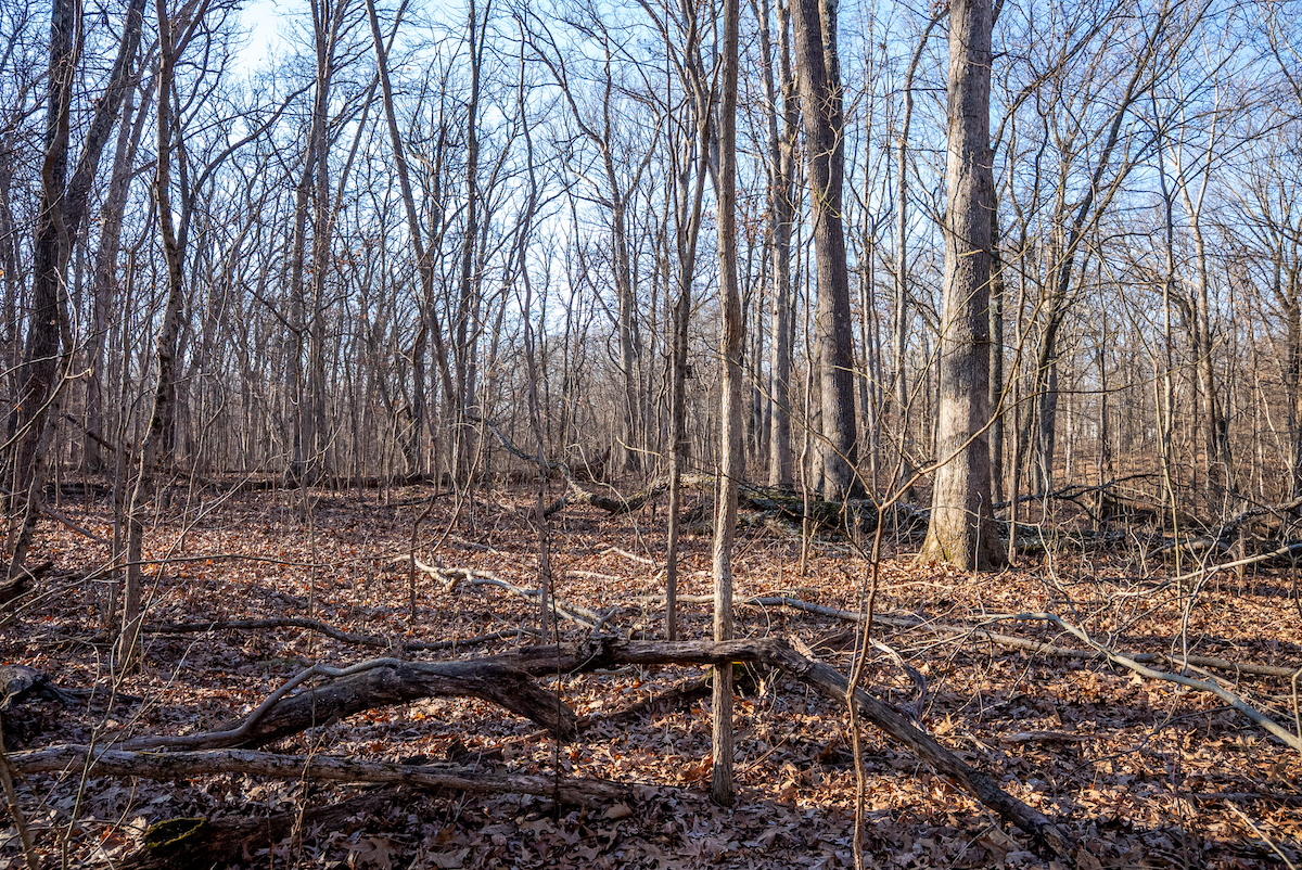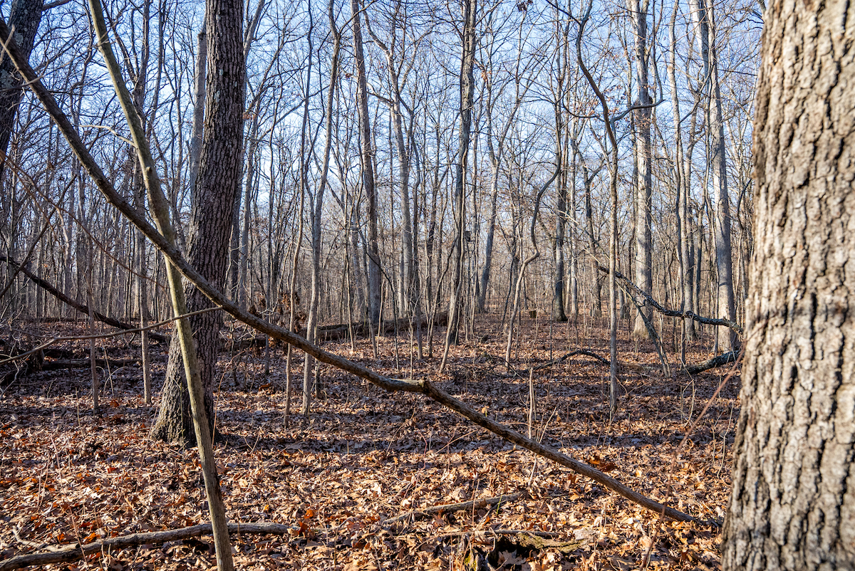The timber stand includes a mix of mature hardwoods, including white oak and black oak. Depending on management goals and a professional evaluation, a selective harvest may be an option to improve habitat conditions or offset ownership costs.