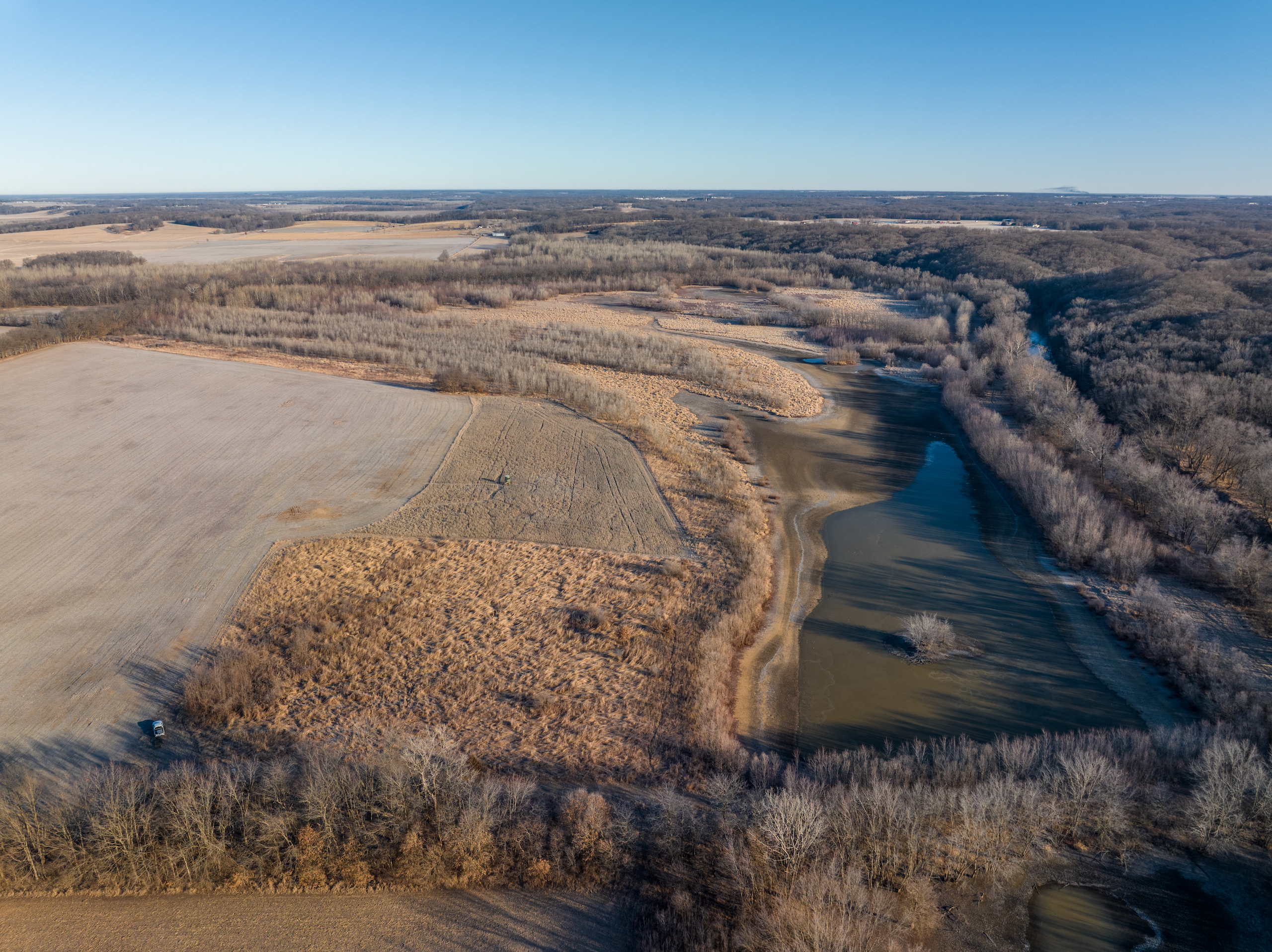 PRICE REDUCED! Located along the banks of the Lamoine River on the Brown County and Schuyler County line is this hidden gem. Whether you’re a diehard deer hunter or an avid waterfowl hunter, this property has a little bit of everything to offer. There is a new 5-acre bean plot planted on the southwest corner of the property that is going to be a dynamite late-season plot with bedding area to the north and south of the plot and easy access to a box blind location overlooking the plot. An internal trail allows access to all along the east and north sides of the property for easy stand access. Head down the trail on the south end of the property across the dam, where there is an inline water control structure for controlling water levels in the main impoundment. There are right around 20 acres that can be flooded on an average year, and you can pull the water down using the control structure to plant corn, millet, or any other food plots you desire for waterfowl or deer and flood for fall hunts. There is also a second water control structure on the east side for additional water control. These impoundments located along the Lamoine River can offer great duck and goose hunting during the fall. Not only can the waterfowl hunting be action-packed, but the deer hunting on this property also heats up, especially during the rut. Being located along the Lamoine River serves as a natural funnel for deer up and down the river. You can access the property using the established trails, or you could drop a small boat upriver a mile and float down the river entirely undetected for some great internal stand locations. During the early and mid-season, this farm is essentially a big bedding area with thick cover throughout much of the farm. The river serves as a travel corridor but do not underestimate the number of deer that cross back and forth from side to side, especially during the rut. Farms like this are notorious for mature bucks pushing hot does into these thick bottoms. This farm has a lot of upside potential and will get better and better with time with the ever-changing habitat and the addition of the new food plot. If you are in the market for a quality waterfowl or deer hunting farm in the heart of the Midwest, give the listing land specialist a call today for more information or to schedule a private showing.