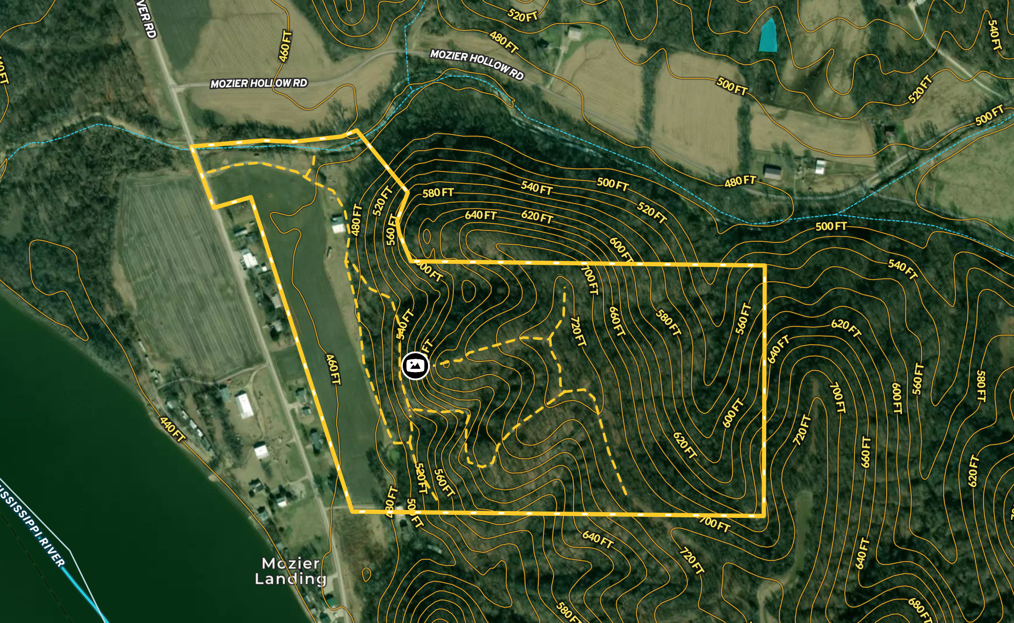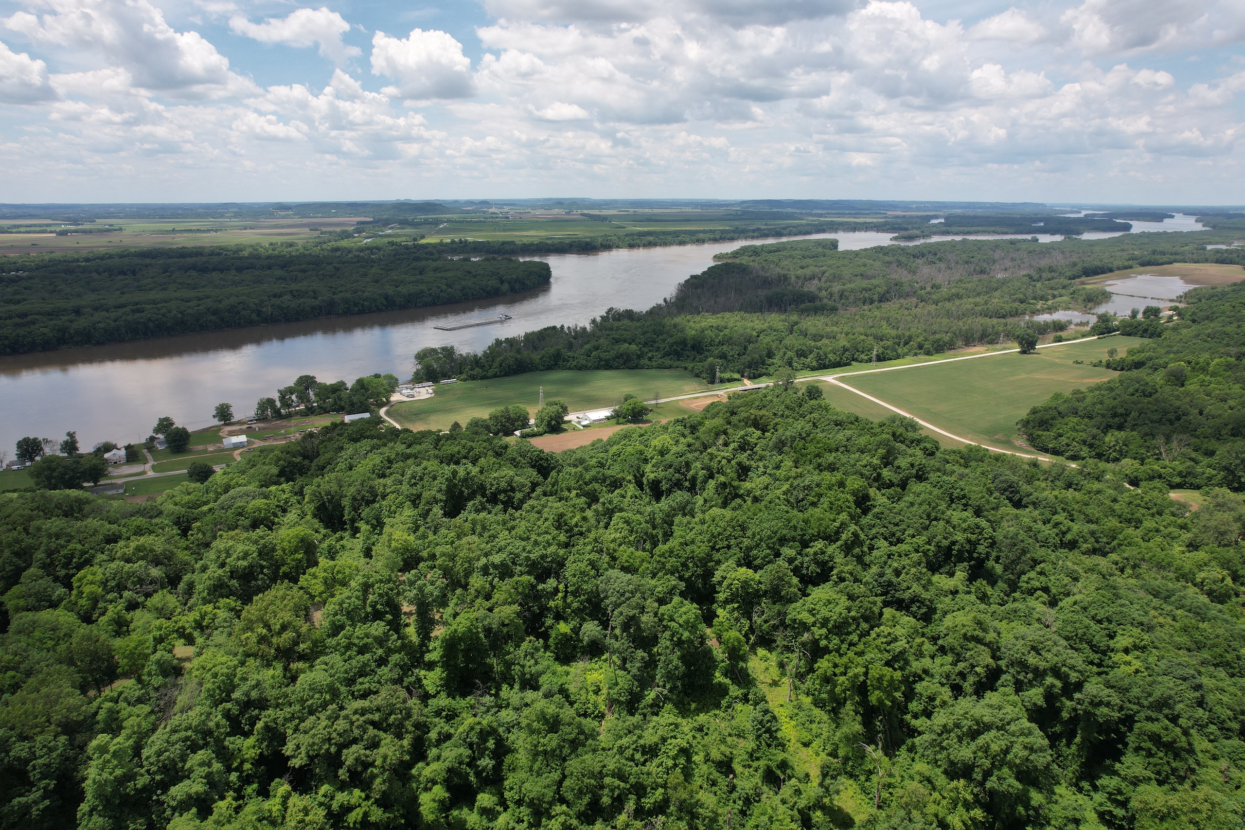 Here is your opportunity to own an extremely unique piece of land. This property has something for everyone. Through the gated entrance, you are greeted with approximately 11 acres of row crops and another 5 +/- acres of brome and fescue grasses. This area was once all pasture land for the horses that called this property home. The row crop now provides income and a great food source for the deer and turkey. An old barn sits at the base of the bluff. The building needs repair but is a great resource for storage. Calhoun Rural Water is along the property frontage, and power is on the land. Tucked against the massive river bluff are several excellent homesites, cabins, and camping locations. The current owner of over 40 years has made it his life’s mission to tame this land that many deemed untamable. It is very unlikely you will be able to find a property with topography such as this one that has a road system so well designed and developed that it allows you to drive your vehicle to the top of the bluff in nearly any weather. The creek along the northwest portion of the land provided the impressive amount of rock used to coat the roads. The owner installed custom-made drainpipes and overflow structures to control the heavy spring rains. The views do not disappoint once you are on top of what seems like the world. Many hours could be spent watching boats and barges work their way up and down the mighty Mississippi. This area would be an extremely cool off-grid camping or cabin location. A nice-sized area has been cleared for a food plot and provides some excellent stand options. The surrounding land is made up of big timber tracts with intermingled row crop acres. This is a prime whitetail and turkey habitat. The property has many options with the combination of flat land and accessible river bluff. Don’t miss the opportunity. Call today for a private tour.