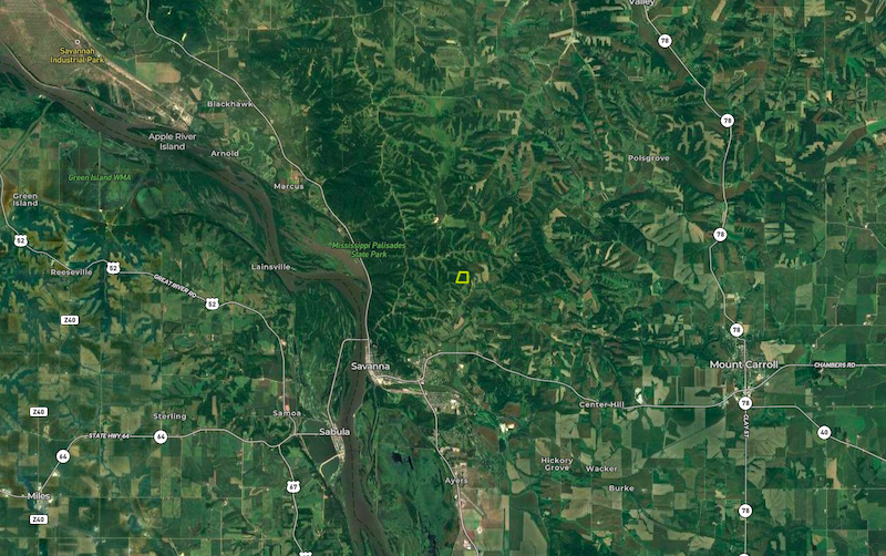 "Do not enter the lane without a real estate agent and a scheduled appointment." Situated amongst the rolling hills and fertile crop grounds of Carroll County, just north of Savanna, lies a property that has tons of appeal. Surrounded by a blend of timber and agriculture, this property is a haven for recreation and hunting enthusiasts alike. As you enter the property, a welcoming lane leads you to the top of the hill, providing seamless access to the heart of this versatile parcel. Here, perched atop the hill, stands a barn—a perfect spot for tractors, utility vehicles, and equipment. A rare opportunity for a recreational property equipped with power, water well, and RV hook-ups. Adding to the allure is a rustic hunting cabin, waiting to be revitalized. A well-laid trail system meanders through the property, offering exploration and potential for expansion to unveil additional routes. On the west side, a lane guides you to a lower food plot area, bordered by tall pines that enhance the property's natural charm. Within the property's interior, numerous spots have been cleared, presenting prime opportunities for additional food plots for wildlife and hunting opportunities. From the barn and home base, multiple trails lead you to the eastern side, boasting a substantial food plot nestled alongside a bordering agricultural field. This area offers multiple stand locations, with a platform and hardtop blind already in place within the food plot. Fruit trees scattered throughout add a touch of natural beauty and diversity. With a rich hunting history and endless potential, this property provides privacy, surrounded by the serenity of timber and agriculture. Yet, its proximity to downtown Savanna, the majestic Mississippi River, and the plethora of offerings in the area ensures convenience and accessibility to all that this charming region has to offer.