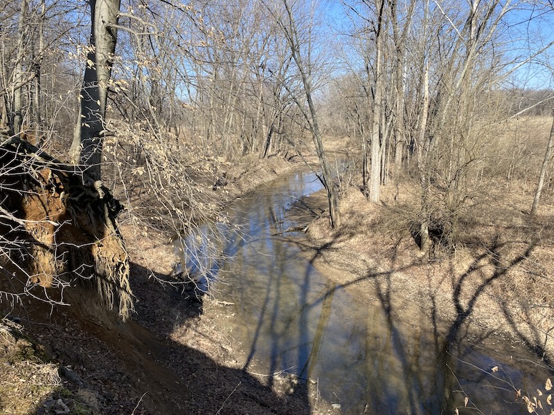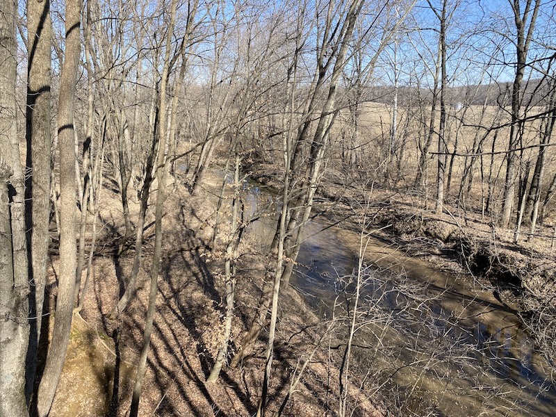 Two natural water sources enhance the property: a small timber pond near the north end and Mill Creek forming the eastern boundary. These provide excellent water access for both livestock and wildlife. The property also offers strong recreational potential with abundant deer and turkey activity, multiple food plot locations, and natural travel corridors created by the creek and adjoining woodlots.