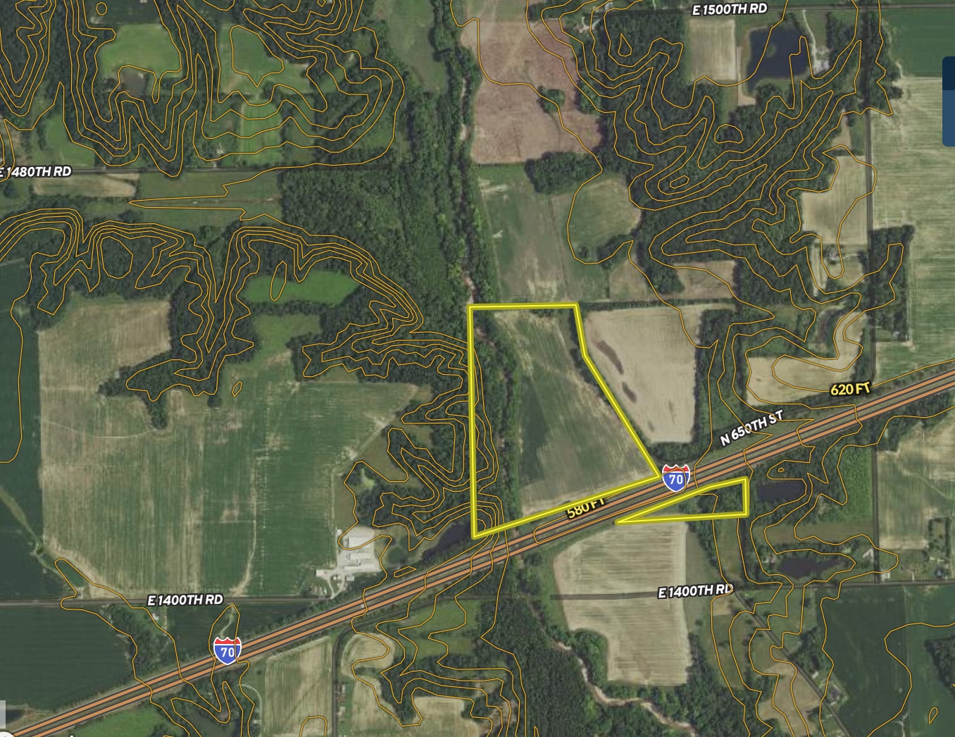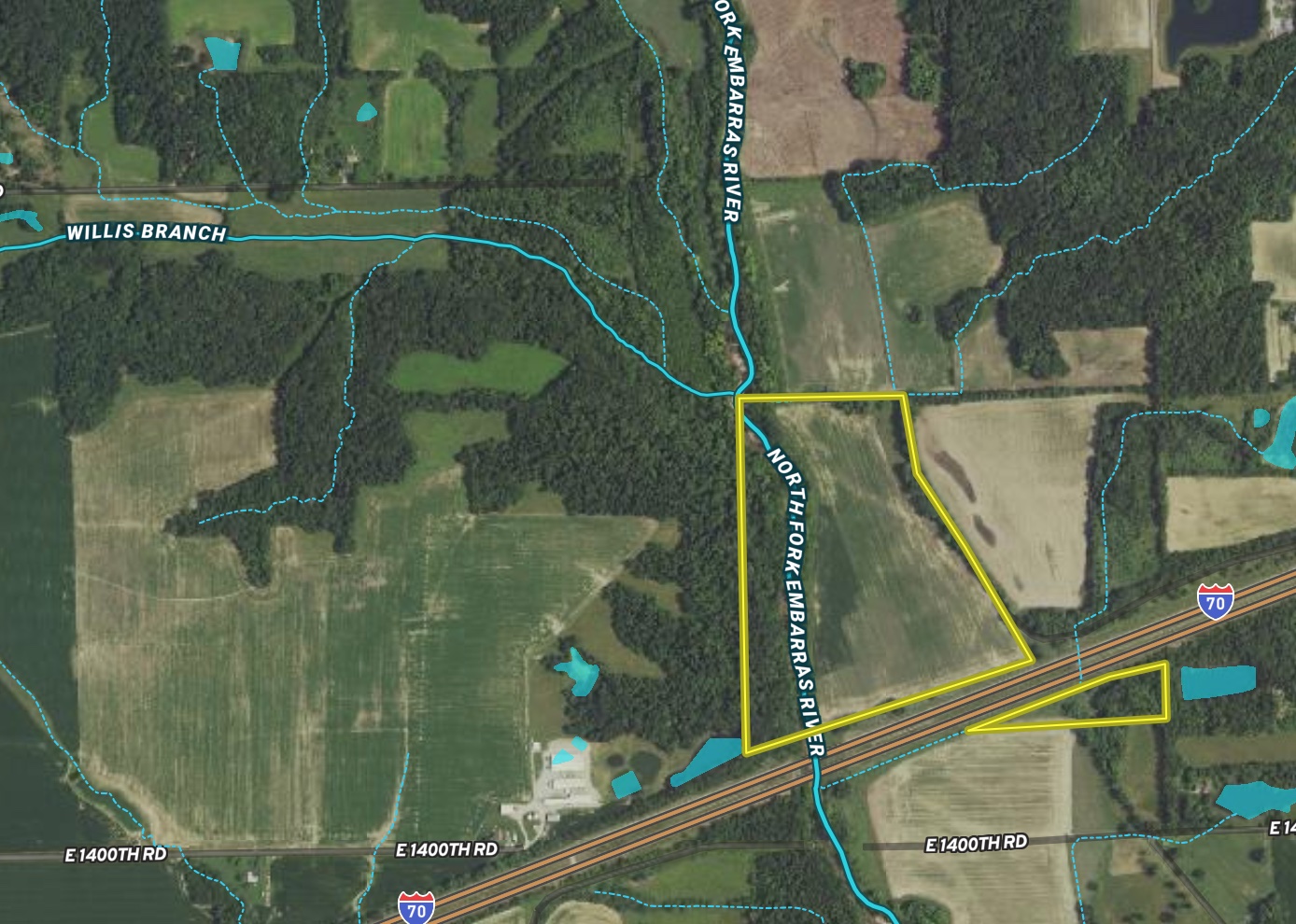 The majority of this property is located on the north side of I-70, with roughly 5 acres on the south side. There are approximately 15 acres of mature rolling hardwoods on the west side of the East Fork of the Embarras River. Most of the trees are white oak, red oak, hickory, maple, and walnut. This area had a significant amount of deer and turkey sign on it. The rolling ridgetops that run along the Embarras make a perfect location for birds to roost. There are two CRP contracts totaling 5.24 acres. The first is a filter border strip along the west side of the tillable; the other is in the northeast corner of the property. The CRP has an annual payment of $1,266 and will expire in 2029 and 2025. The remainder of the north side is a little over 31 acres of tillable with an average PI of 127. The tillable is farmed on a 50/50 agreement with a local producer. An additional 5 acres on the south side of I-70 is mostly all woods with a small strip of tillable. This is a very nice farm if someone wants to hunt deer and turkey and also have the income to offset some expenses. This farm would also qualify for landowner tags, so you would be guaranteed deer and turkey tags.