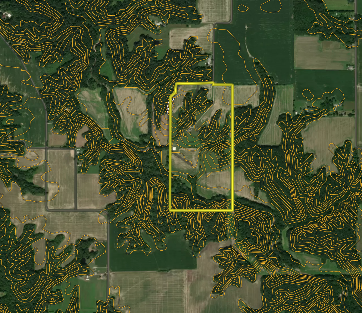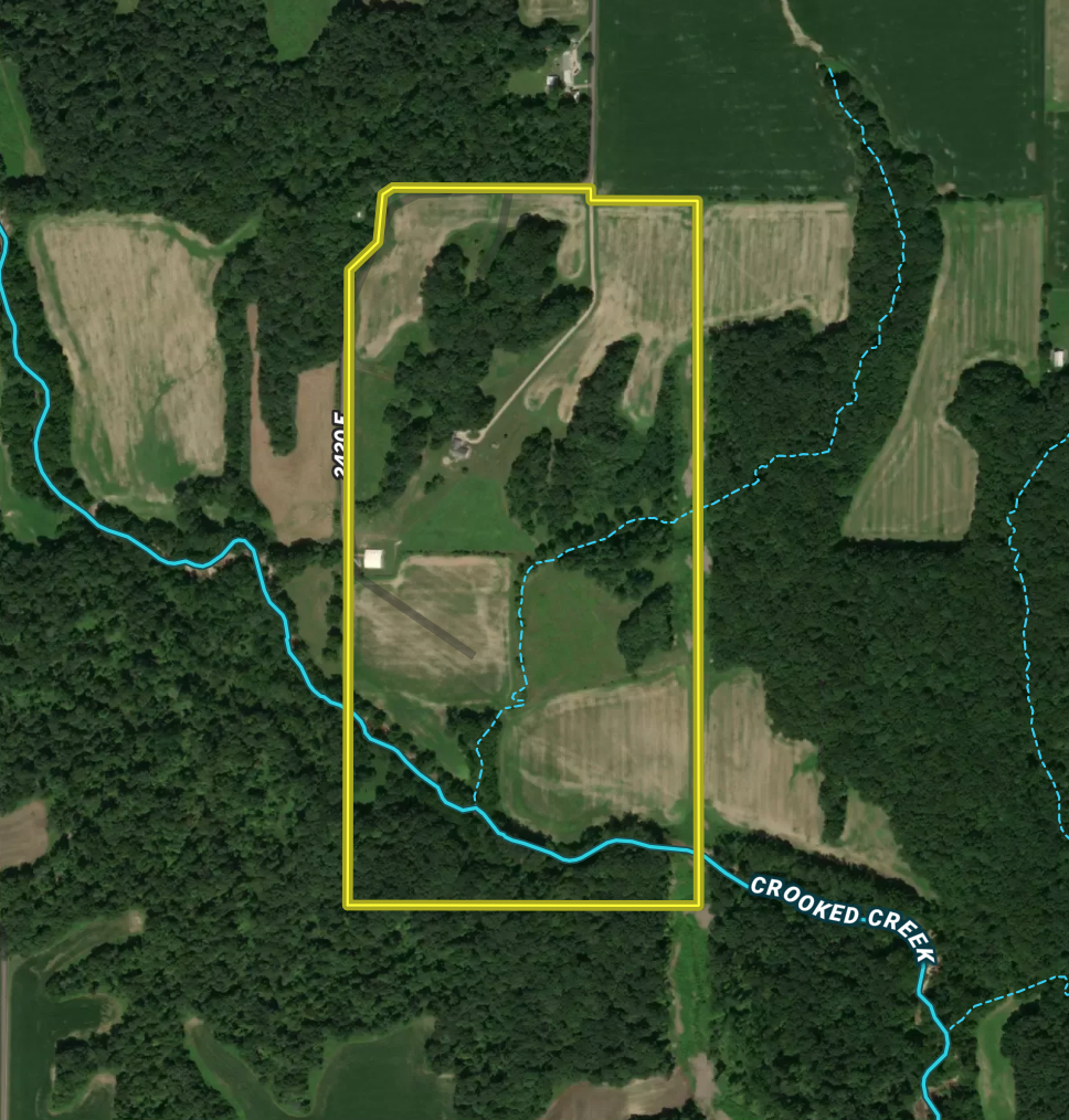 - The property has a mixture of row crop, hay fields, and rolling hardwoods