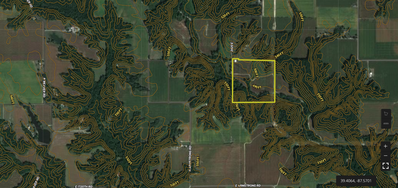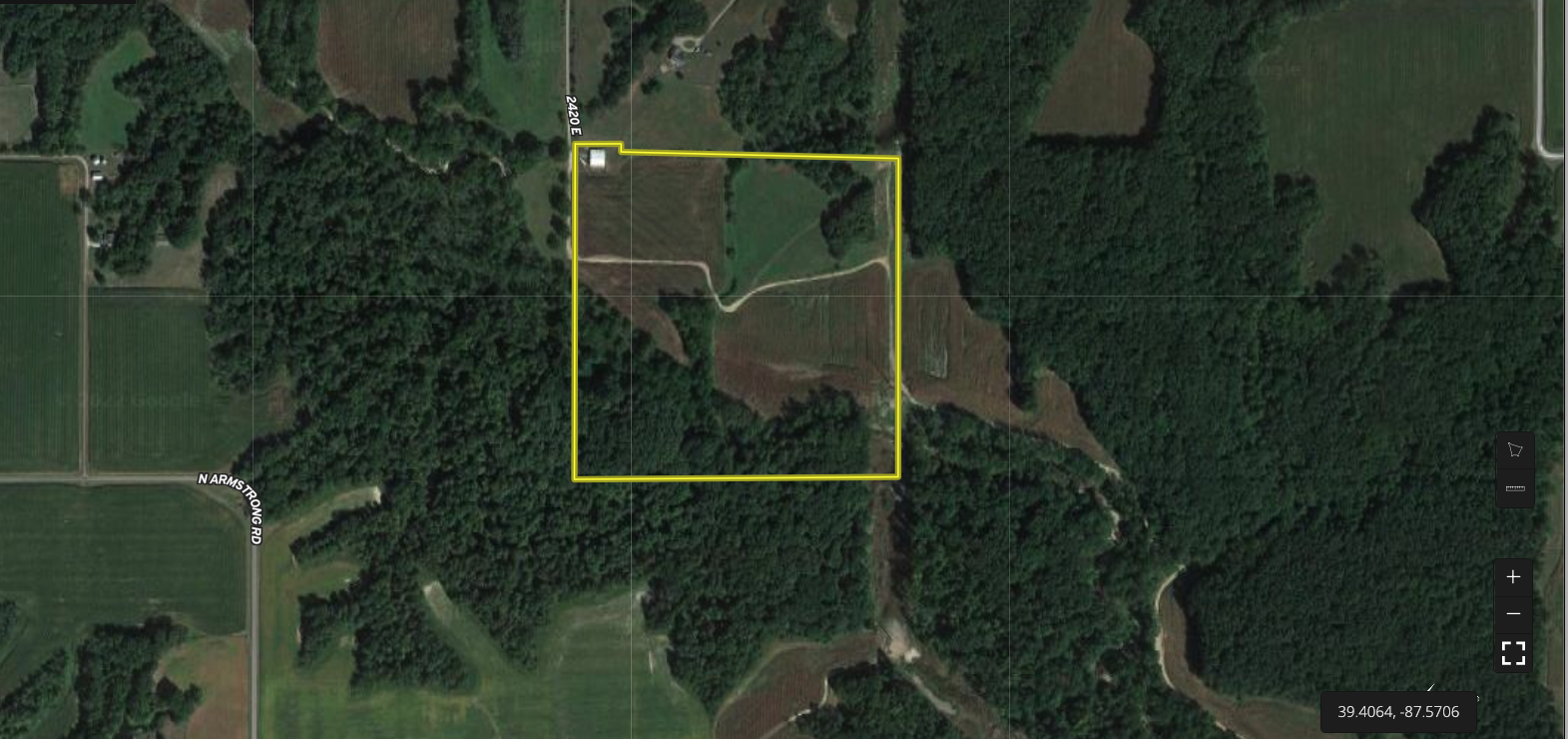 This tract sits at the end of 2420E, which leads to the barn in the northwest corner. The barn is used to store hay, a tractor, and other equipment. Power has been run to the barn, and there's a shallow hand-dug well on the property. The property is a good balance of timber, row crop fields, and hay/grass fields. A couple of small wooded draws on the north end are surrounded by crop or hay fields. The grass hay fields can easily be converted to additional tillable or food plots. There are several large white oaks and other hardwoods in these two locations. The south end of the property has some very thick creek bottoms with younger walnuts along Crooked Creek. There are two big ridge tops on the south side of the creek with a lot of big open mature timber. There is no shortage of deer sign, with several really nice old rubs and trails paralleling the ridge. This area also provides excellent roosting for the turkeys. If you are looking for a property to build on and hunt right out your back door, this is definitely one you will need to check out. You are conveniently located about 15 minutes from Marshall and Terre Haute. Call Listing Land Specialist Adam Crumrin today at 217-276-2334 for your private viewing of this dream property.