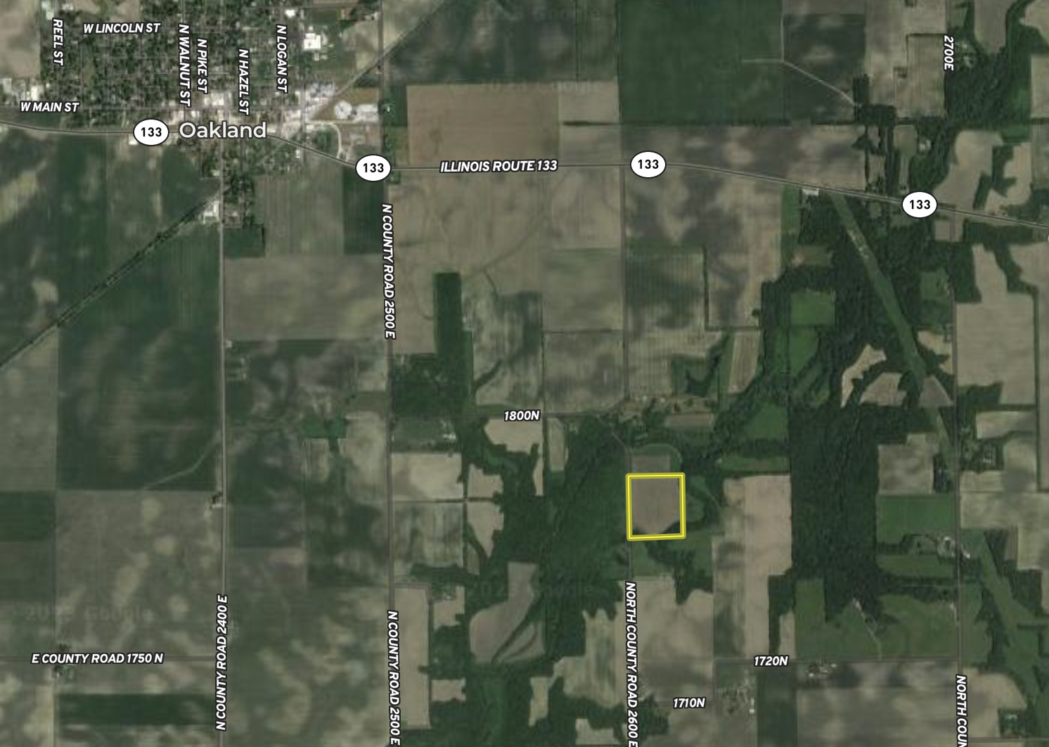 The mostly tillable tract is located east of Oakland and south of IL-133. The property is just east of North County Rd 2600 East. It is approximately 17 acres that are tillable, and the remaining 2 acres are in woods. The average PI is 124, most of the soil being Ross Silt Loam and Lawson Silt Loam.