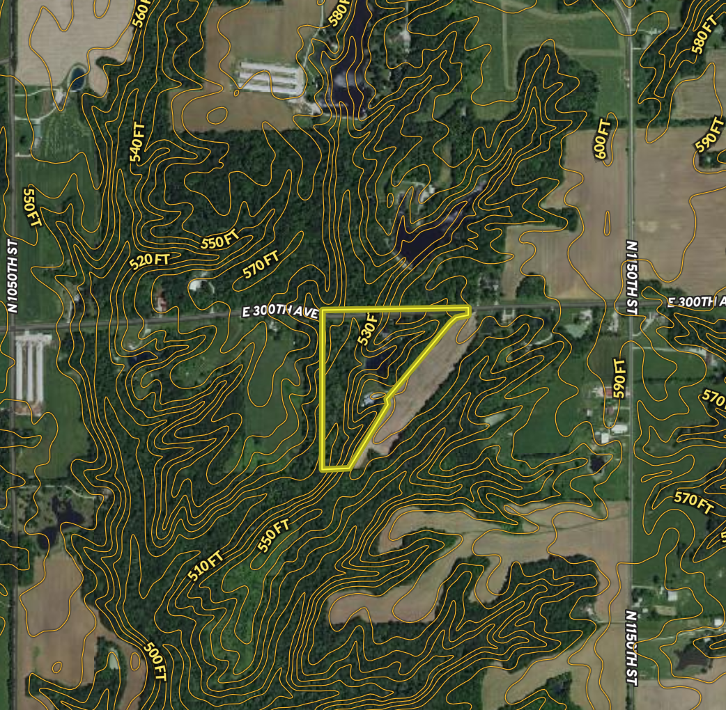 This amazing property is located west of Flat Rock and south of Robinson, just off East 300th Ave. There are two different entrances to the property. The first is an asphalt drive that leads to the house and detached garage. The second entrance is a rock lane that parallels a crop field and leads back to the barn and shop area. The house was built in 1986 but has been recently updated. There are approximately 2,000 square feet upstairs and an additional 2,000 square feet in the finished basement. The main level offers a large kitchen with granite countertops, custom cabinets, and an island. The spacious living room has a wood-burning fireplace and custom Amish bookshelves. Four bedrooms and two full bathrooms are also housed on the main level. An additional room is a home office with high-speed internet, a desk, and shelves. As you go downstairs, you will notice the large, open family room and game room with a pool table and ping pong. There are a few additional rooms in the basement, including a large laundry room and storage area. New carpet, hardwood flooring, and all-new LED lighting have been installed throughout the house. All the house's thermostats and shop areas are Wi-Fi enabled and accessible from a cell phone. The house is hooked to city water and has two additional outdoor hydrants connected to a well for watering plants. The owner has also installed a new water softener and reverse Osmosis water treatment to the kitchen faucet and refrigerator. All doors in all three buildings are protected by a Samsung security system that can be accessed through your phone. There are also Arlo security cameras integrated with the Samsung system. Off the back of the house, you will find a spacious deck and a breathtaking pond view. The pond averages 9' and 20' deep and is stocked with Blue Gill, Bass, Black Crappie, Grass Carp, and Channel Cat. An air compressor also aerates the pond with two distribution to provide a healthy environment for the fish. The detached garage next to the house is 40'x25' and has two overhead doors. It has a 100 amp electrical service, propane furnace, and electric air conditioning unit. There is a concrete floor with floor drains to take care of melting snow in the winter and to keep the water out of the building. The garage is wired for satellite TV, WIFI, and landlines. It also has cold and hot water for cleaning up after those projects. Above the garage, you will find additional storage and attic space accessed with a drop-down ladder. The barn and shop area is 48'x80' and was built in 2014. The shop portion of the barn is 48'x30' and offers almost everything you can ask for. It has a 200 amp service, concrete floor with drains, LED lighting, security camera and video, and an 11' door with an opener. The shop area can be heated with a propane heater or has an additional wood furnace in the barn that vents to the shop. The barn portion is 48'x50' and offers several heavy-duty shelves, a piped air system with hose reels, and an 11' overhead door and opener. This portion also has access to additional storage over the shop area. The majority of the property is made up of rolling hardwoods and creek bottoms. A few maintained trails will navigate around the property and lead to multiple deer stands. The owner has installed several small bridges to help access and cross small ditches and creeks. These trails and bridges also aid in getting deer out of the woods with minimal effort. This is truly an unbelievable property in so many ways and offers so much it isn't easy to cover everything. If you have dreamed about getting out in the country and enjoying the sunset over a pond or just watching deer and turkeys walk through your yard, this is the property for you. Please call me today for a private viewing of this incredible property.