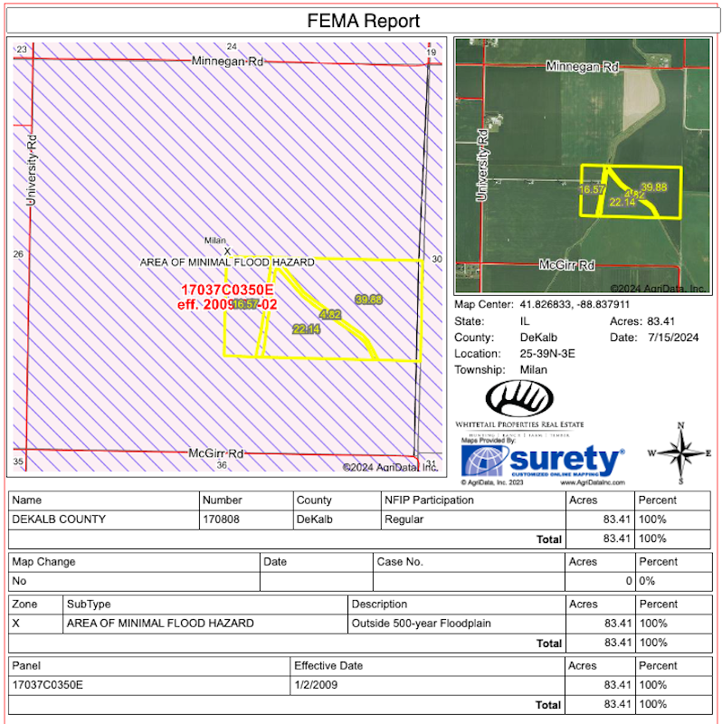 Here’s an excellent opportunity at prime, Class A farmland, including bonus wind lease income in DeKalb County. This highly productive tillable tract is comprised of 81.52+/- acres, located northeast of Shabbona, zoned A1 agricultural. The farm is easily accessible via recorded easement off of McGirr Road. The tillable portion is tile drained and its collective topography is level to slightly rolling. Soils primarily consist of Drummer silty clay and Flanagan silt loam with an average PI of 142.7. Farm tenancy for 2024 is already in place, however remains open for the 2025 crop year. Additional bonus annual income is generated by a wind turbine on its western border which only impacts a half acre of land. With the southern DeKalb region’s expansive growth of renewable energy, this property is perfectly positioned for future land acquisition. Transmission lines already run along the northern border of this tract, with a power substation sitting one mile west of this tract. If you’ve been looking for a Class A tillable tract with multiple income streams, surrounded by current and future wind and solar development, this farm is a must-see!! Contact Land Specialist, Mark Leonard for more information or to schedule a private showing.