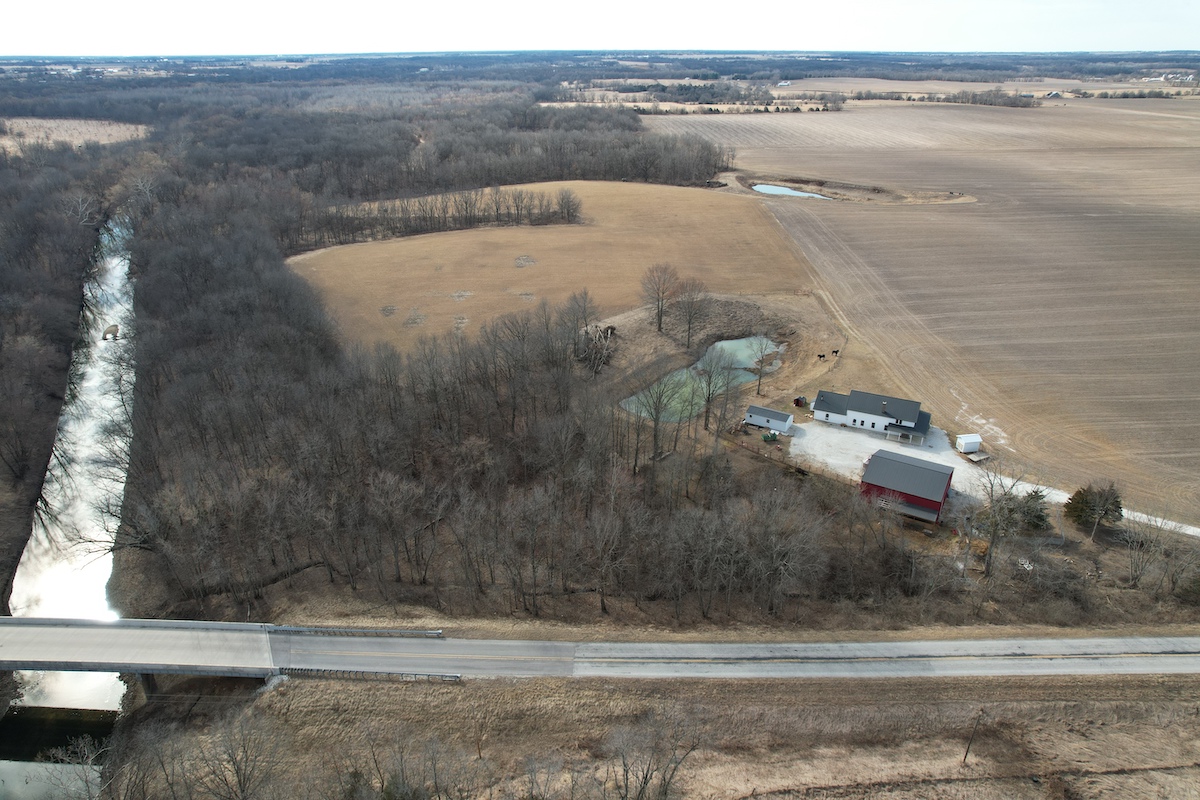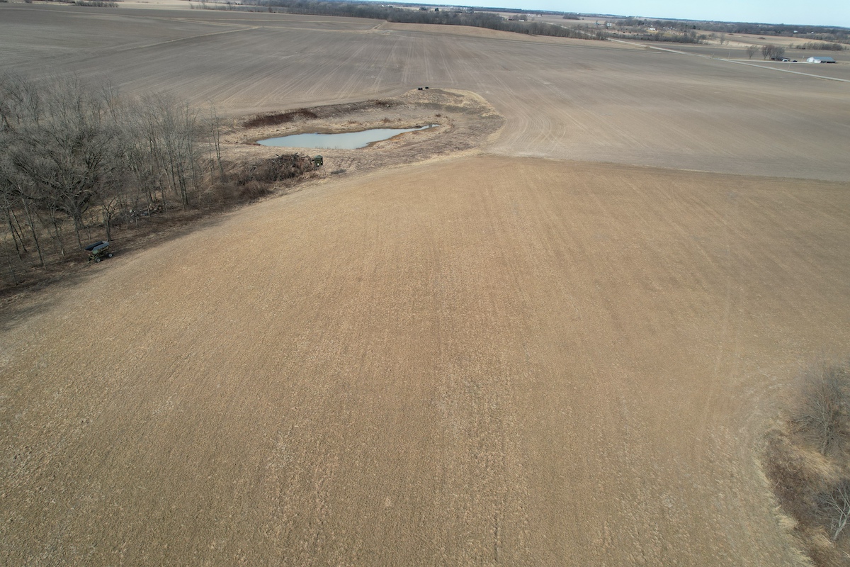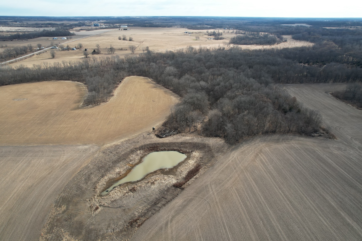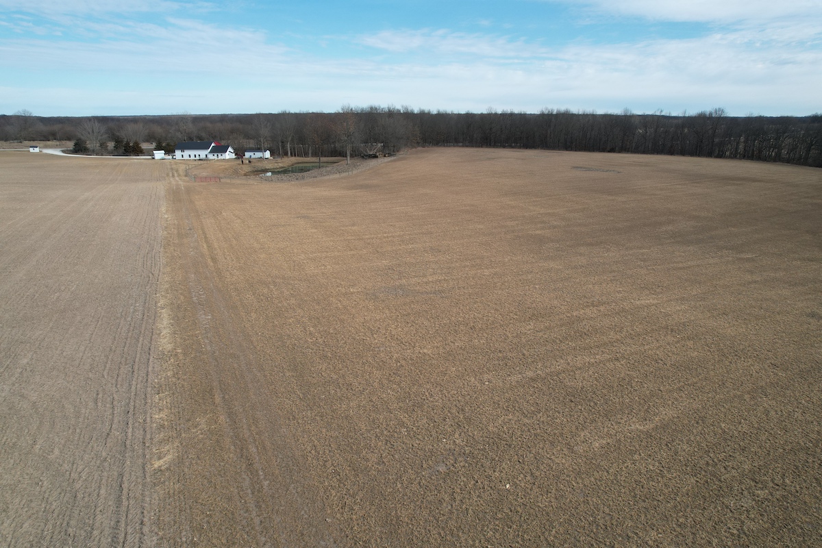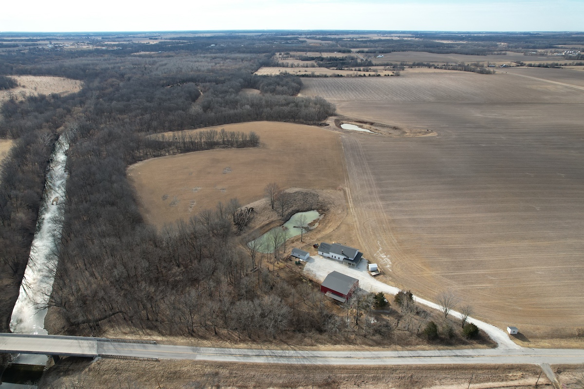 Located in eastern Hancock County, this diverse property offers a blend of residential improvements, productive tillable acreage, timber, and water features. The property includes a 2,112 square foot home built in 2025 on a concrete slab foundation. The layout of the home includes one main-level bedroom, a bathroom with a tub, an open living and kitchen area, a large 768 square foot washroom, and a 576 square foot unfinished loft that could serve as storage or additional sleeping space depending on a buyer’s needs.